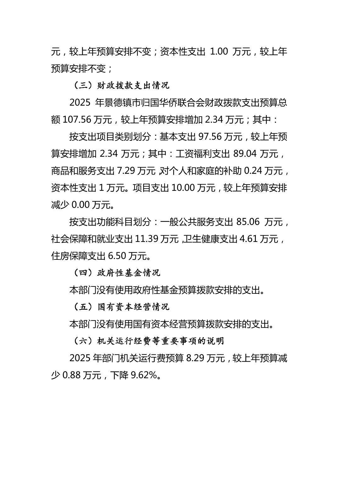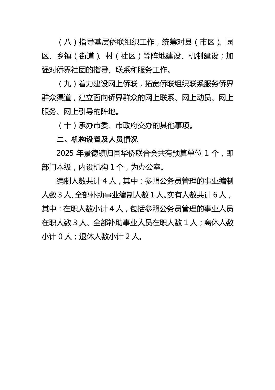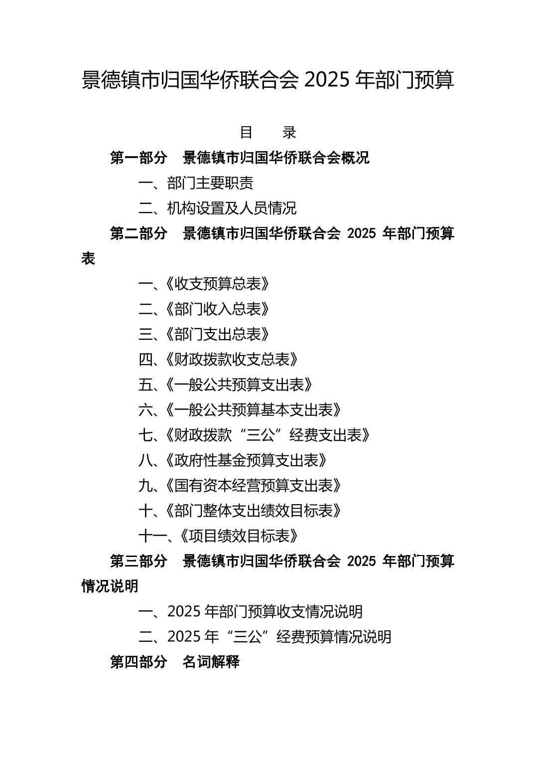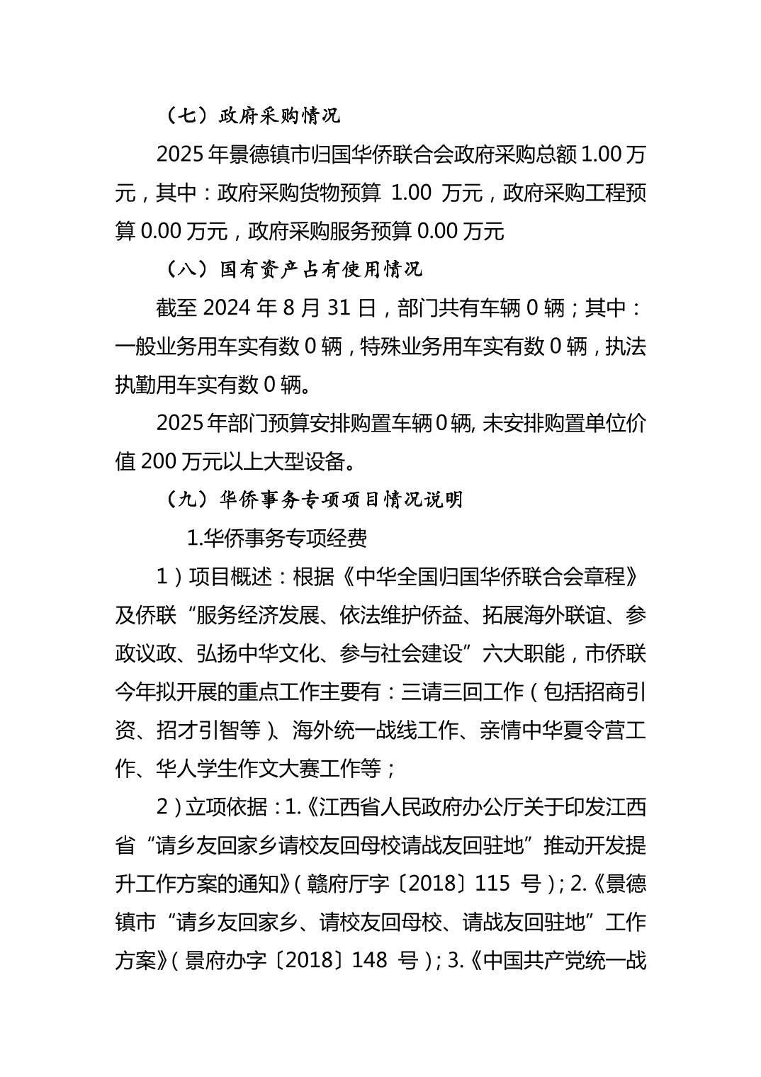 景德镇市归国华侨联合会2025年部门预算