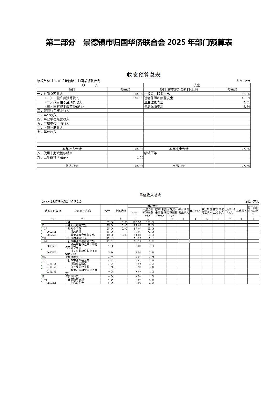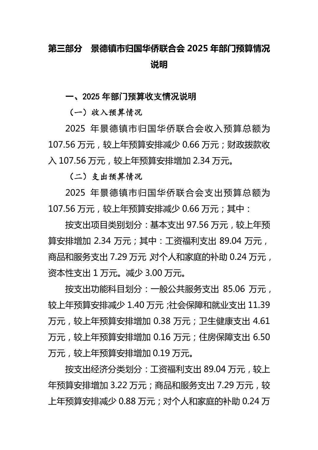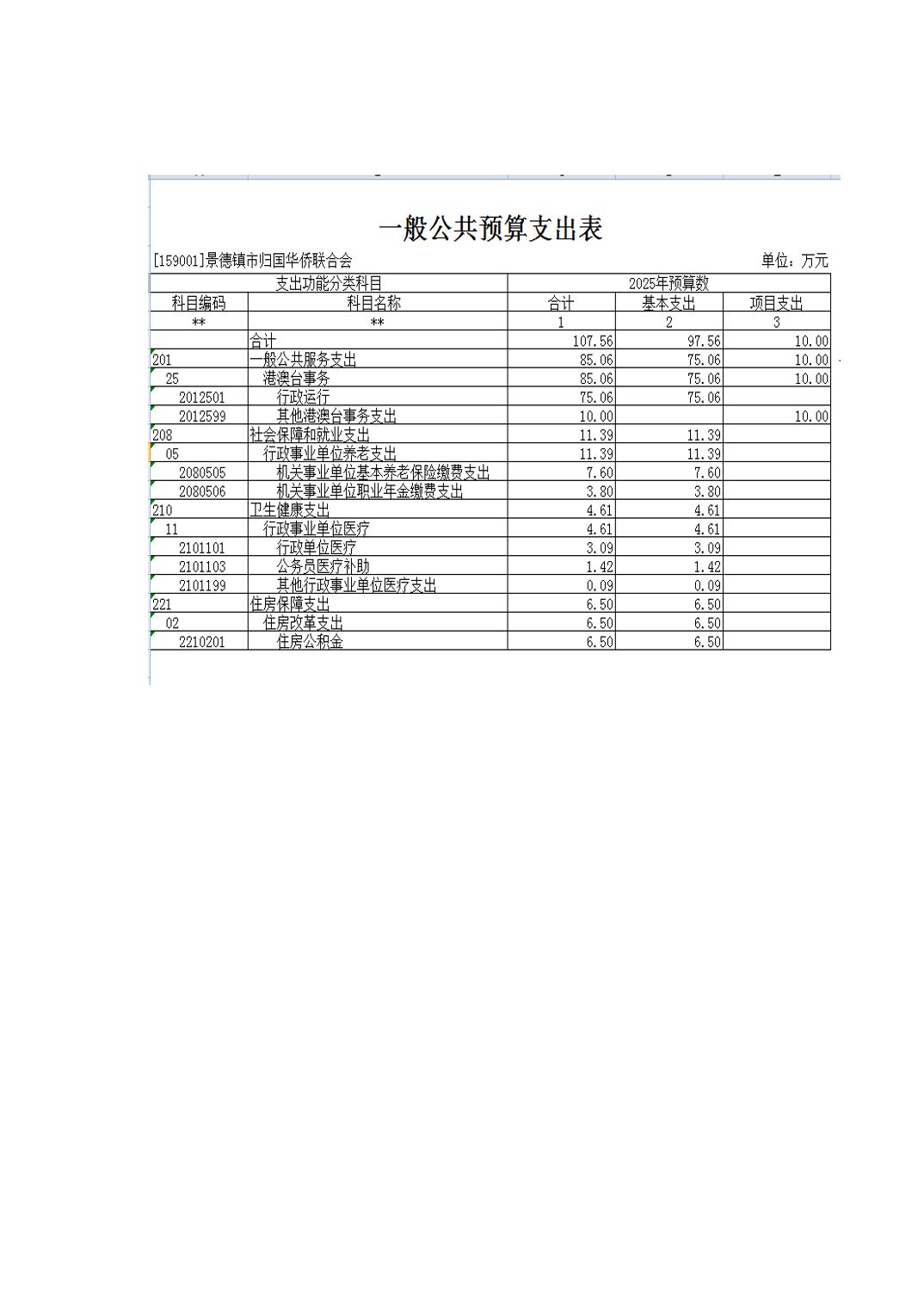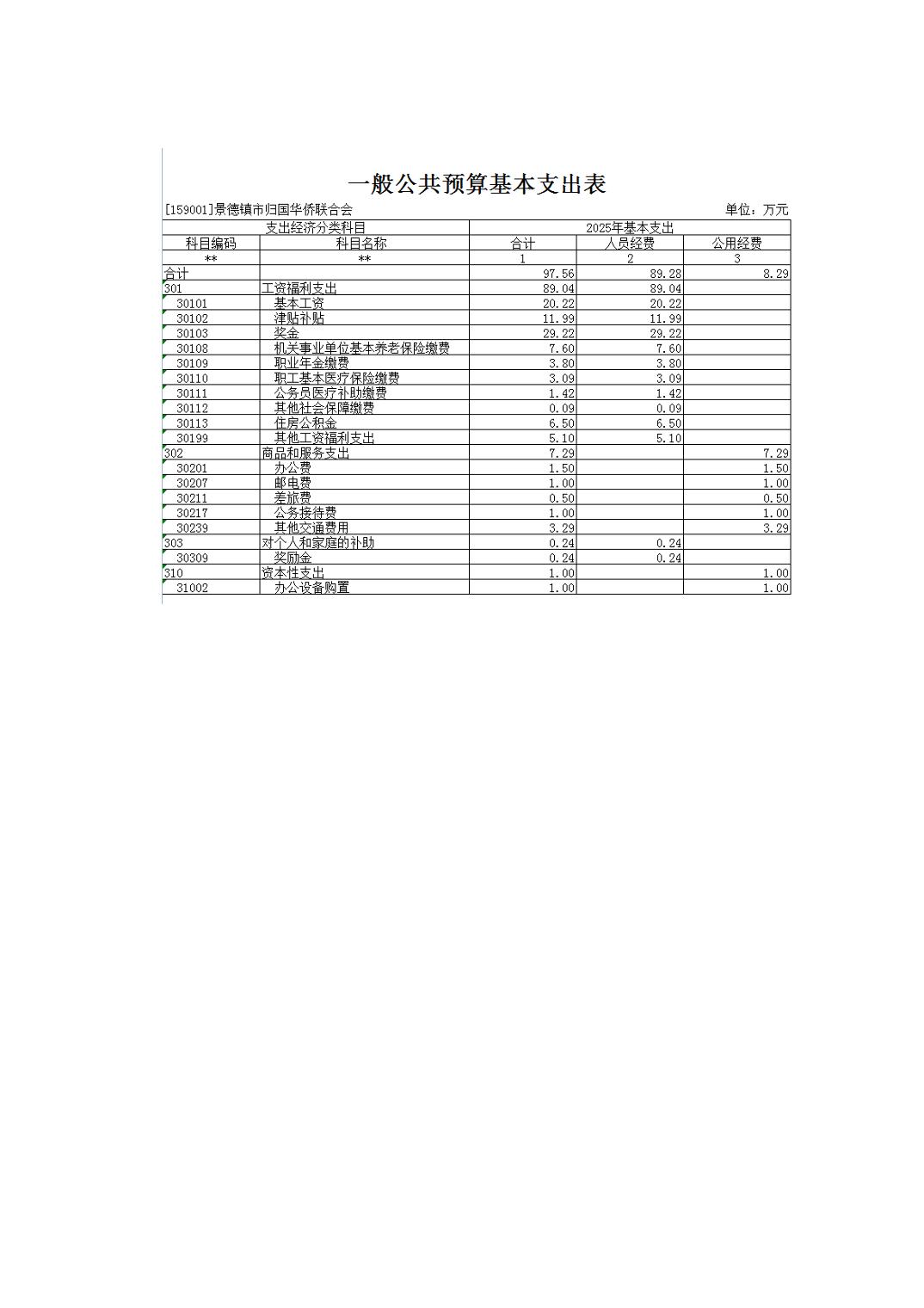景德镇市归国华侨联合会2025年部门预算