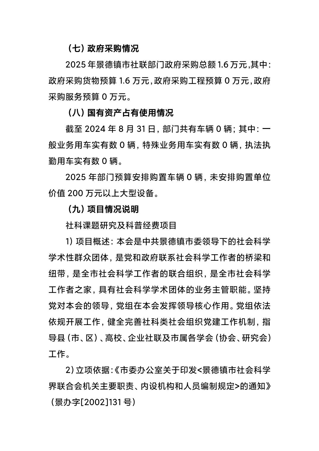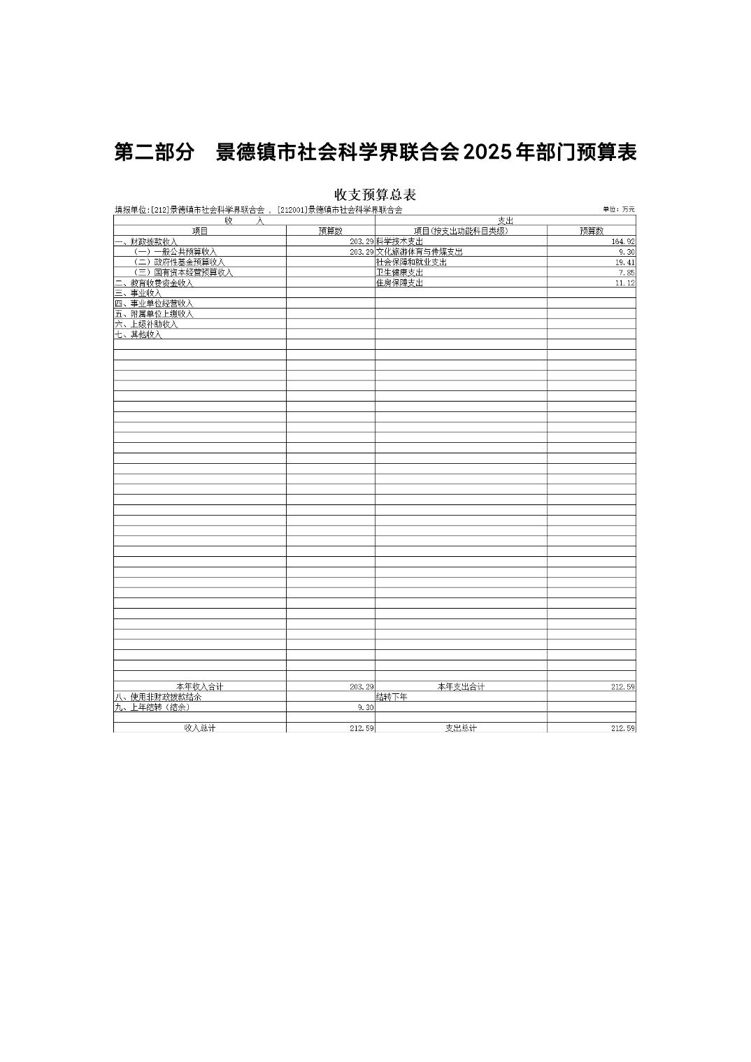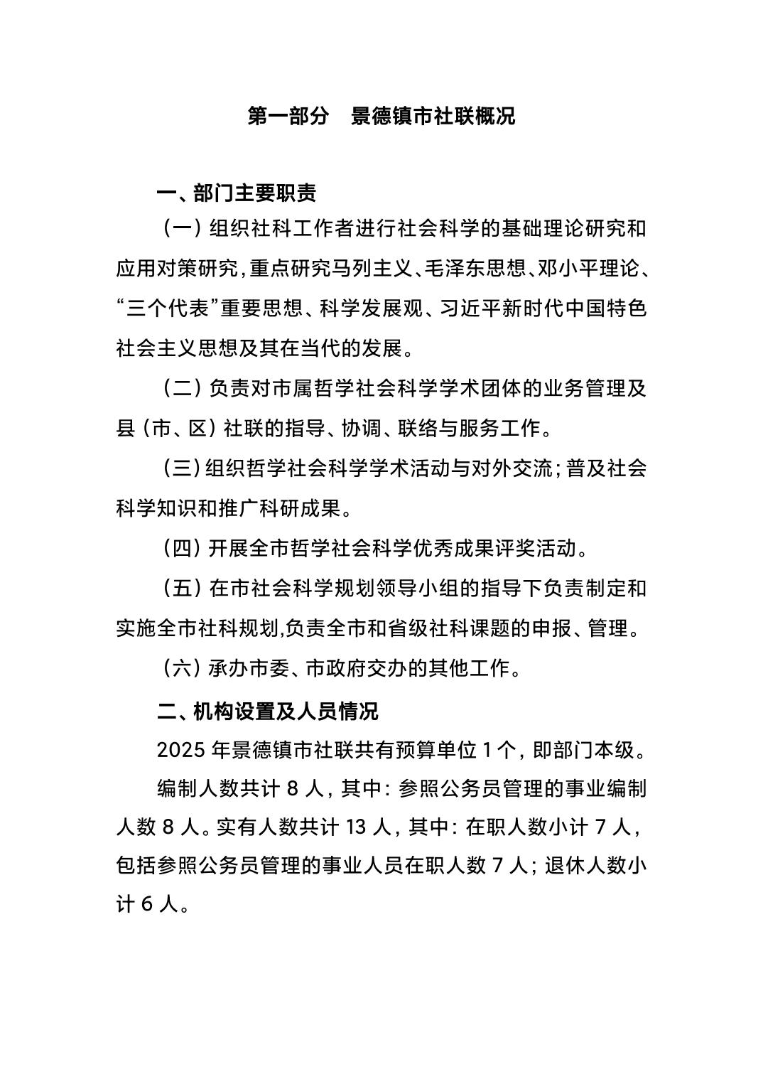 景德镇市社会科学界联合会2025年部门预算