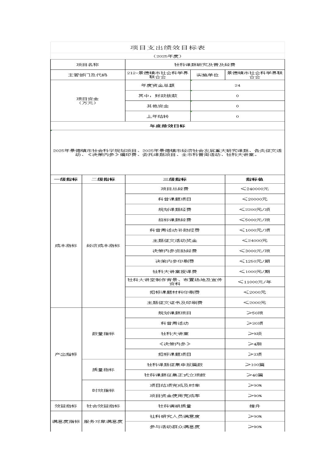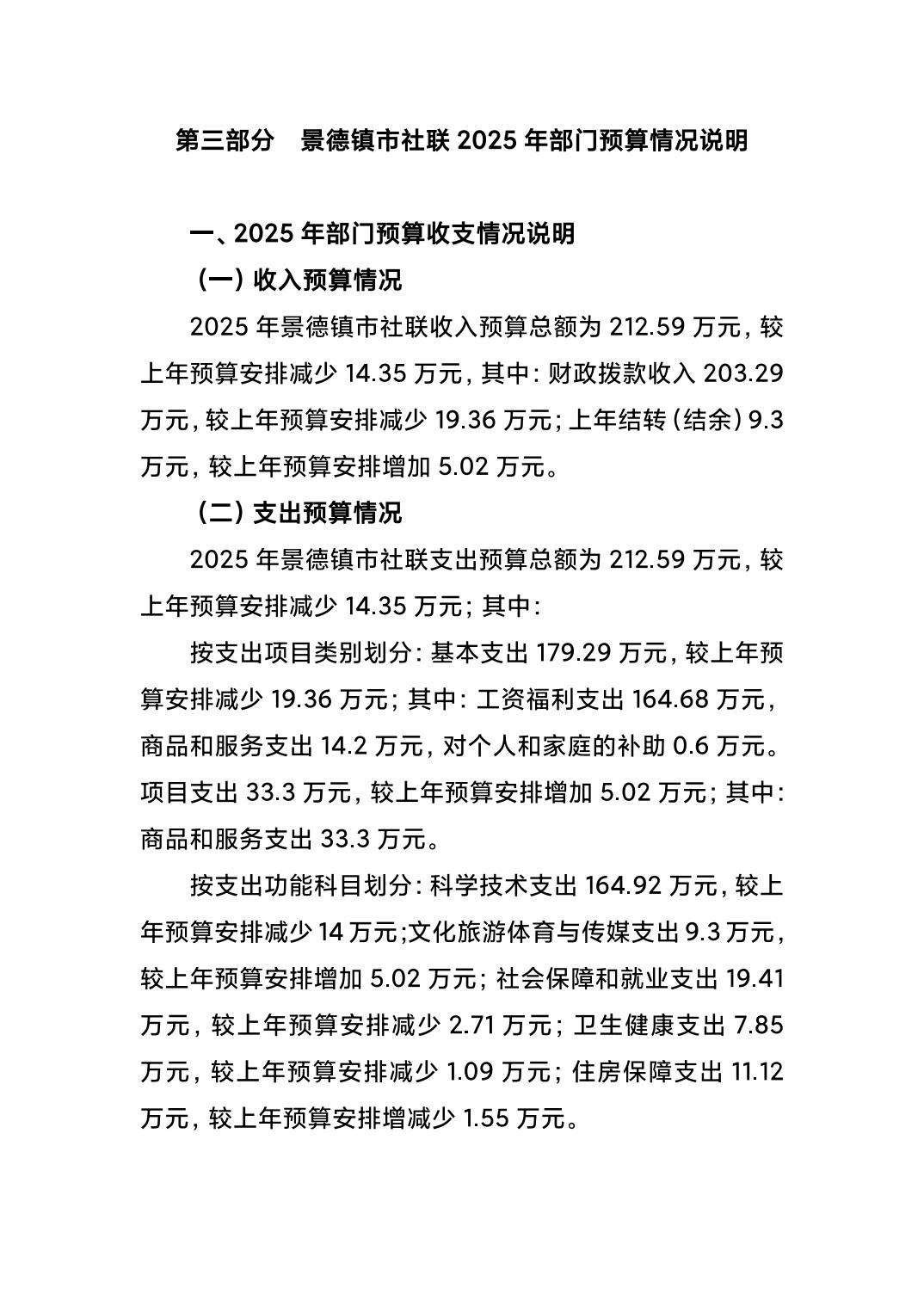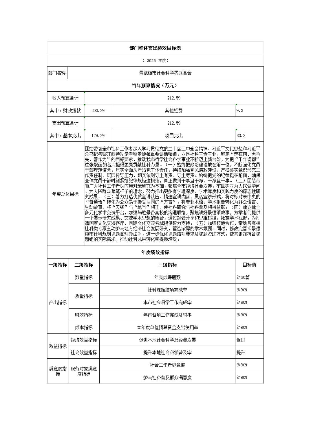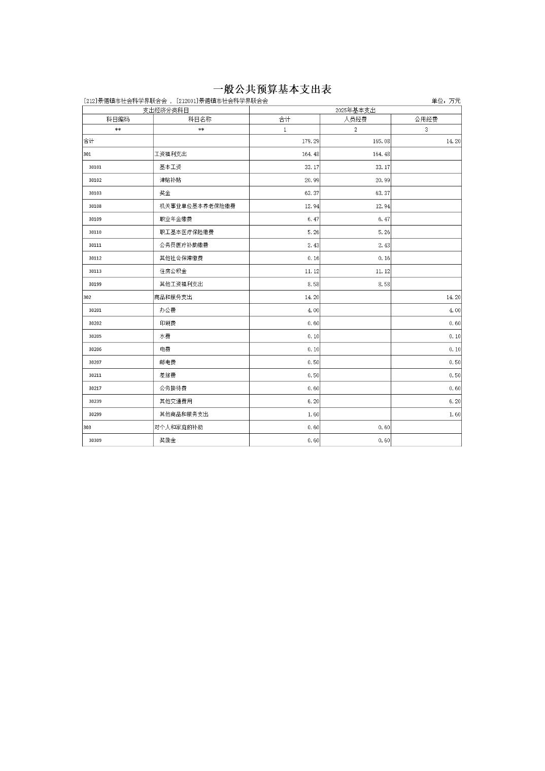 景德镇市社会科学界联合会2025年部门预算