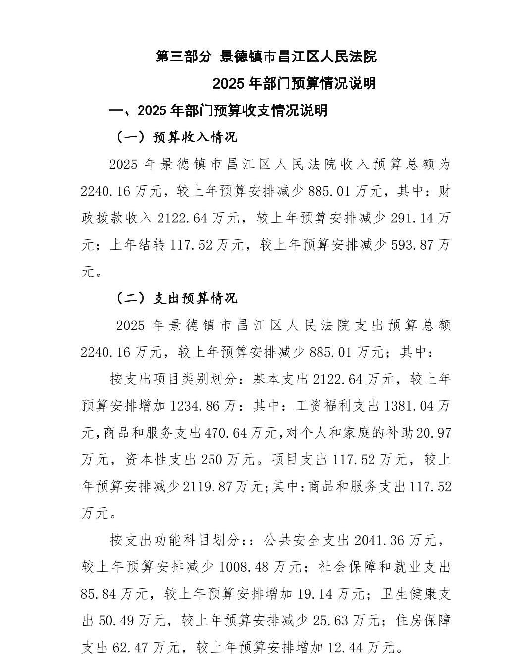 景德镇市昌江区人民法院2025年部门预算