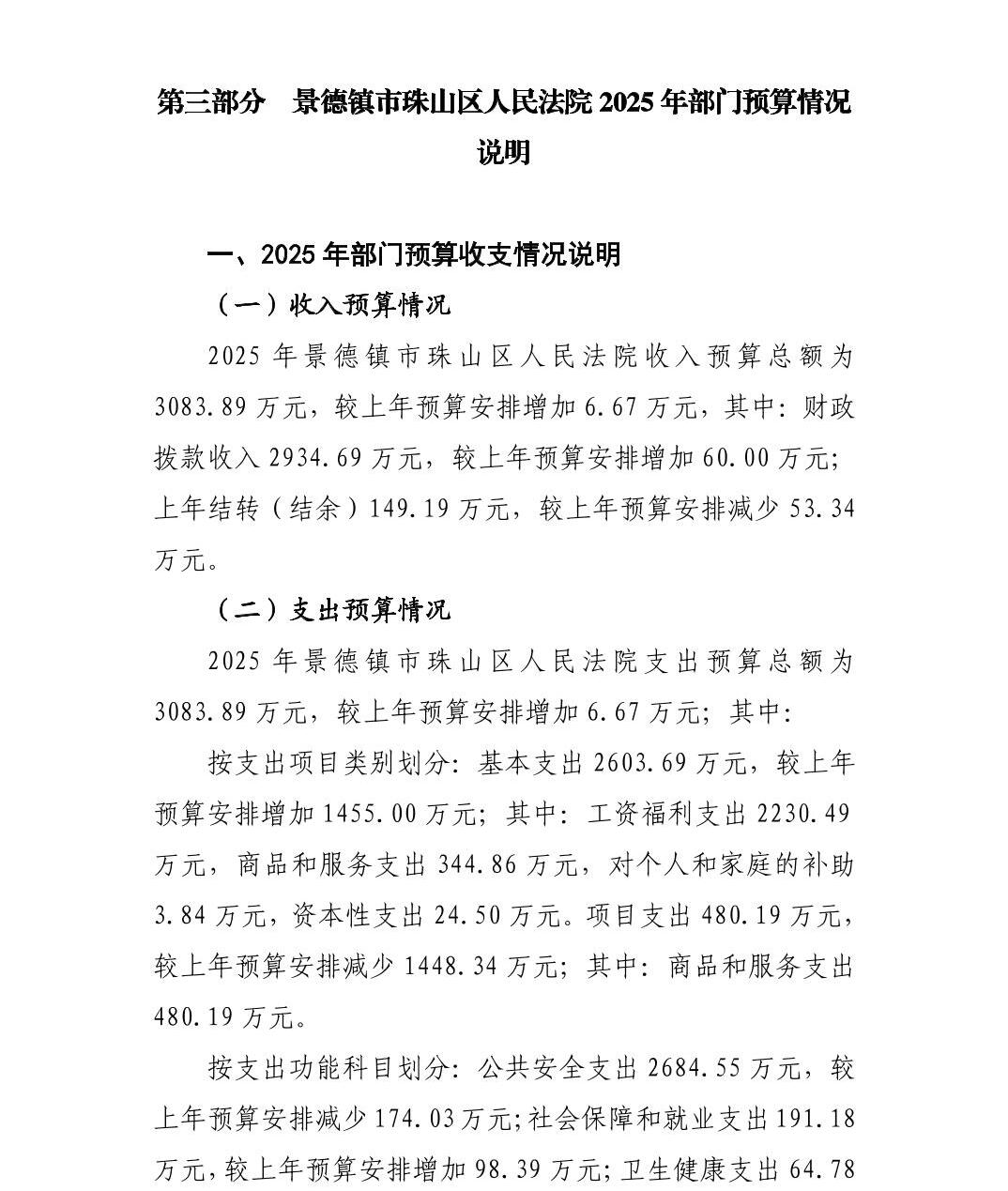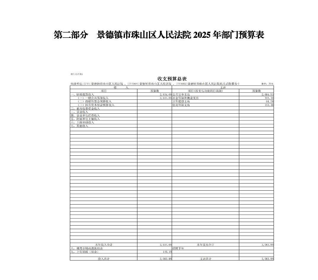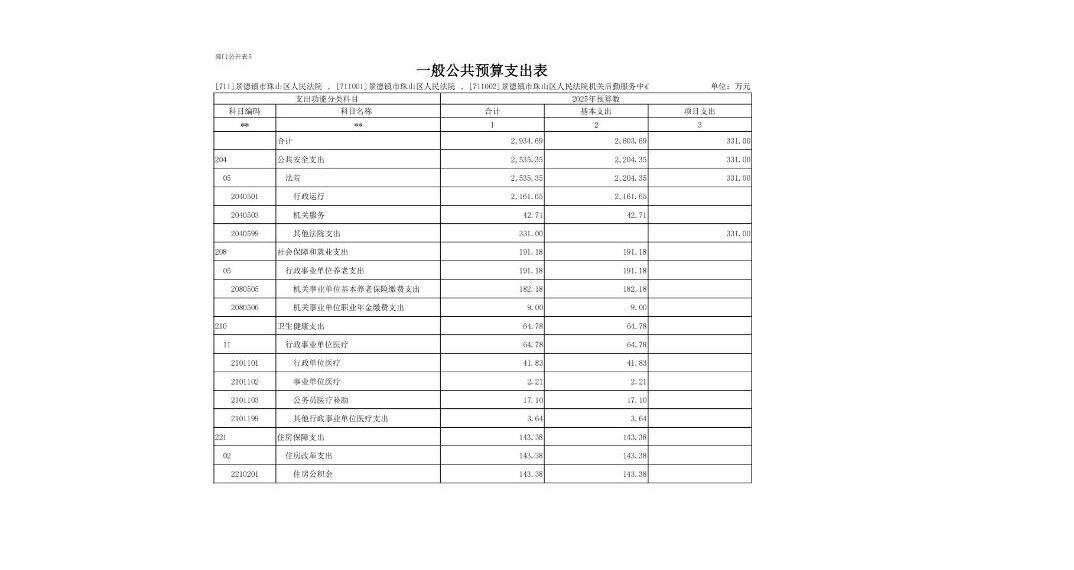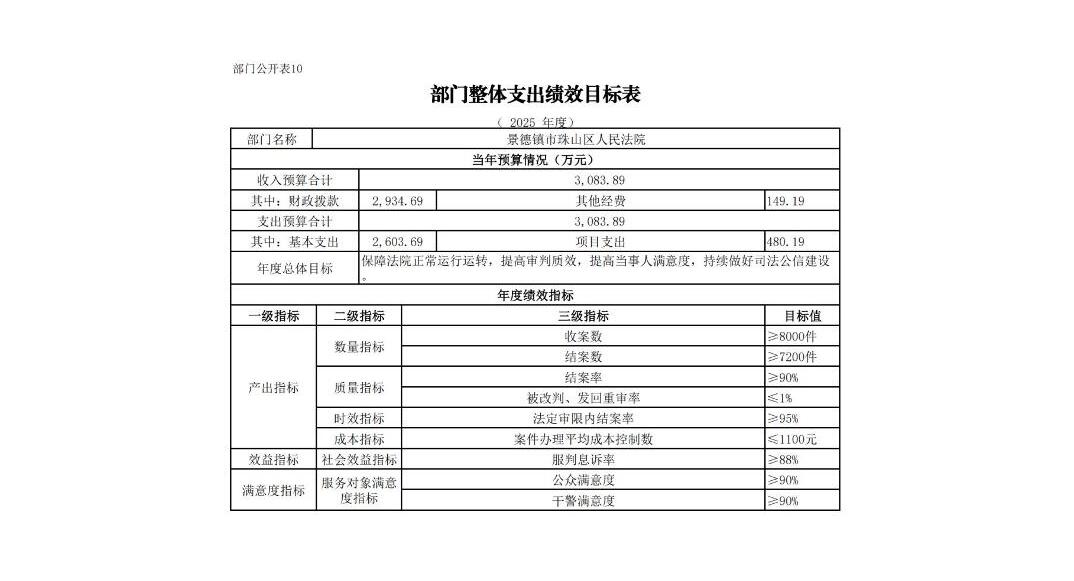 景德镇市珠山区人民法院2025年部门预算
