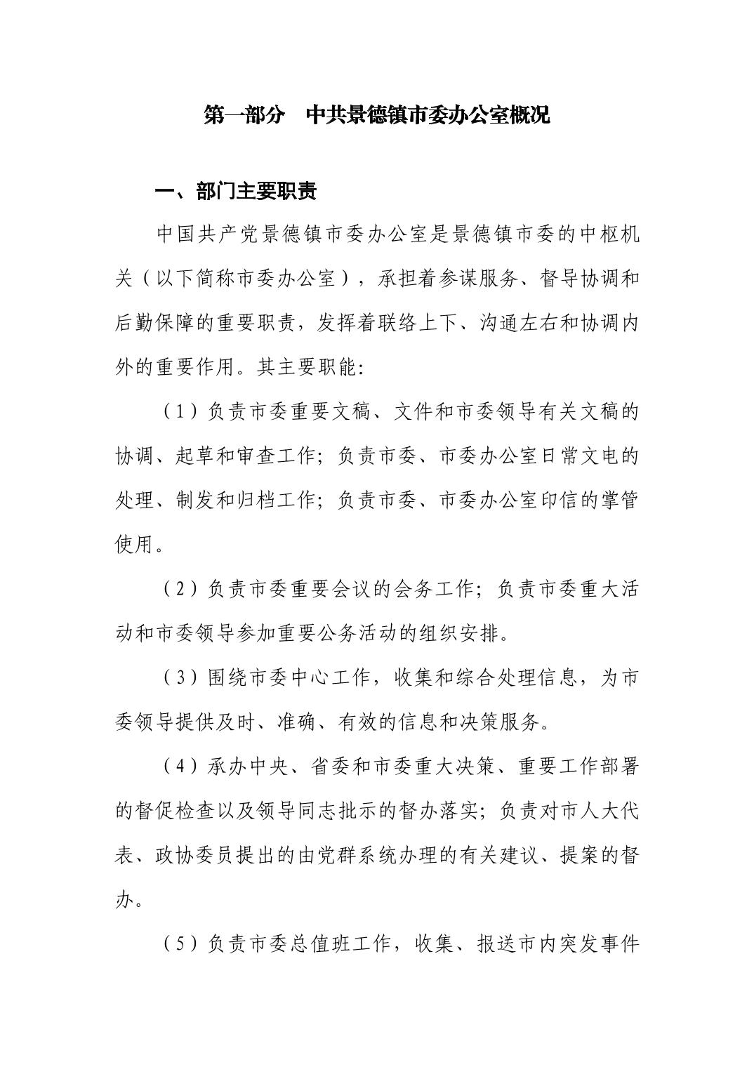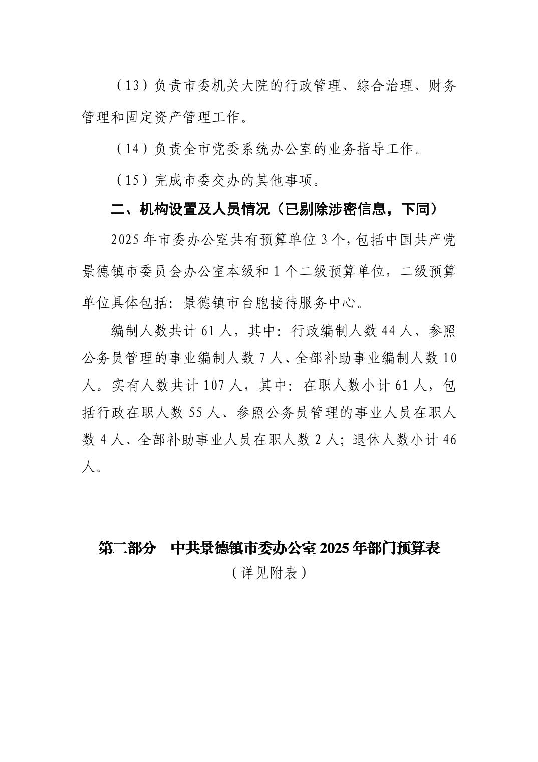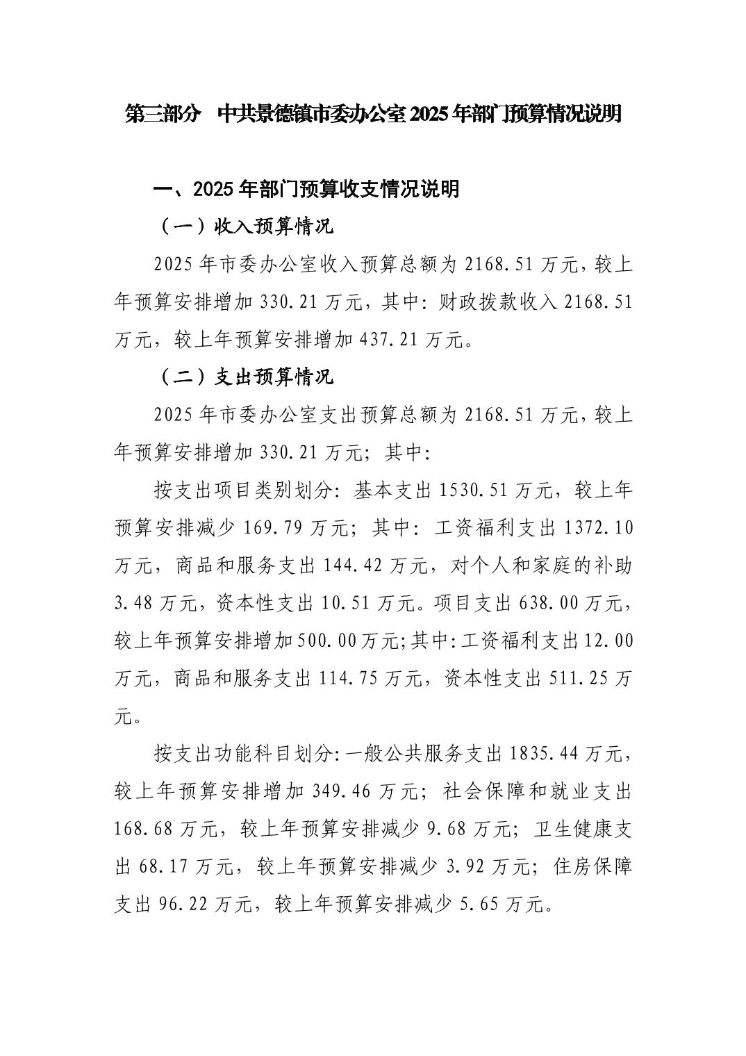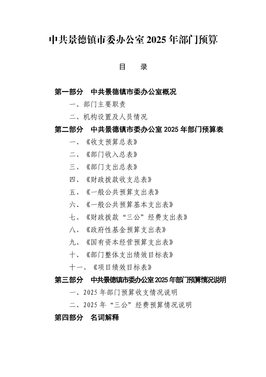 中国共产党景德镇市委员会办公室2025年部门预算