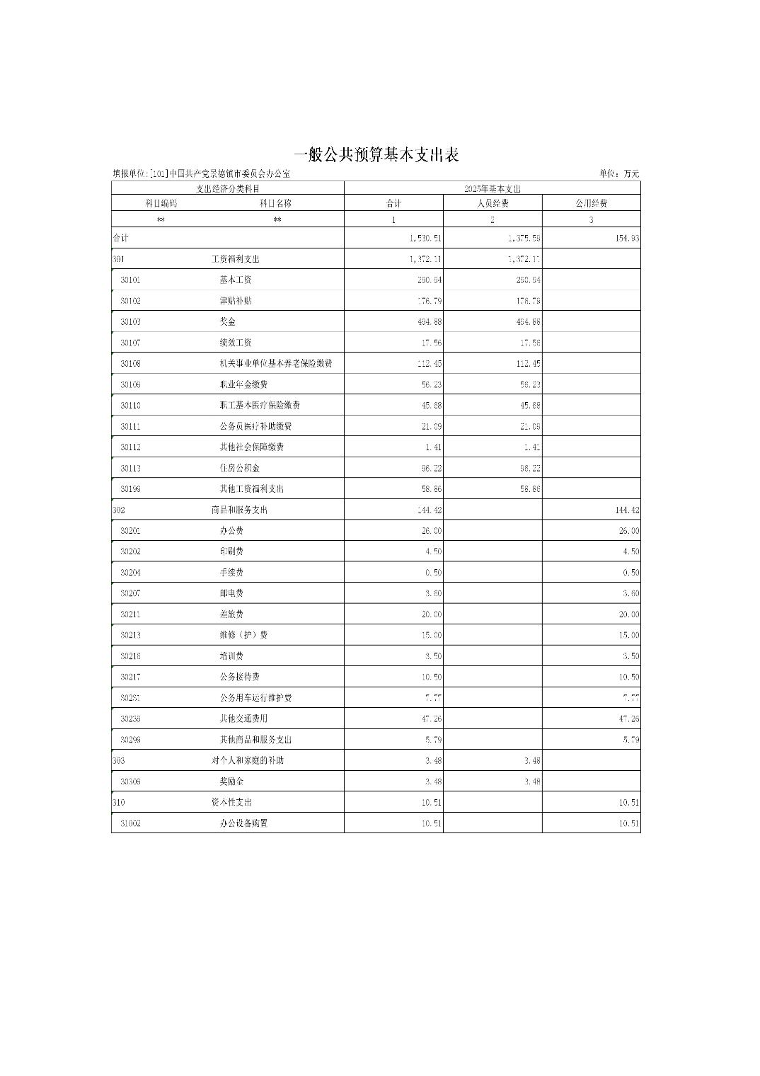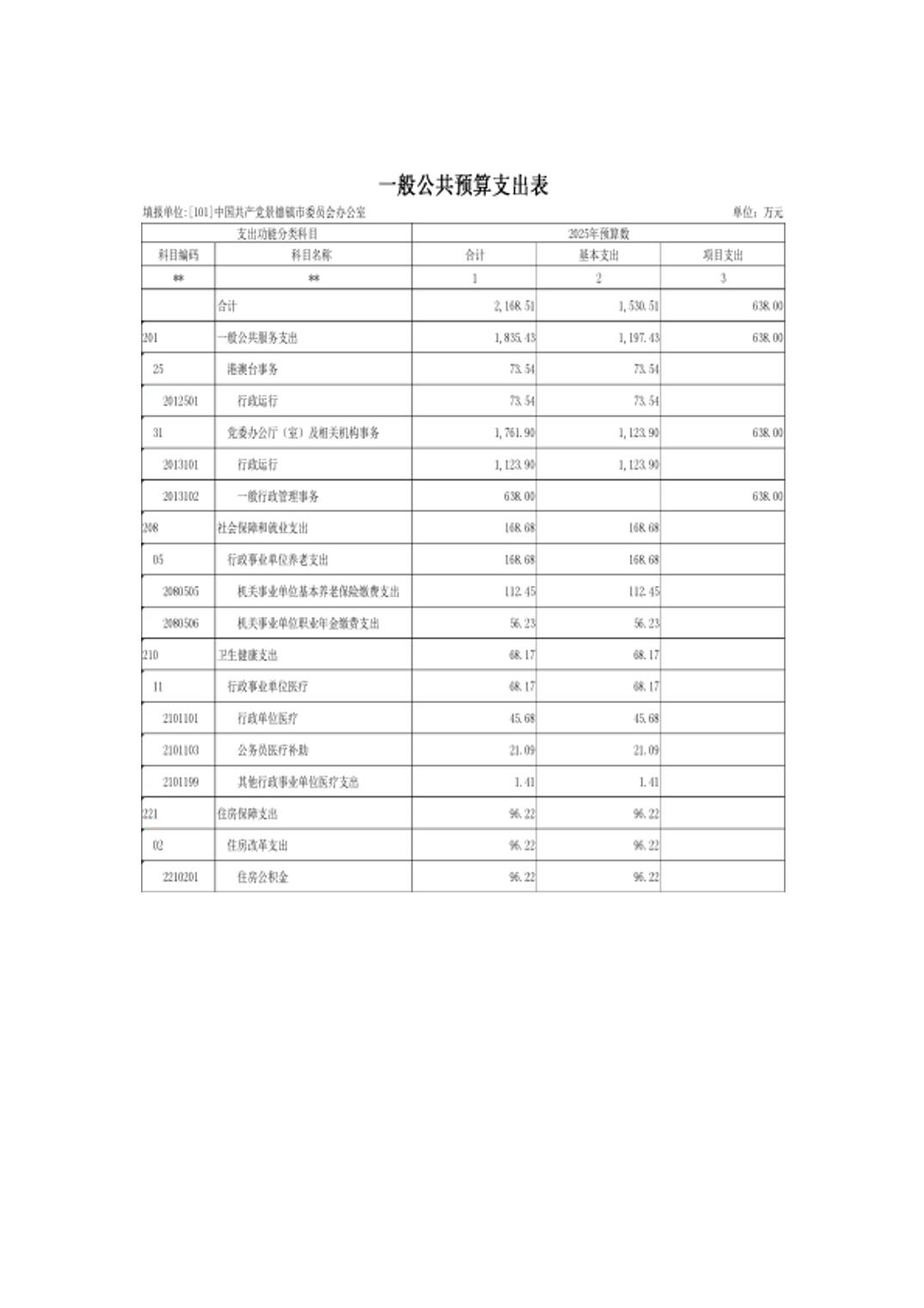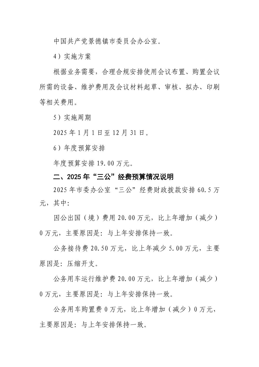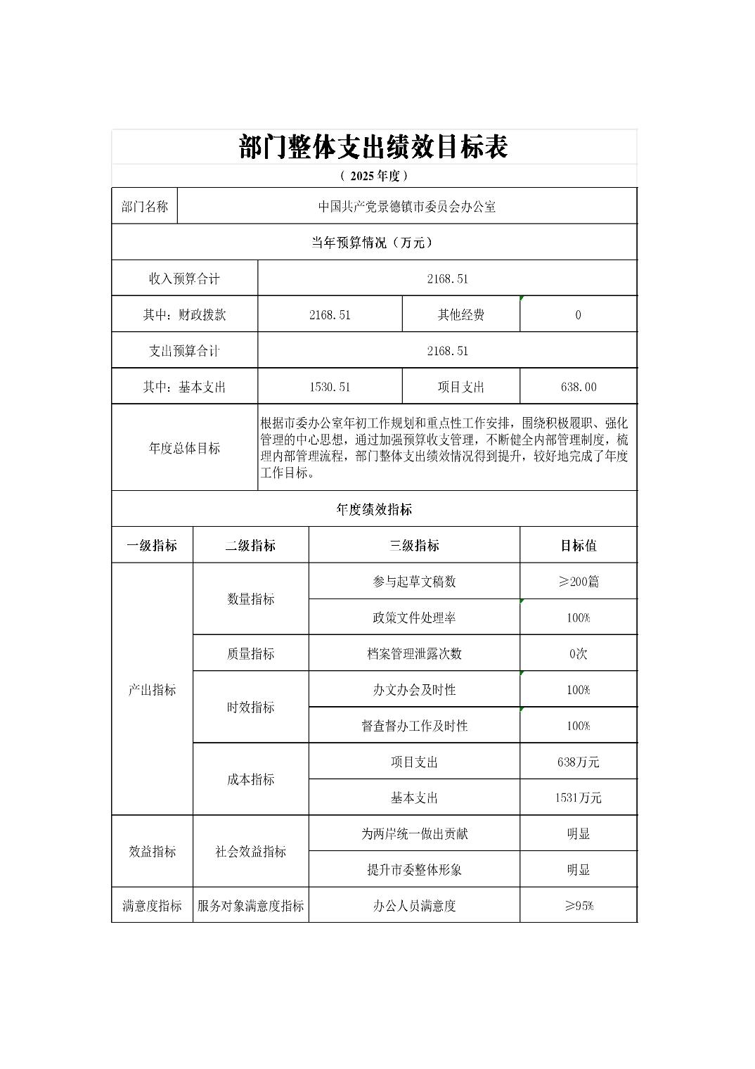 中国共产党景德镇市委员会办公室2025年部门预算