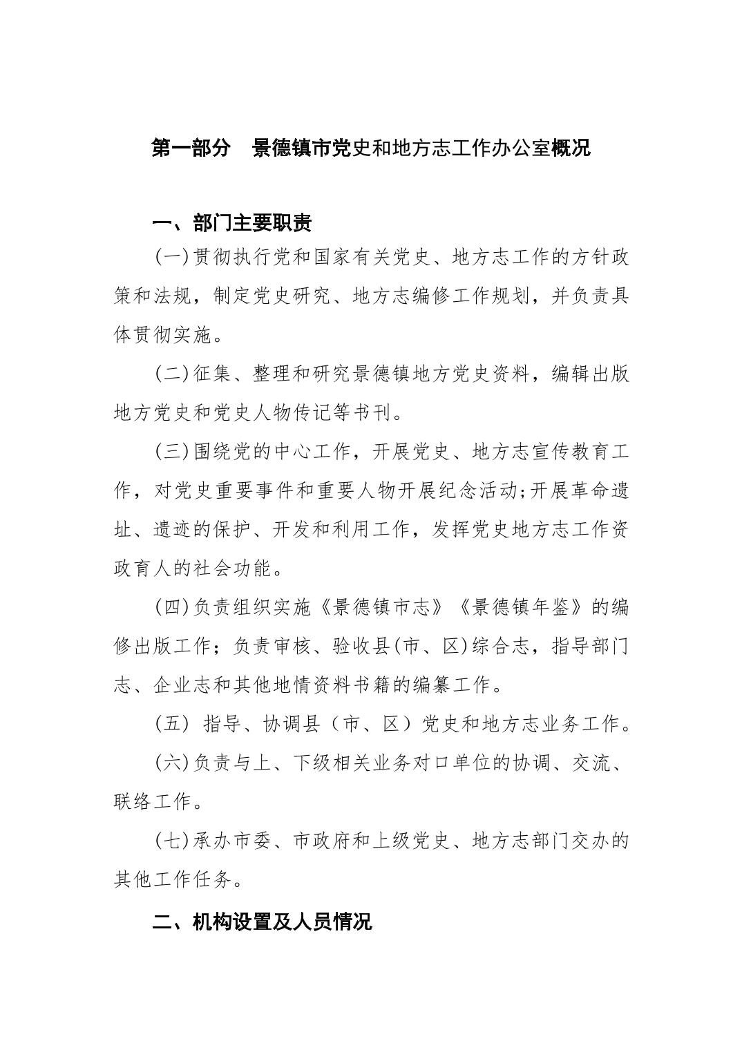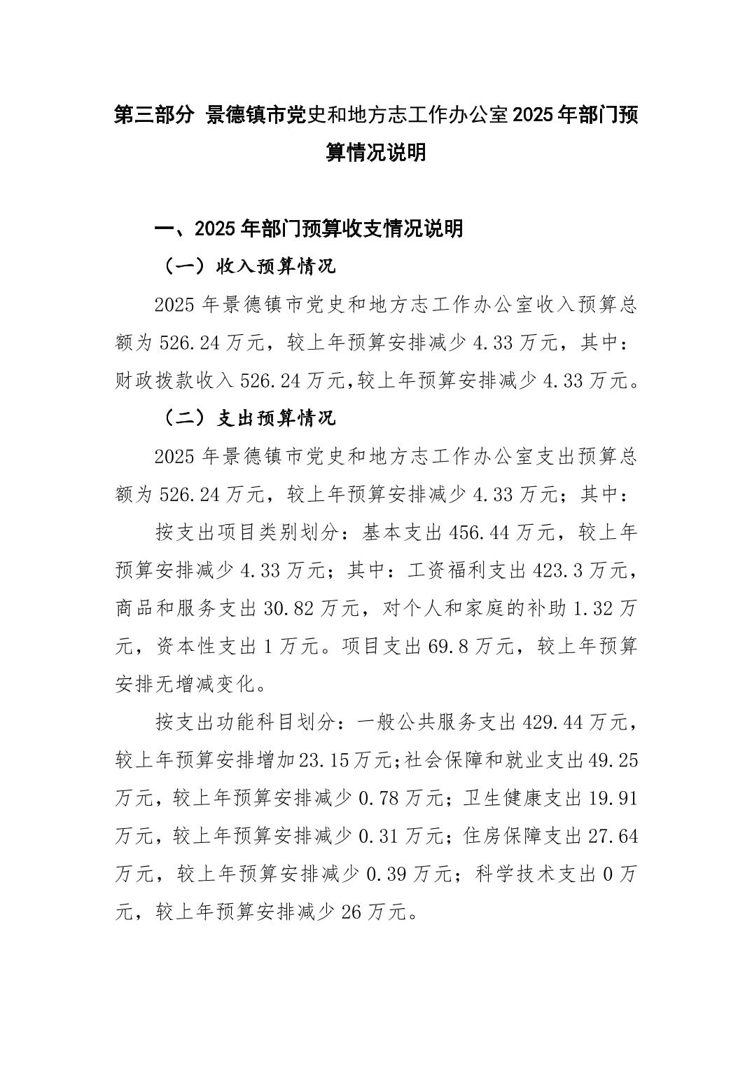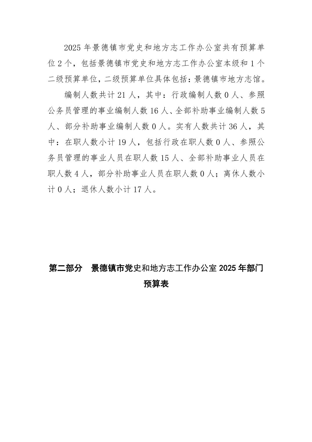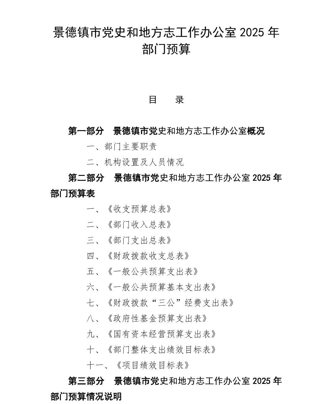 景德镇市党史和地方志工作办公室2025年部门预算