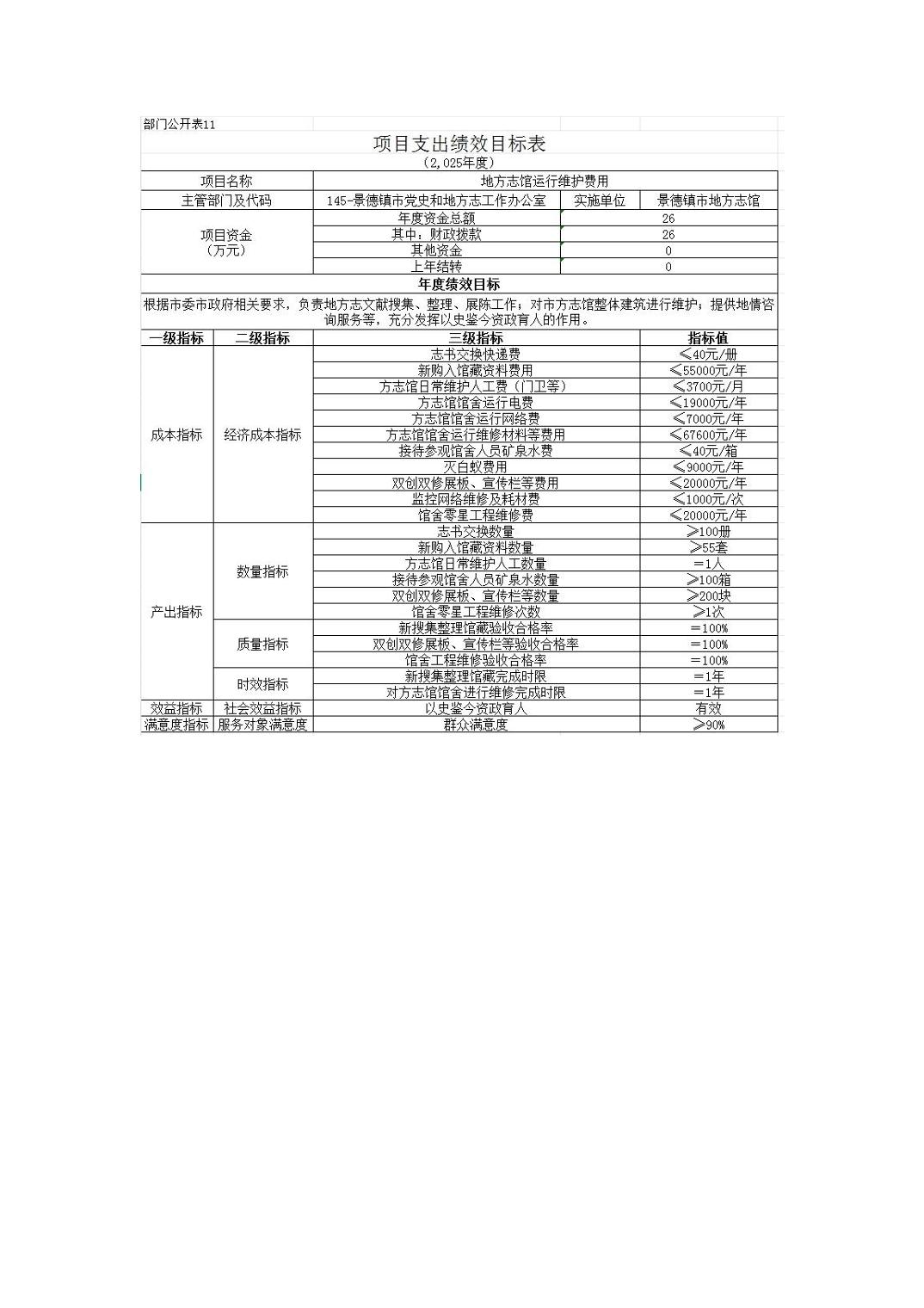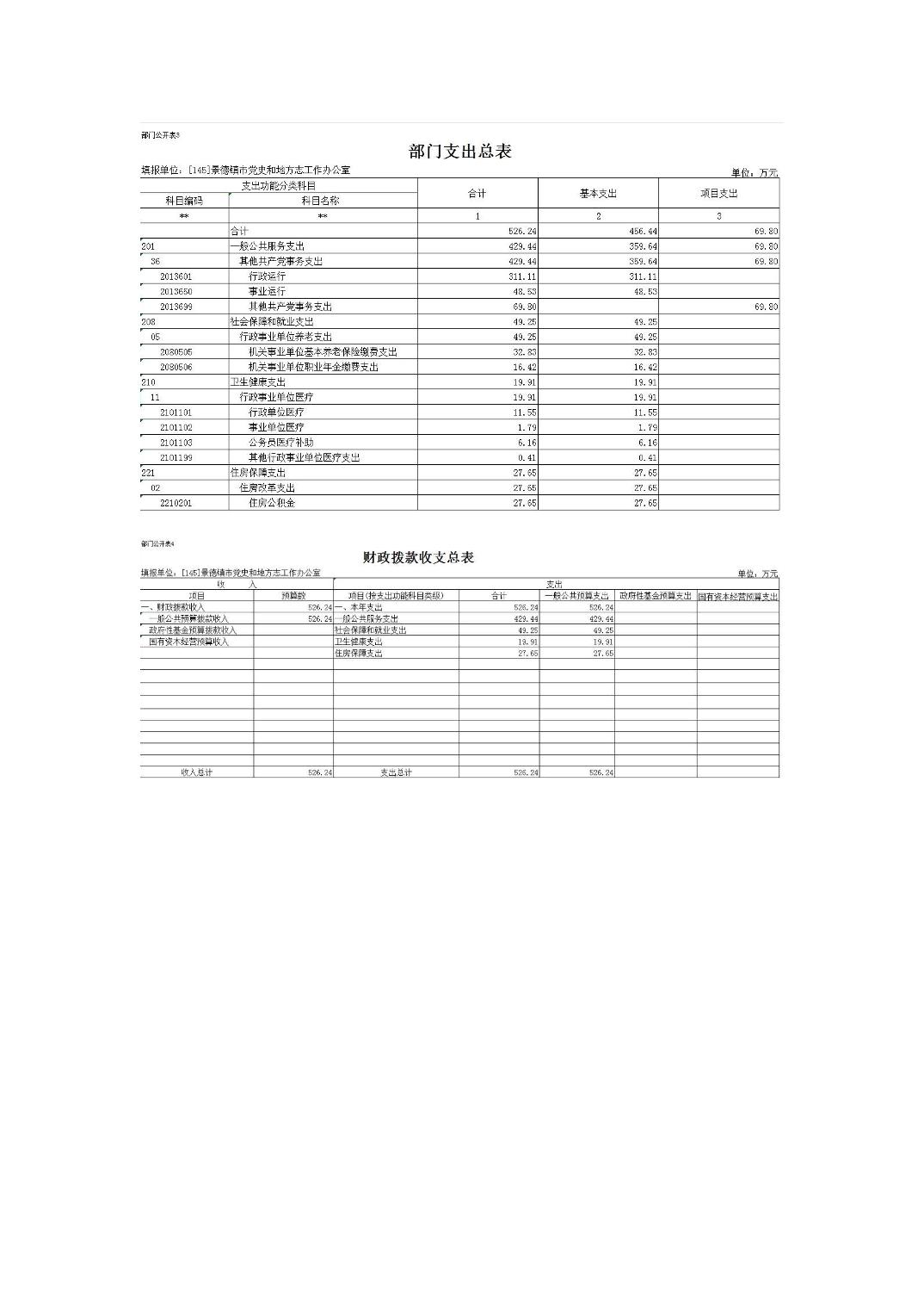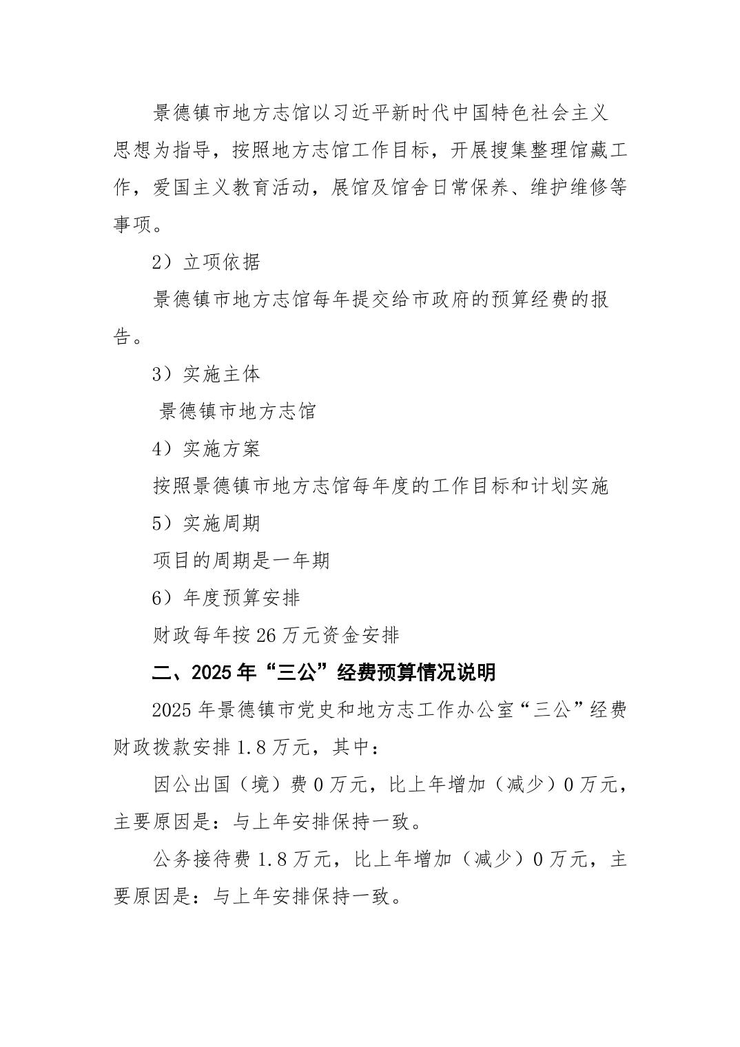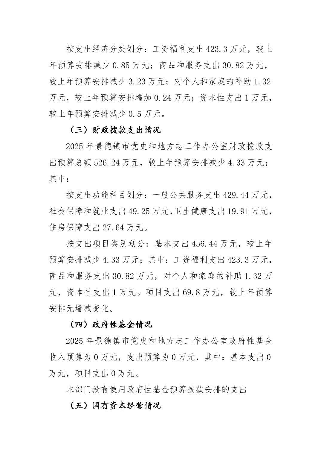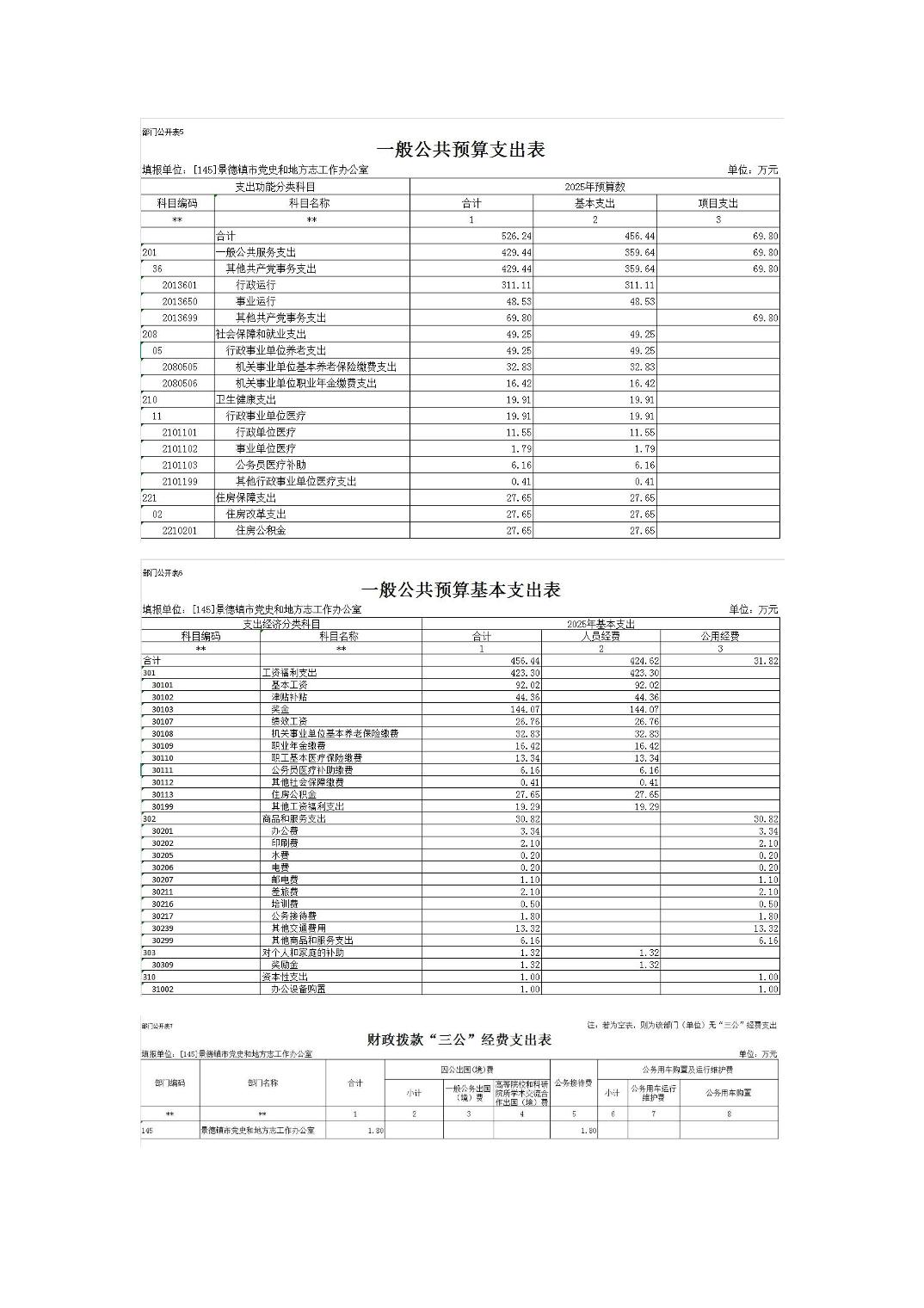 景德镇市党史和地方志工作办公室2025年部门预算