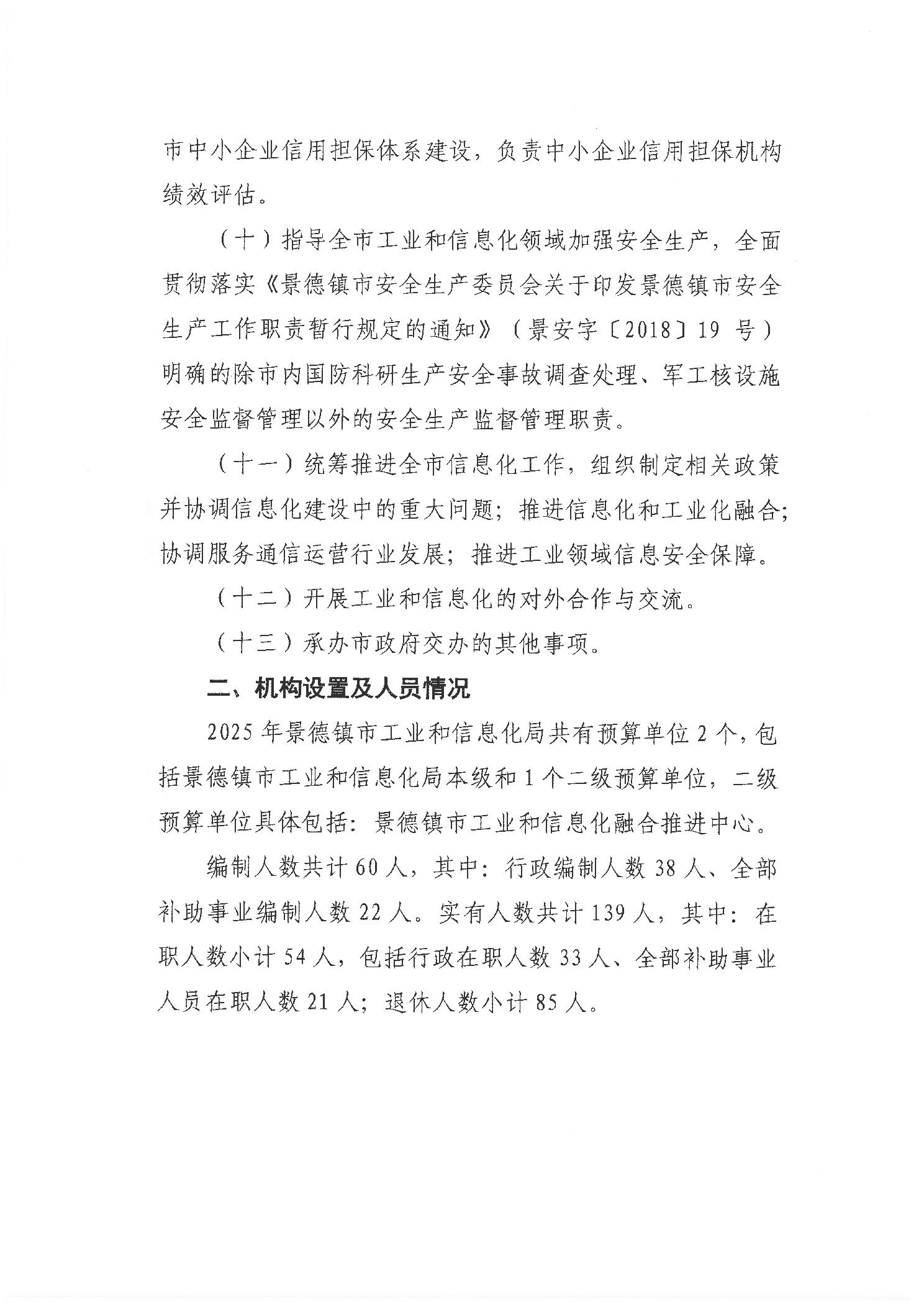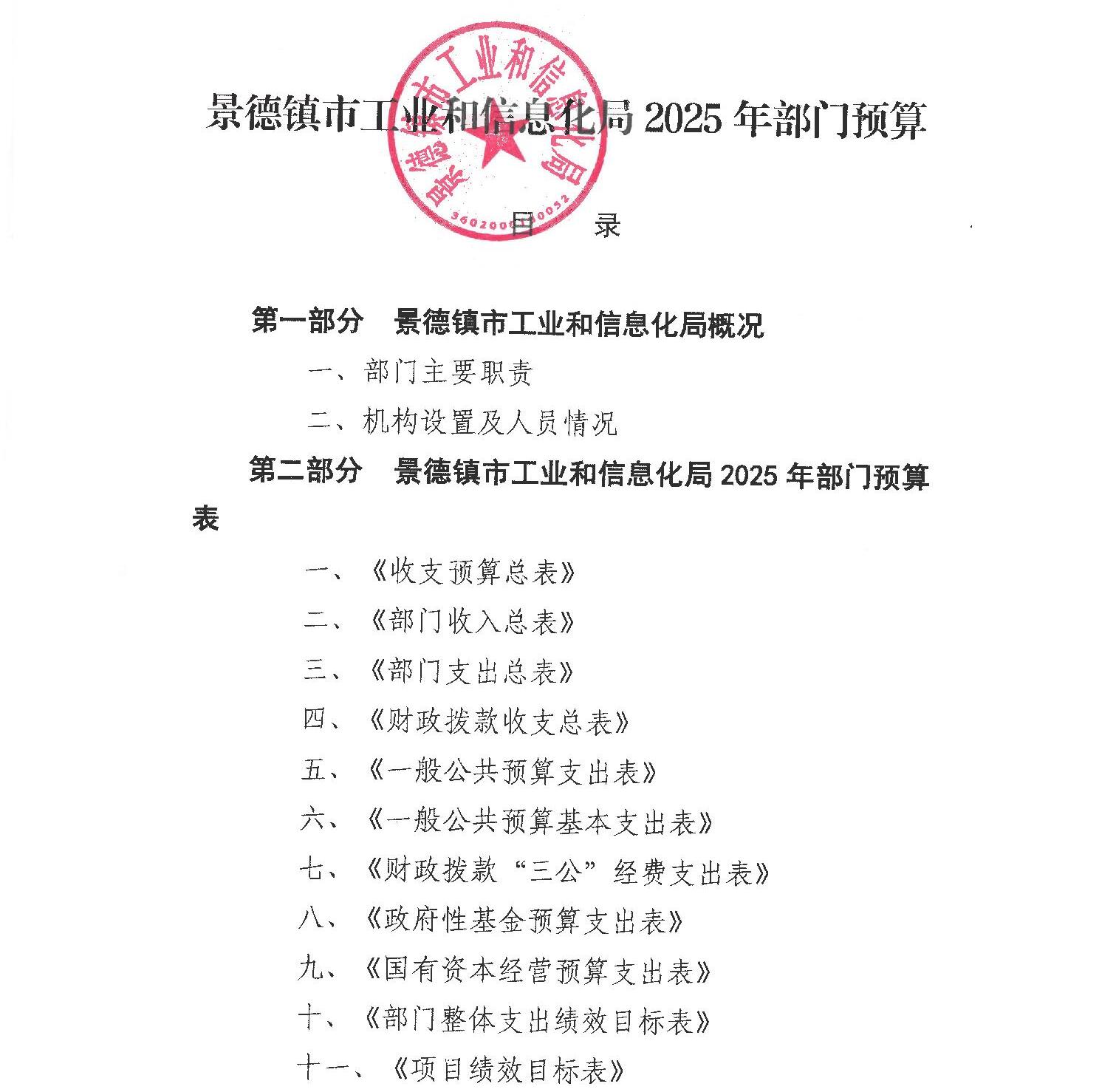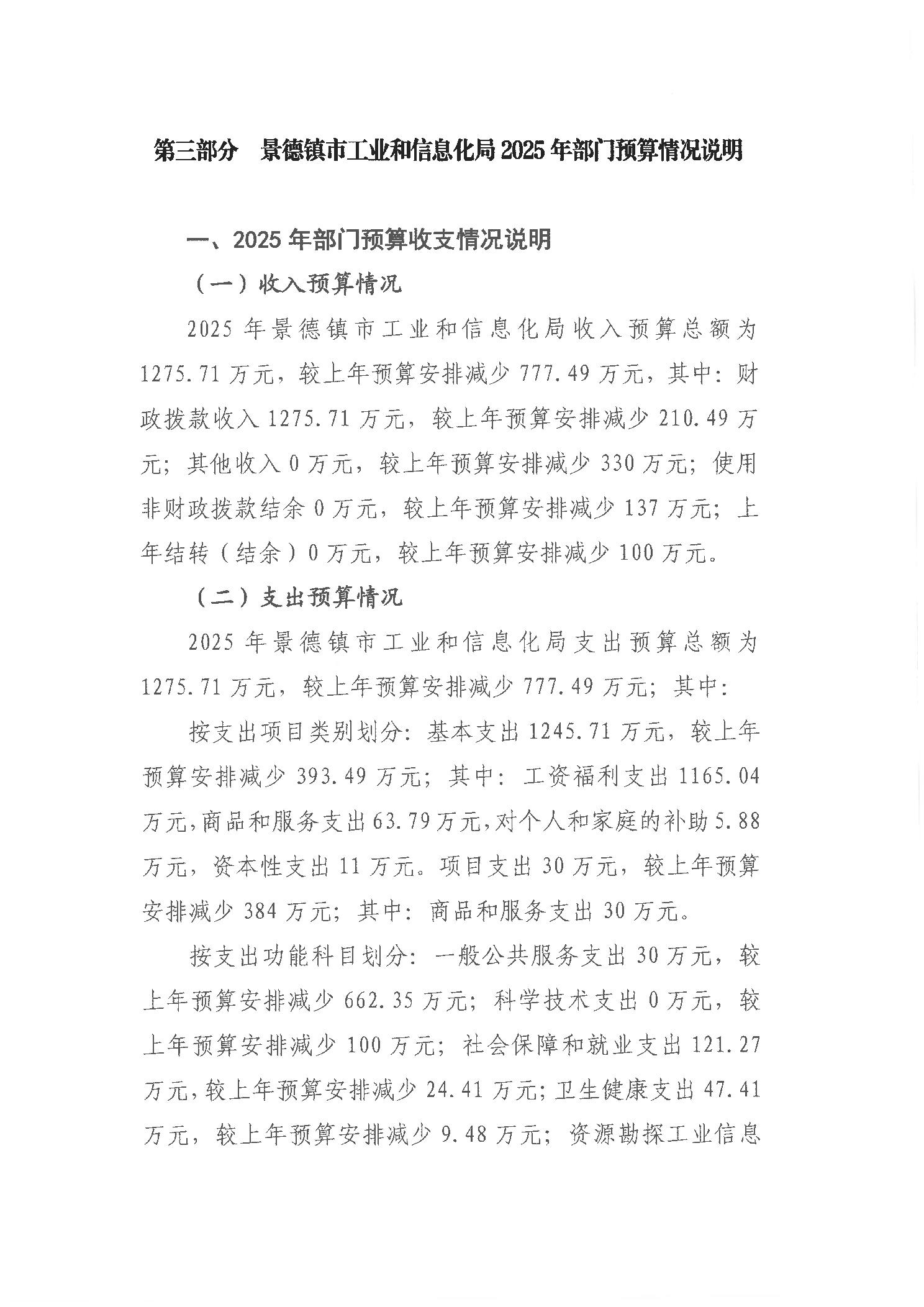 景德镇市工业和信息化局2025年部门预算