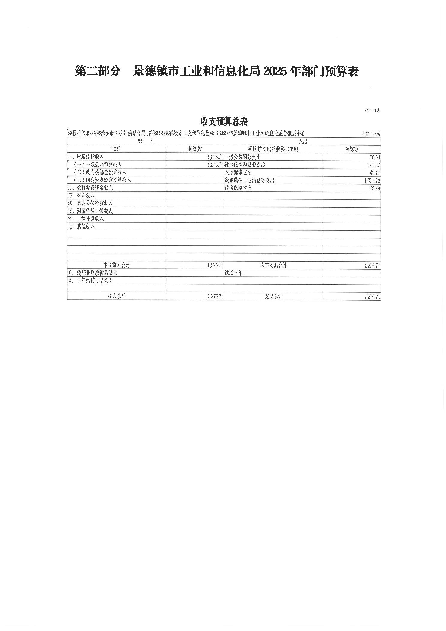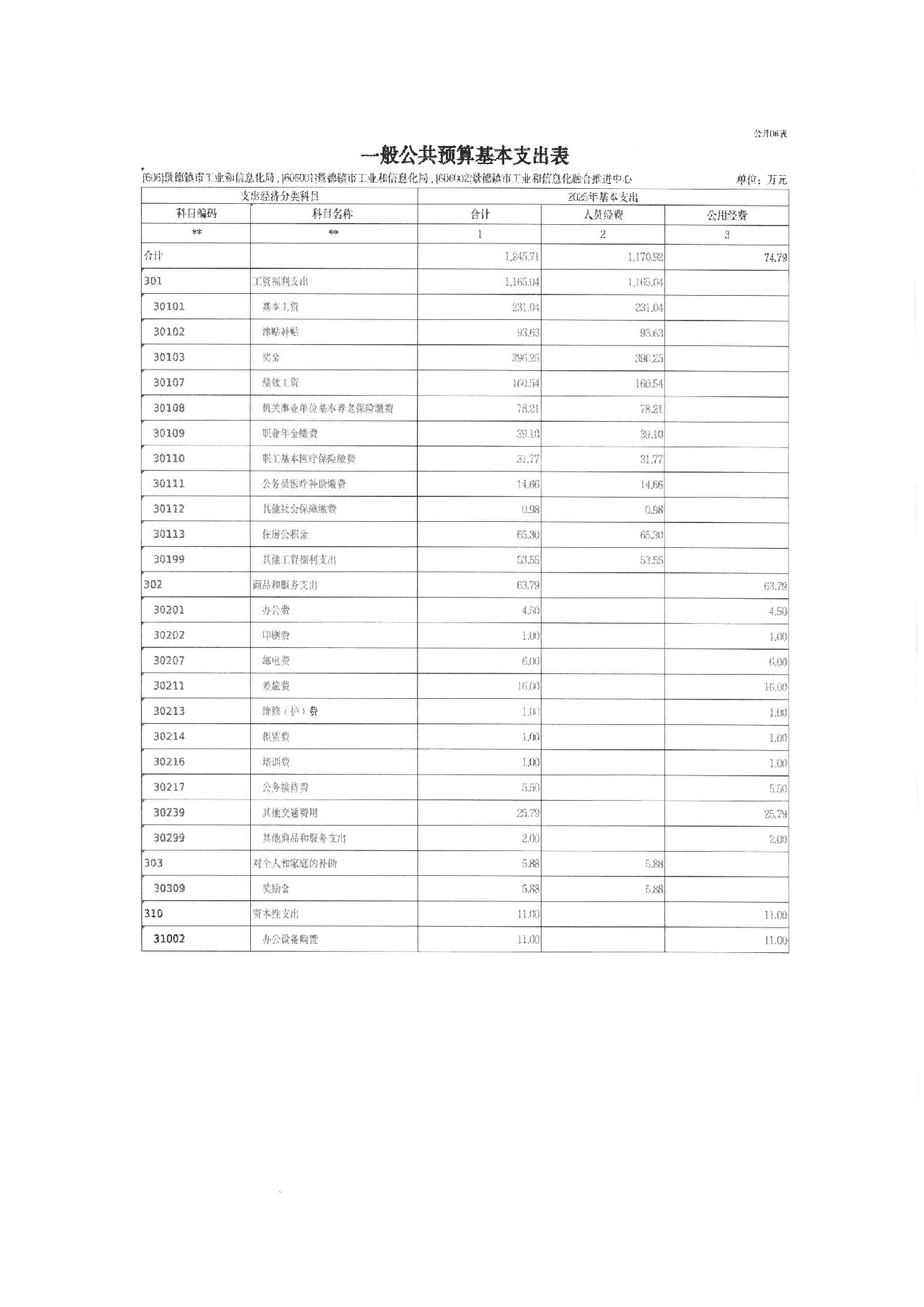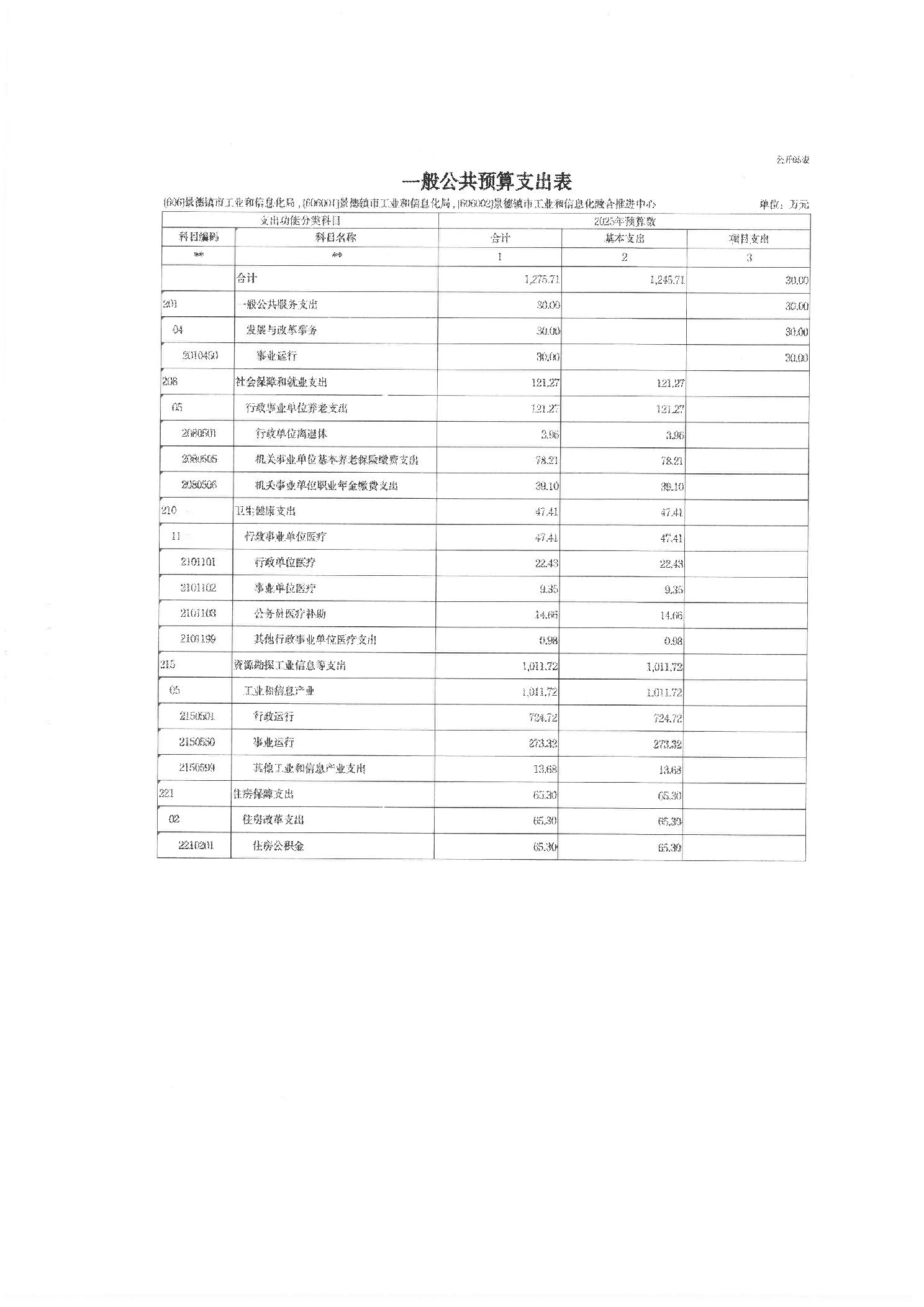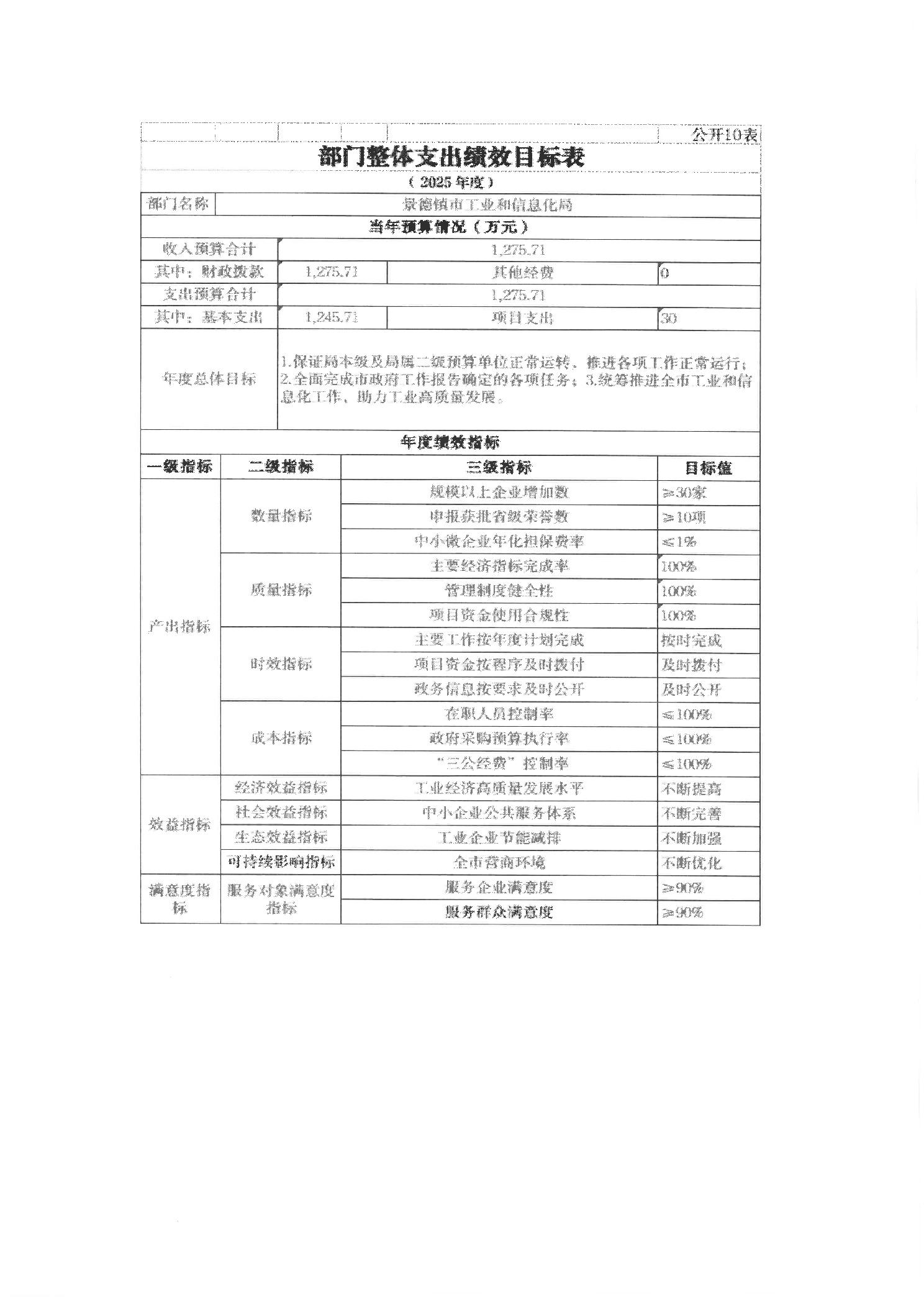 景德镇市工业和信息化局2025年部门预算