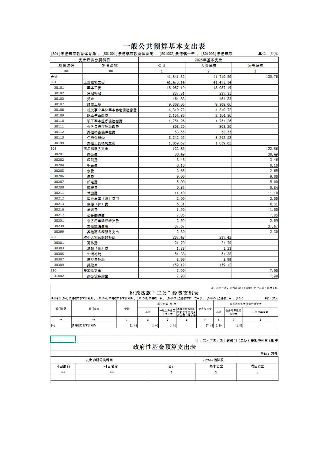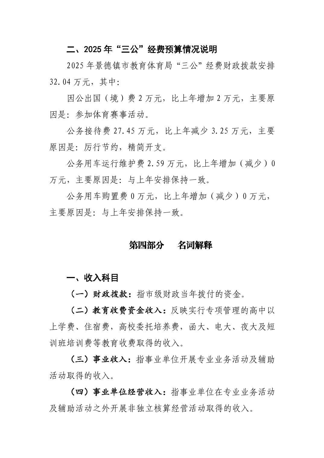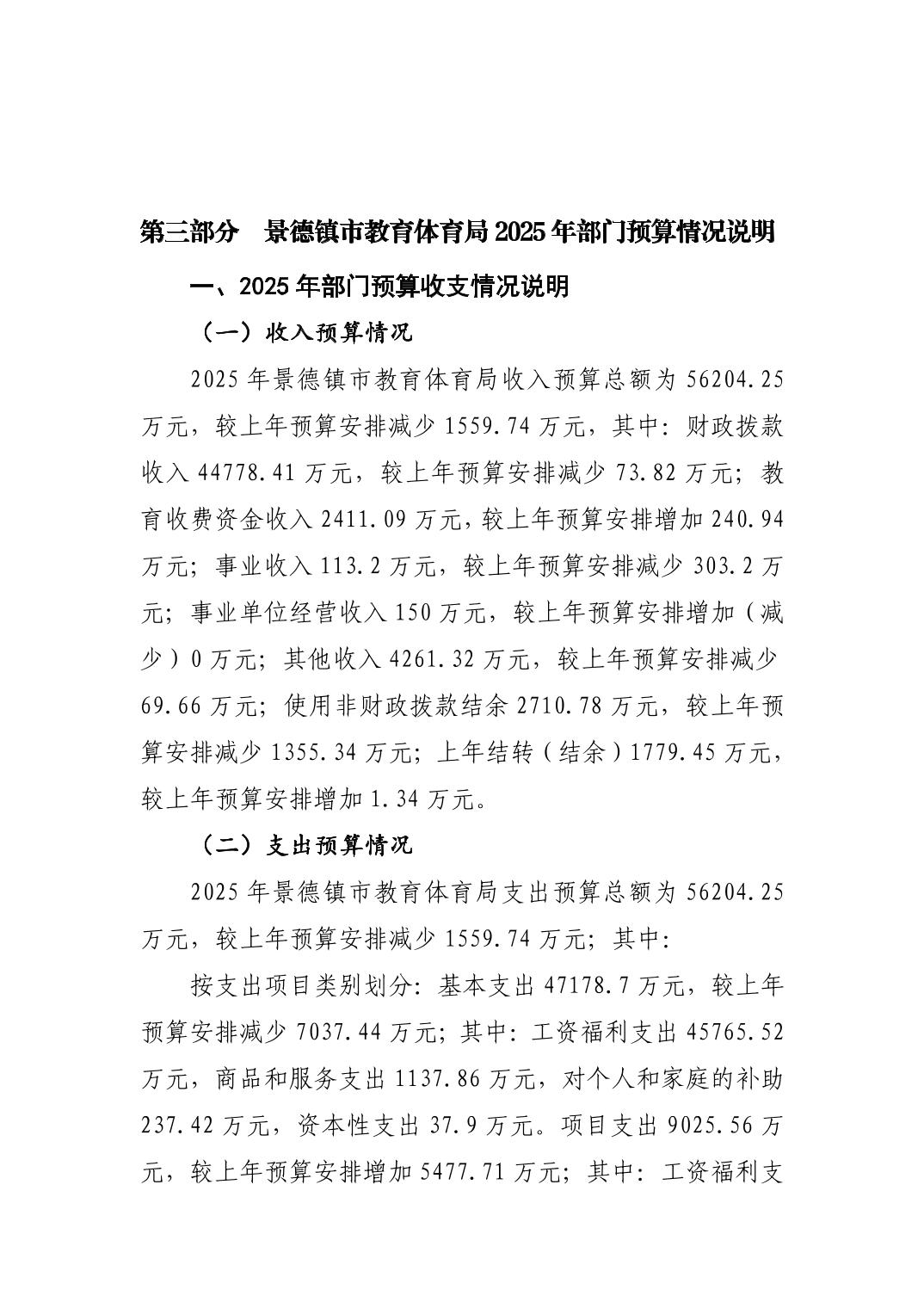 景德镇市教育体育局2025年部门预算