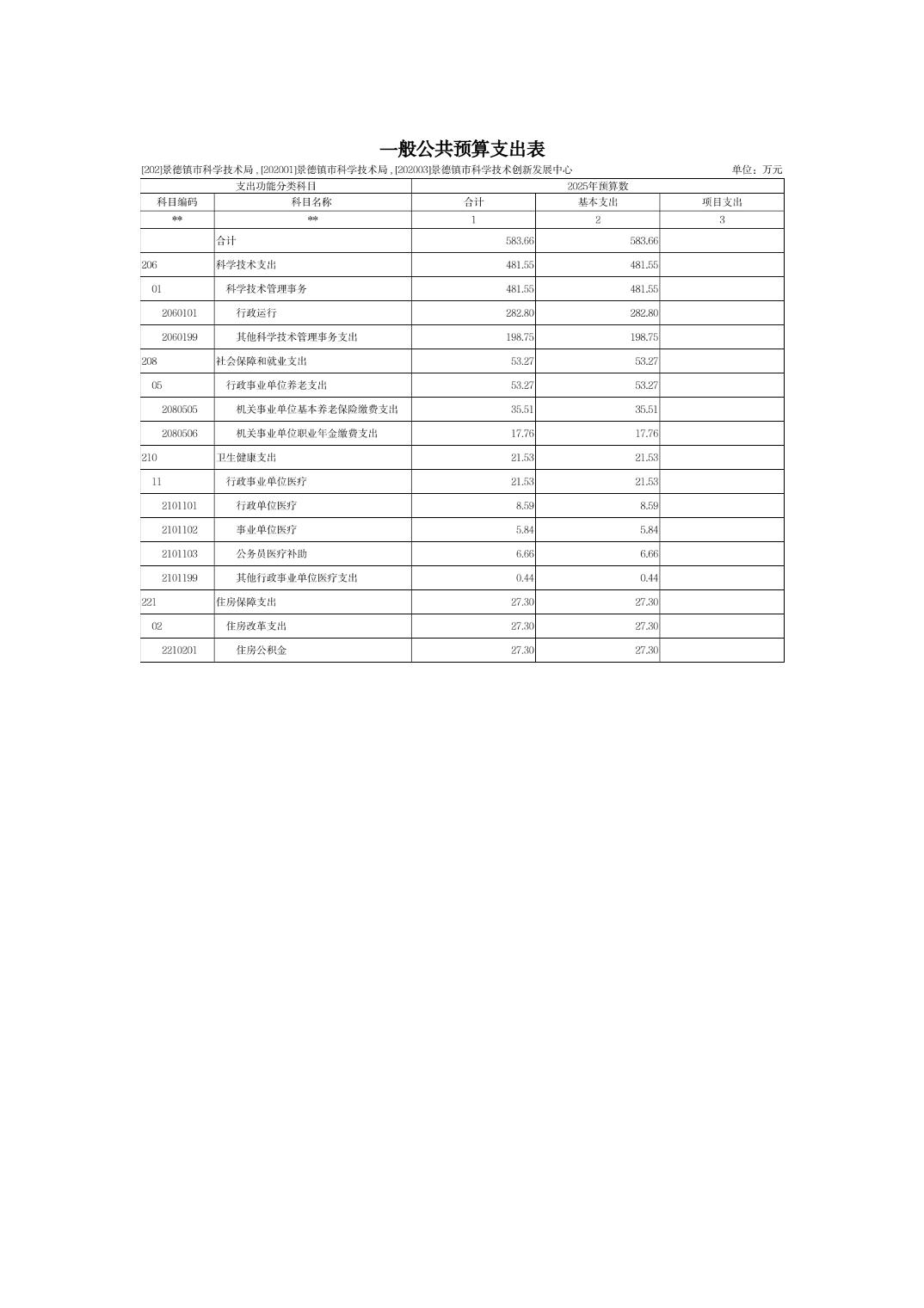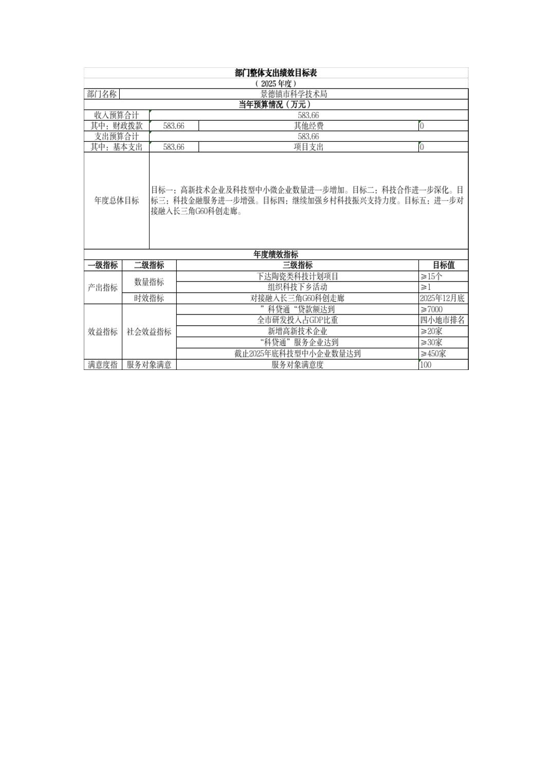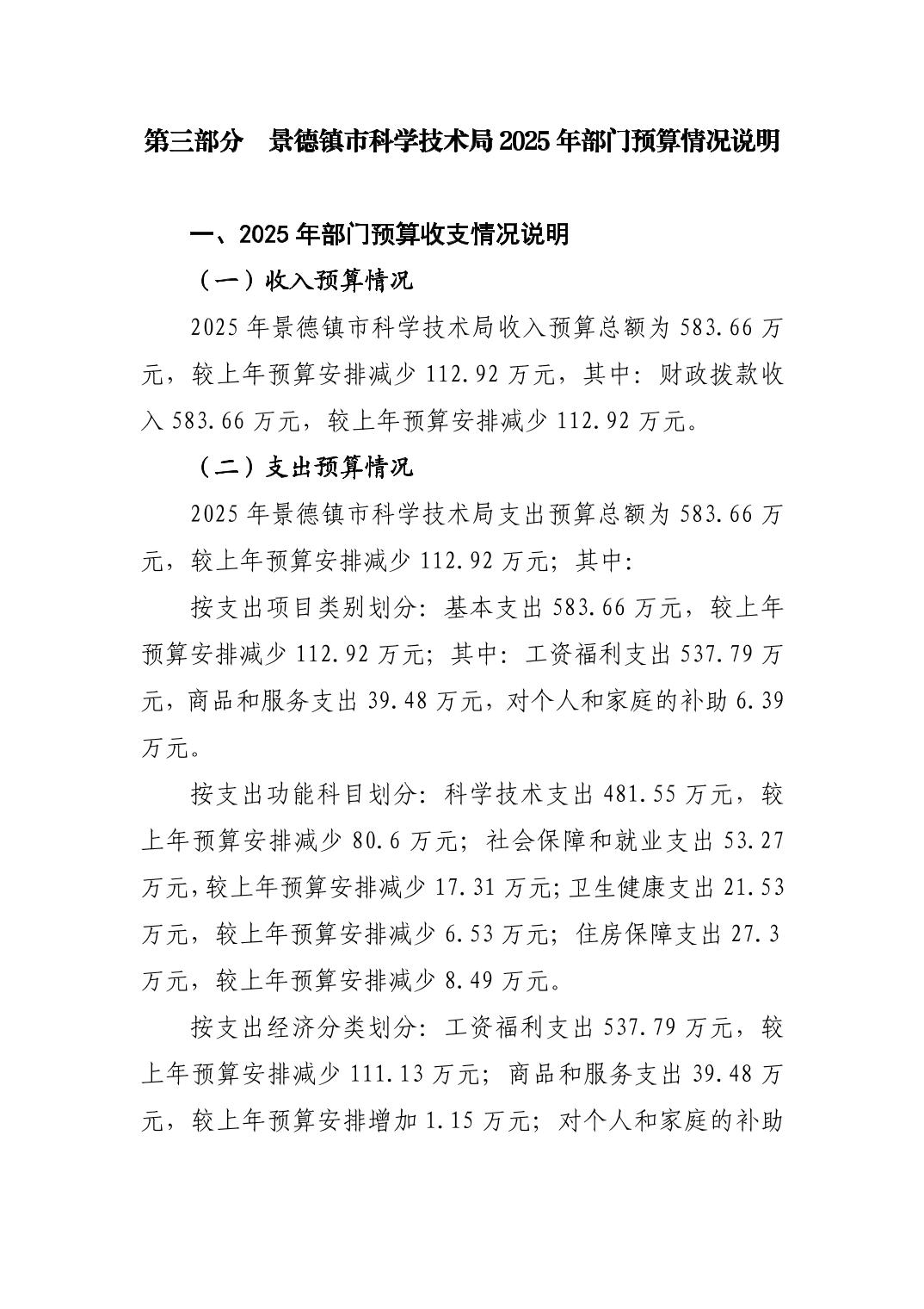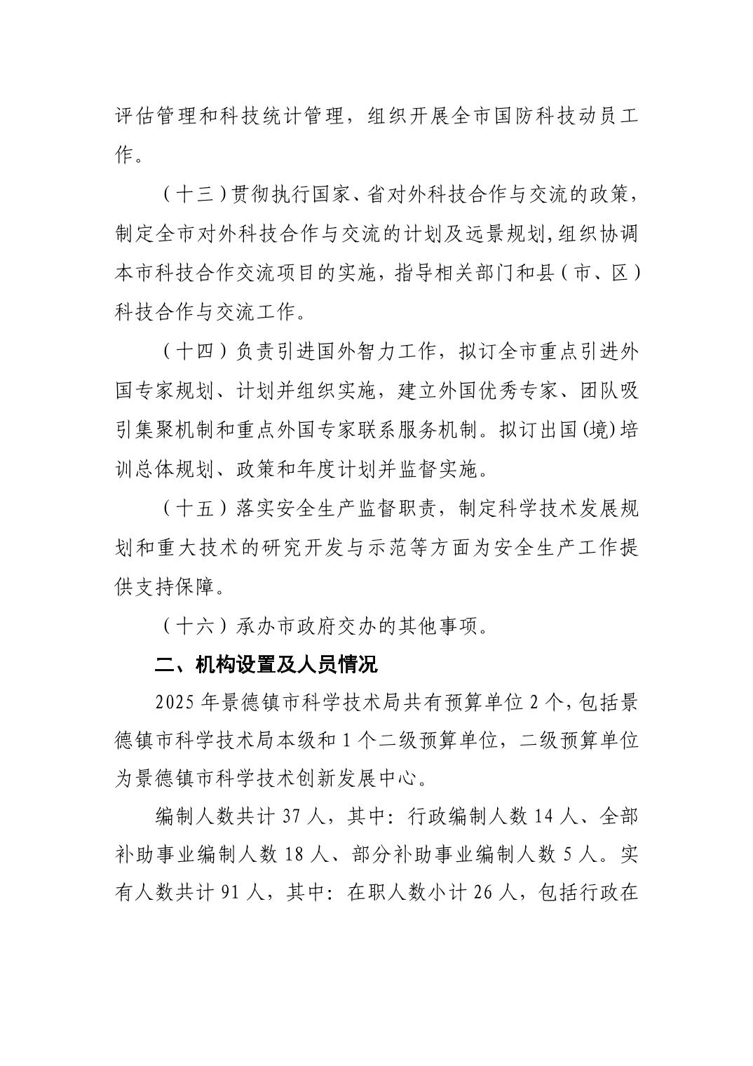 景德镇市科技局2025年部门预算