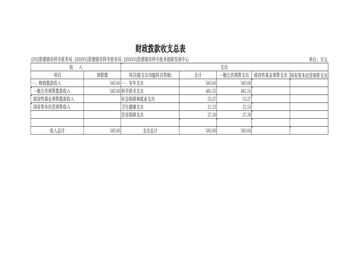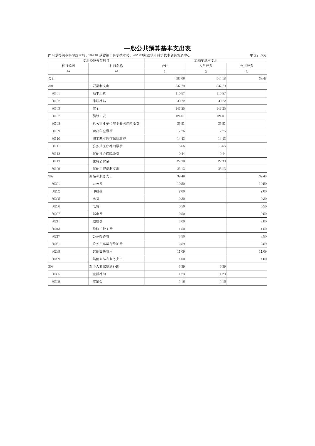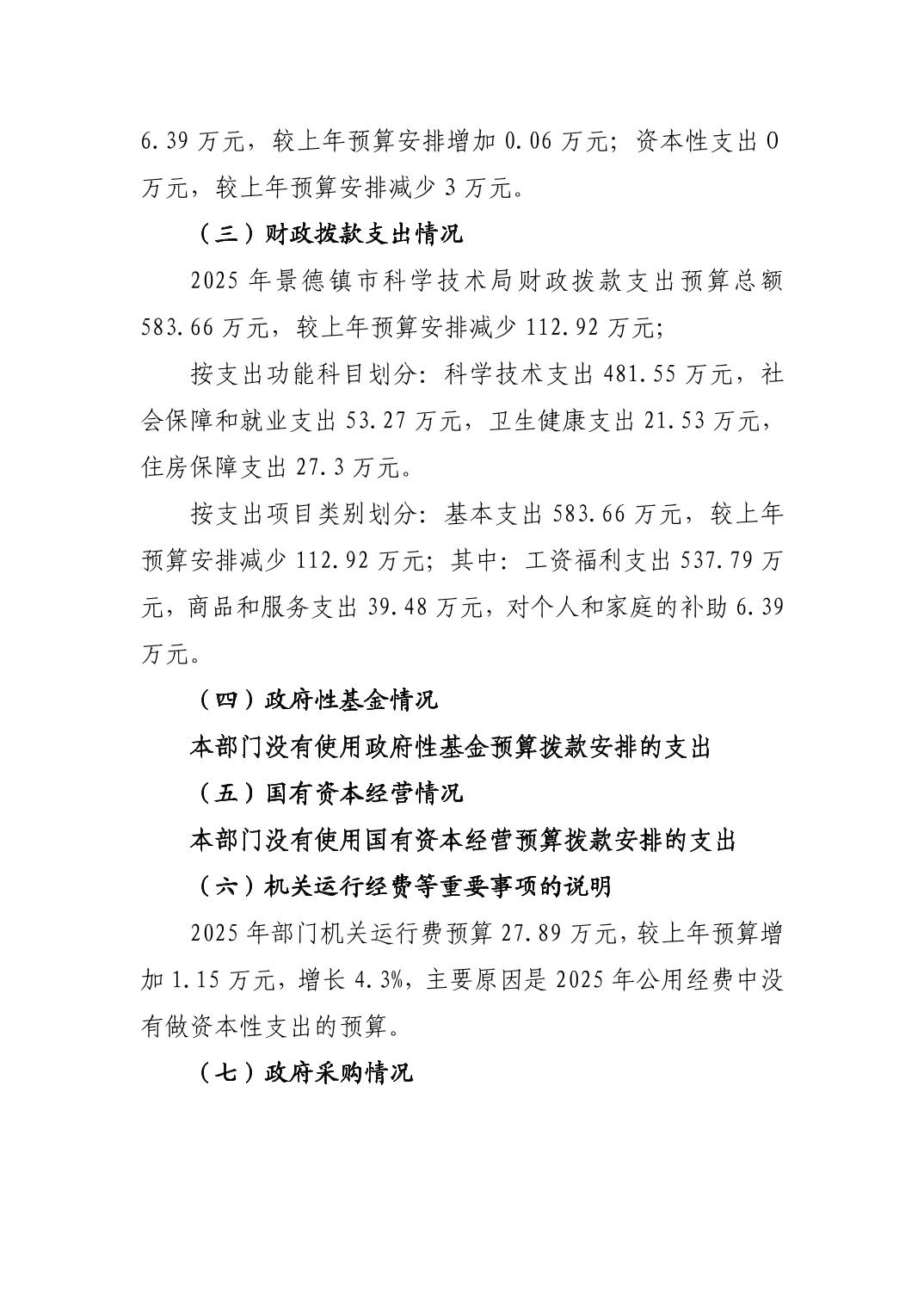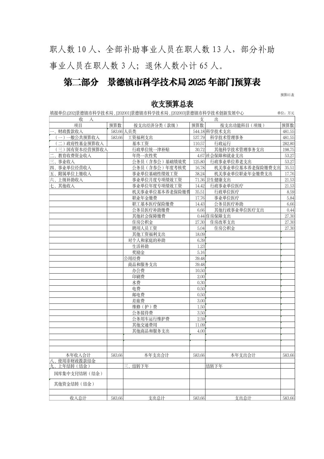 景德镇市科技局2025年部门预算