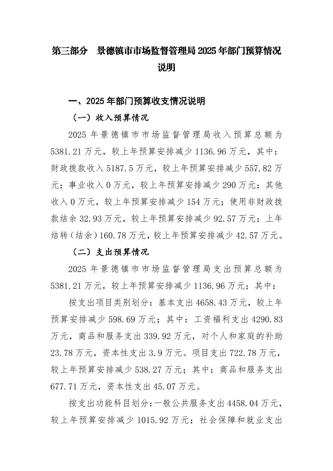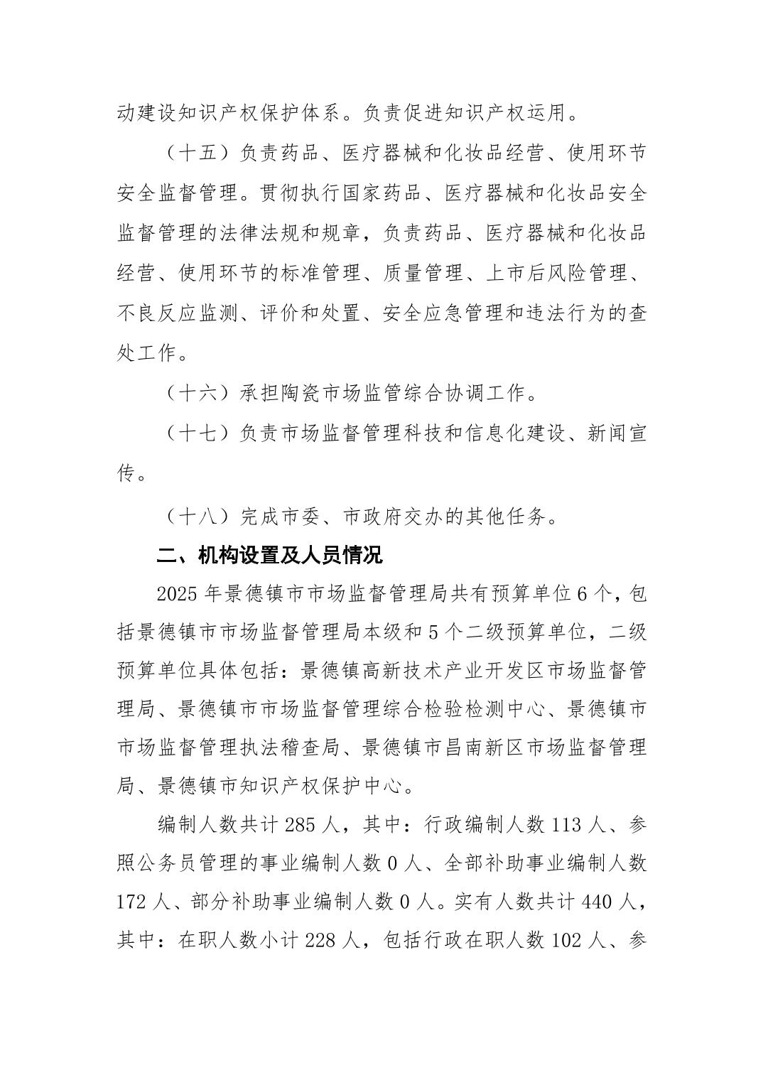景德镇市市场监督管理局2025年部门预算