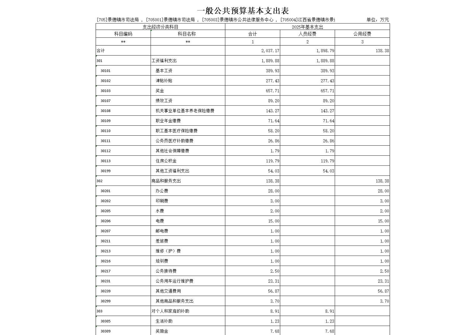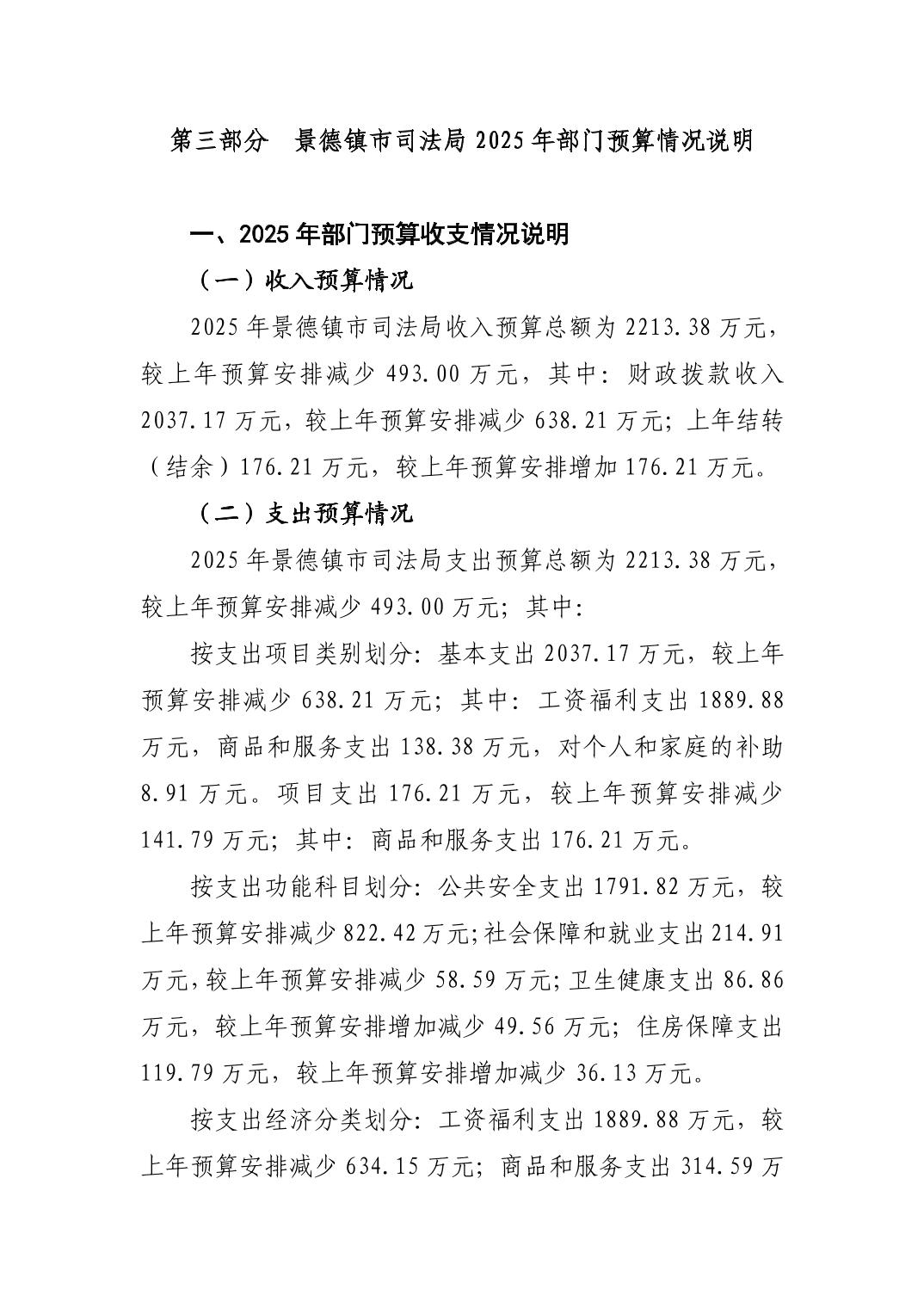 景德镇市司法局2025年部门预算
