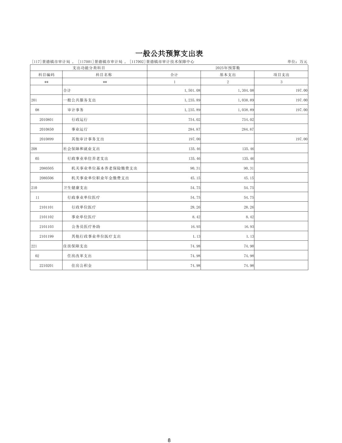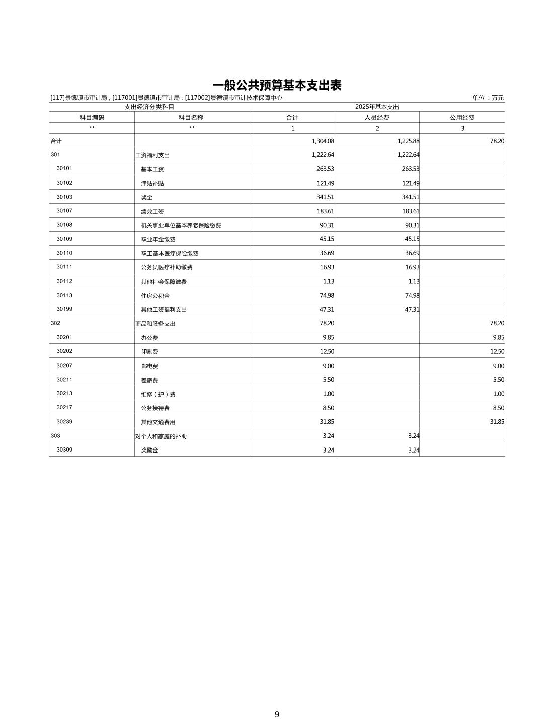景德镇市审计局2025年部门预算
