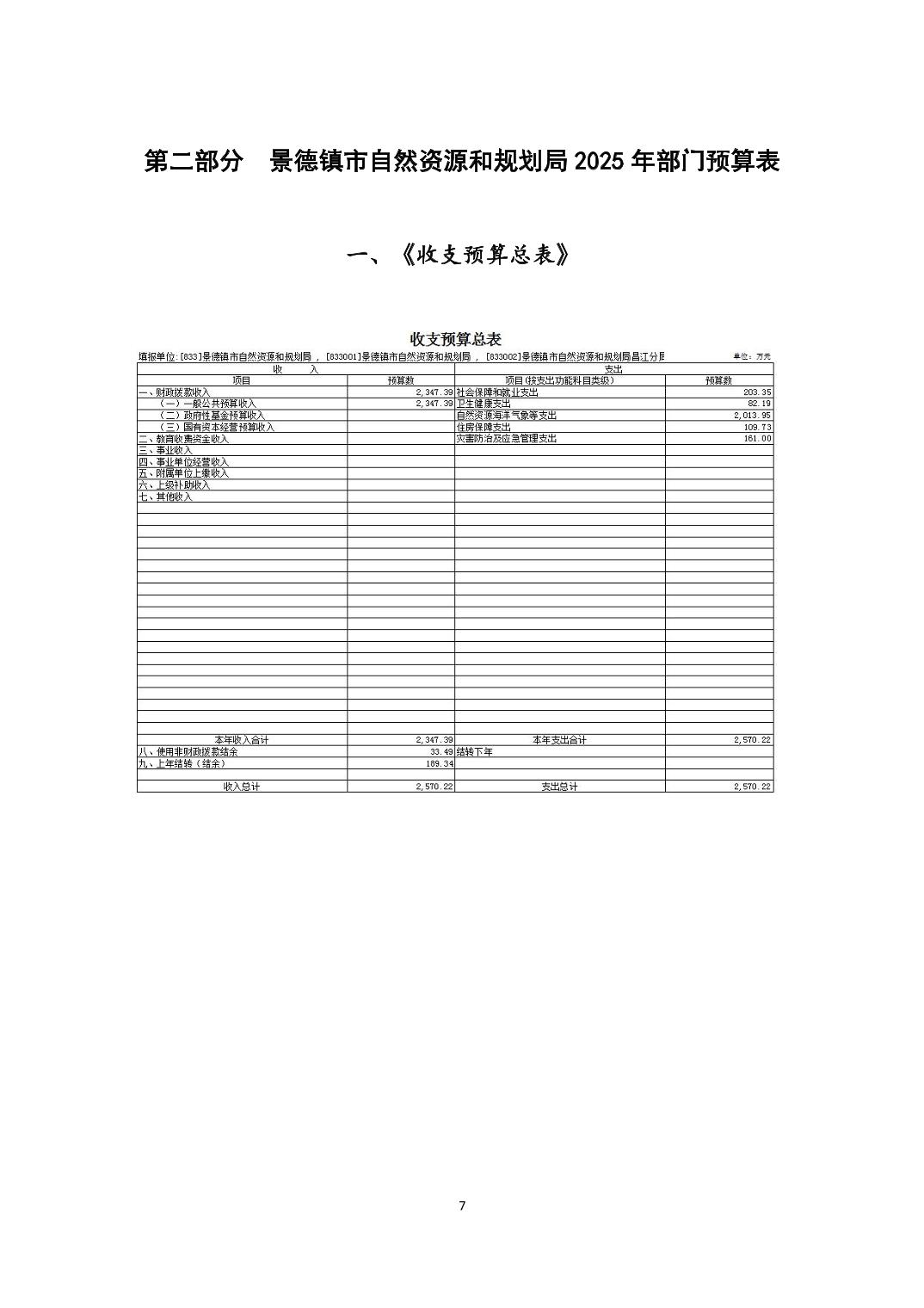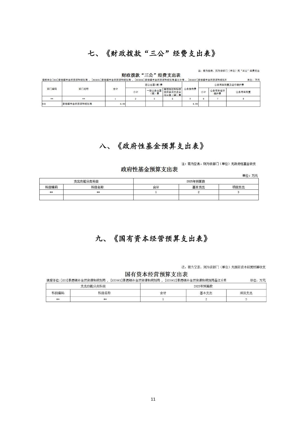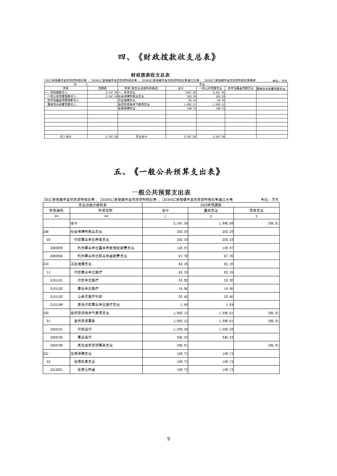景德镇市自然资源和规划局2025年部门预算