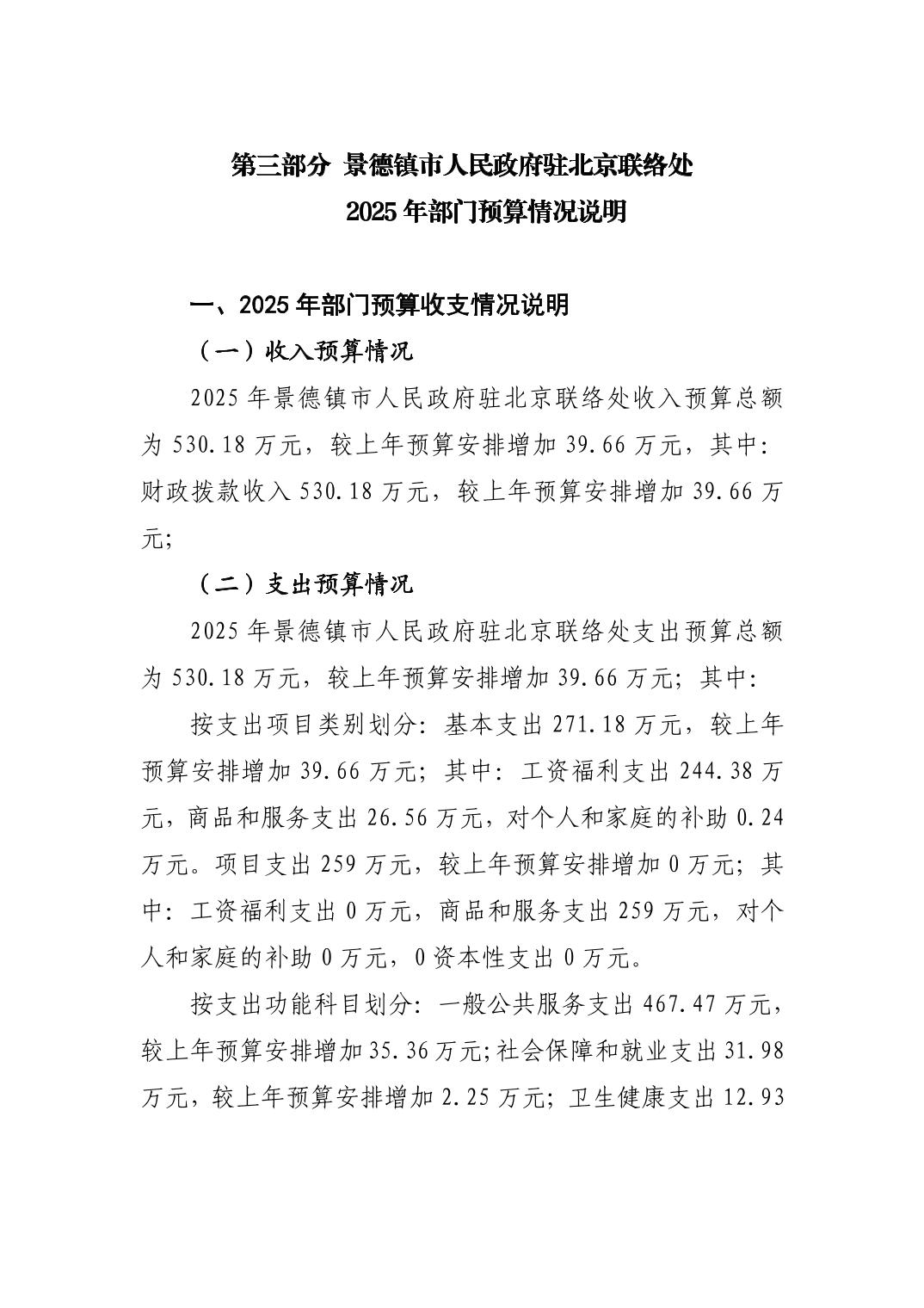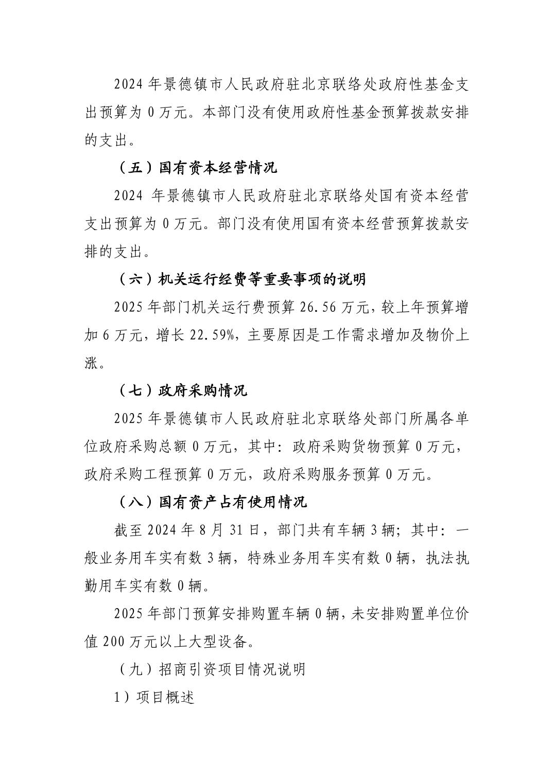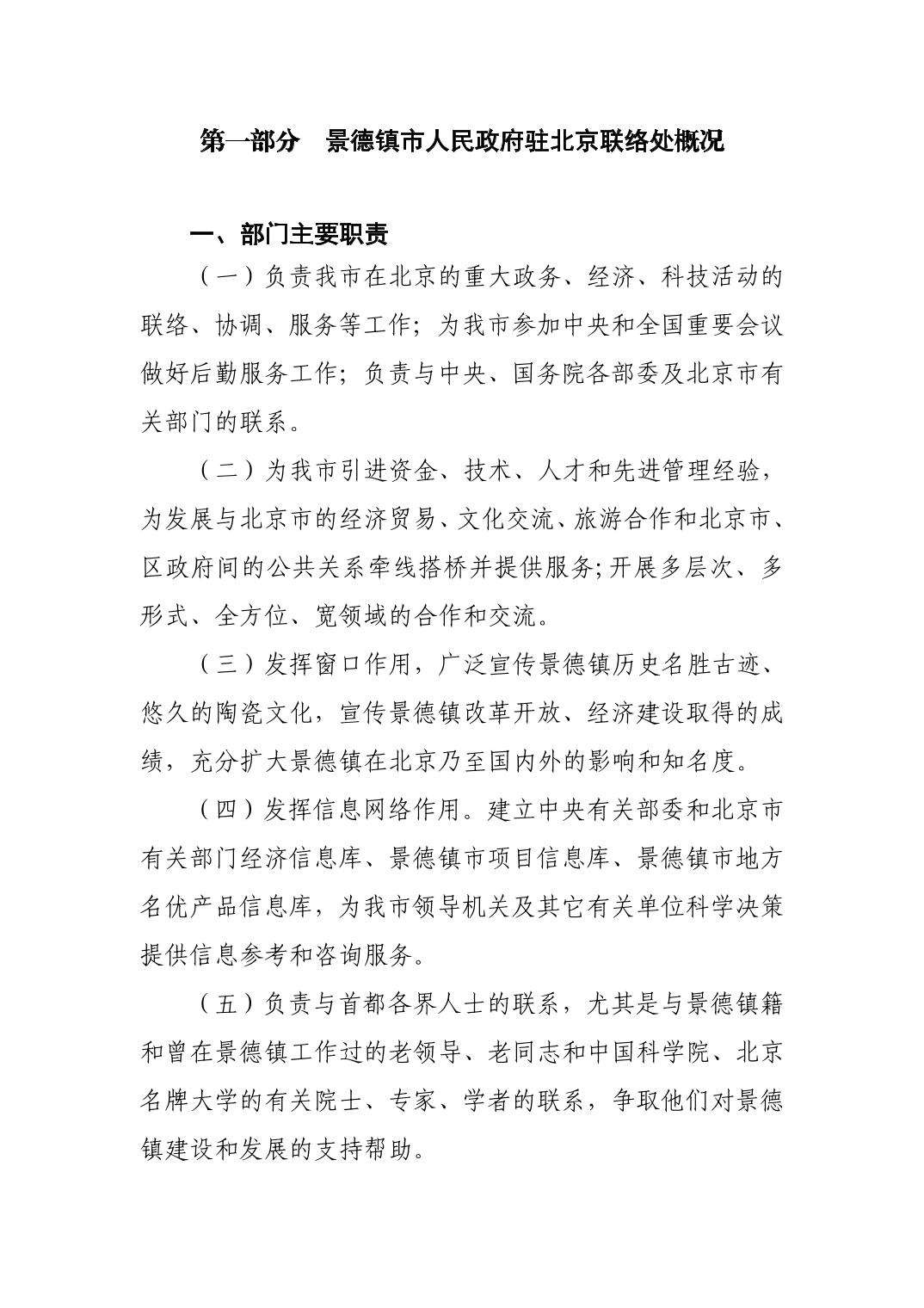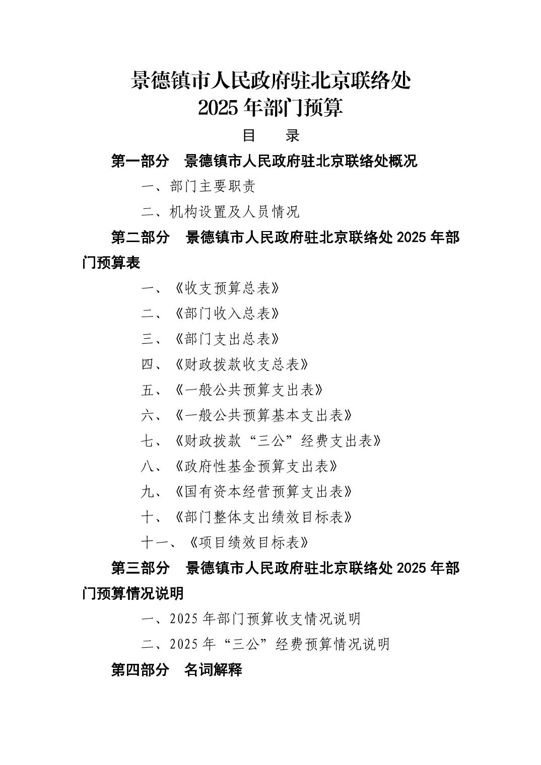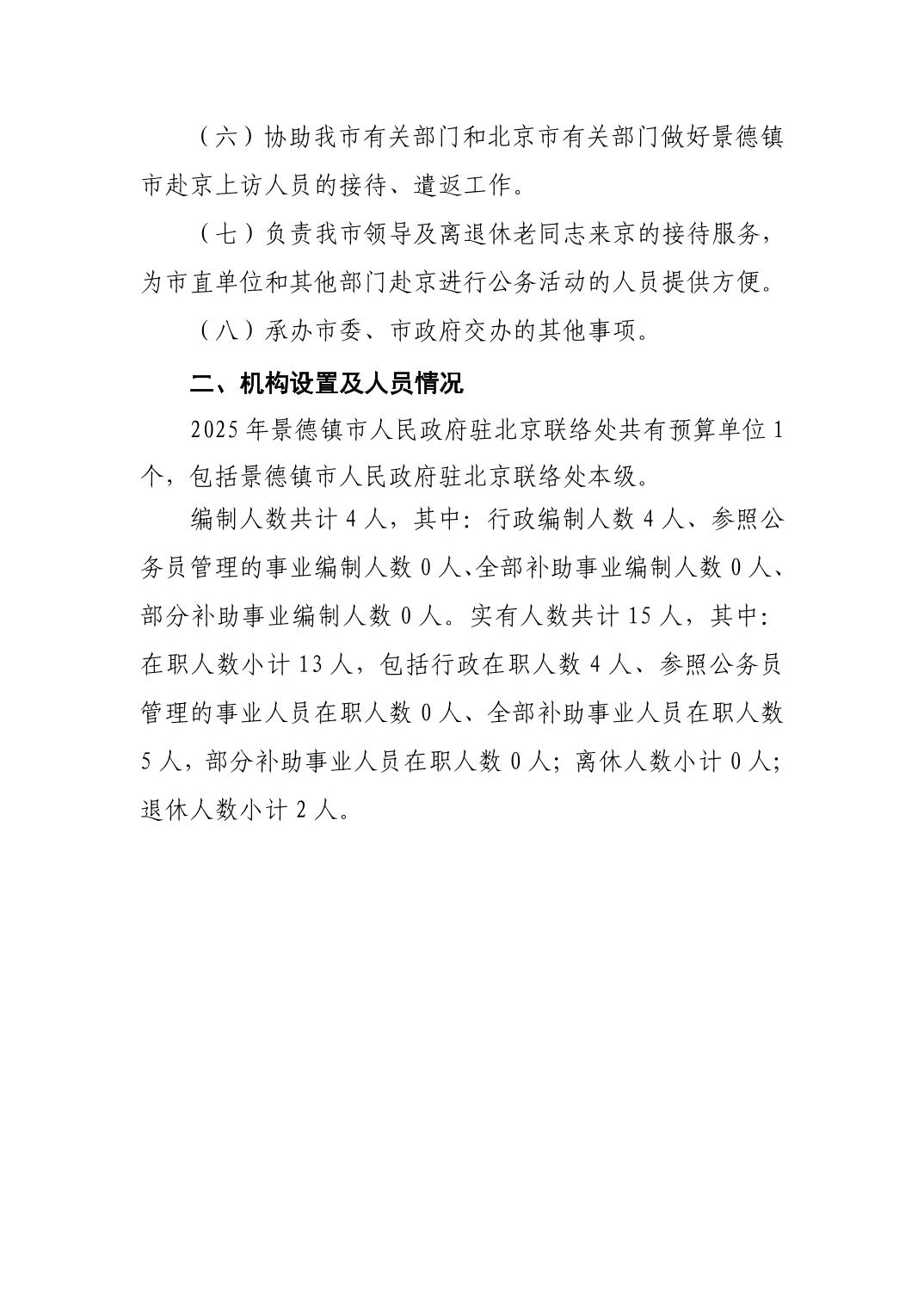 景德镇市人民政府驻北京联络处2025年部门预算