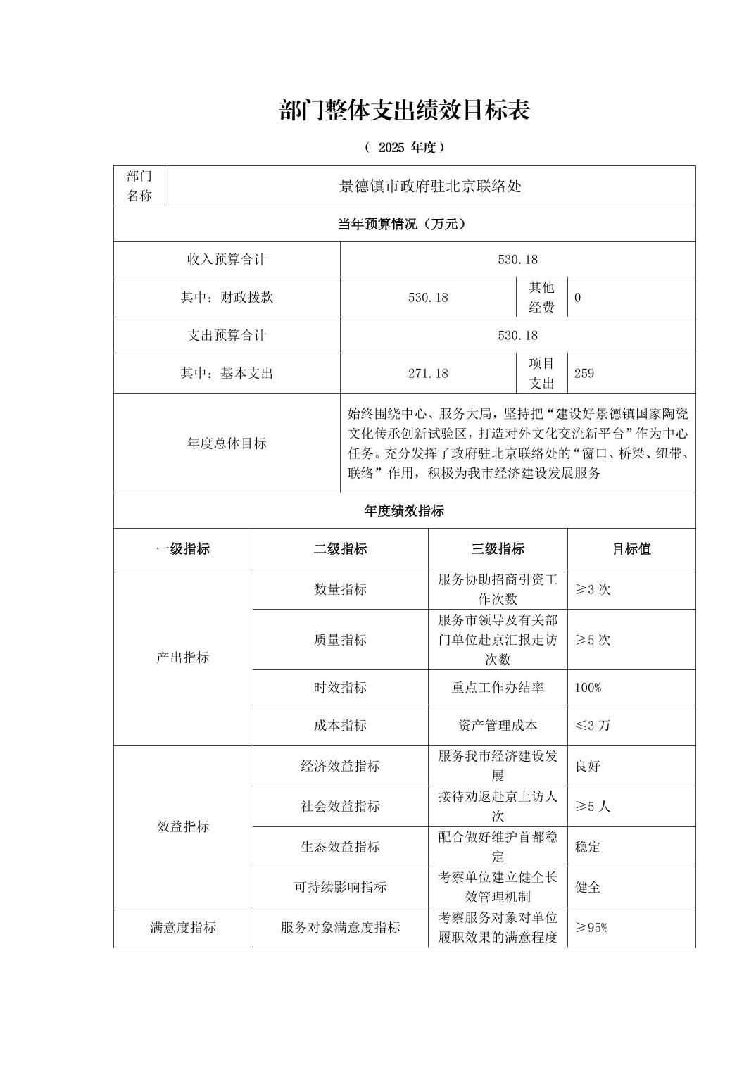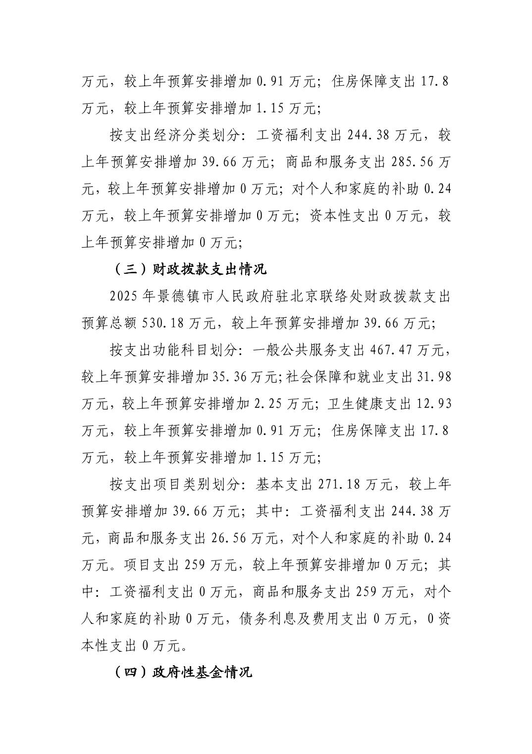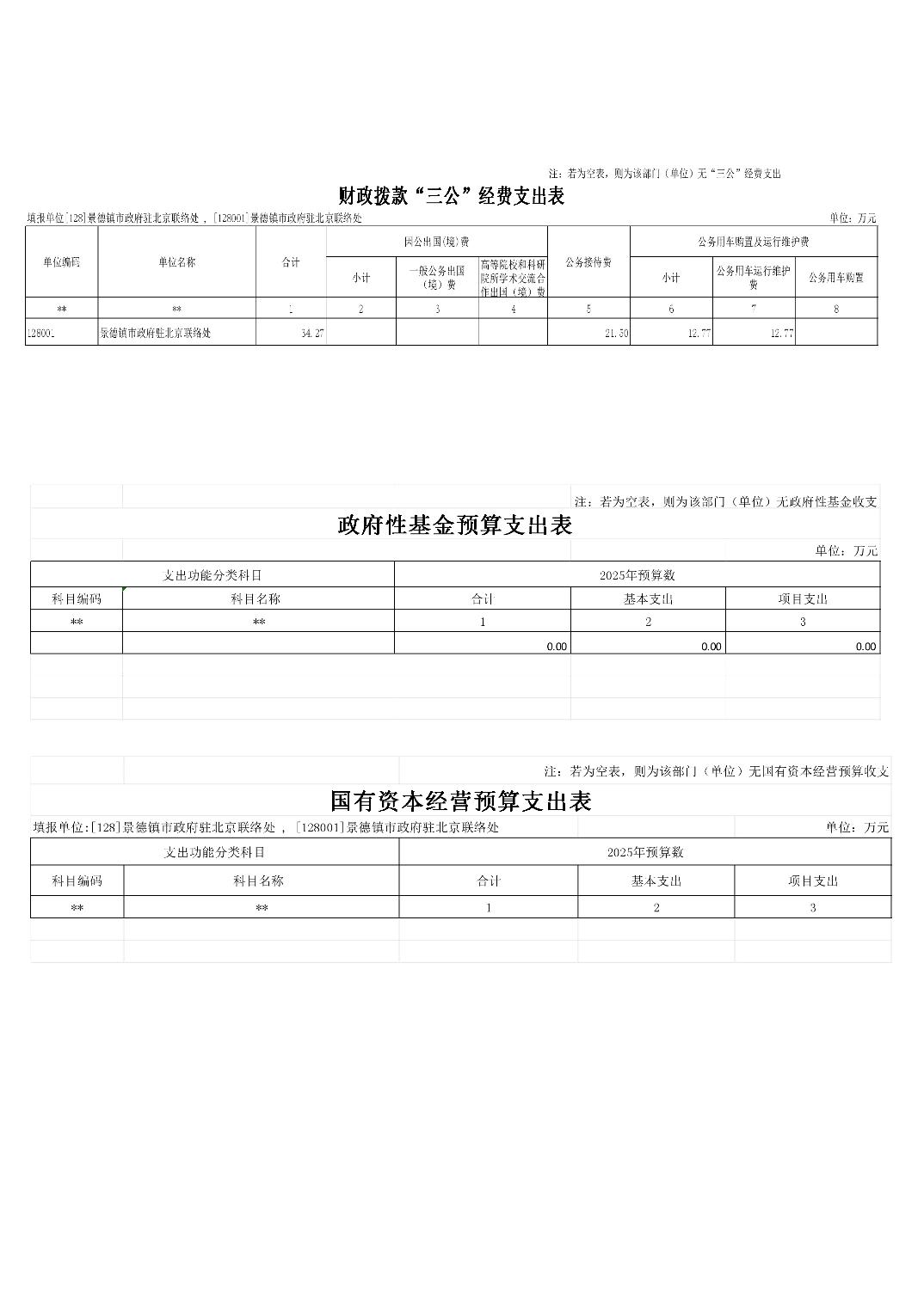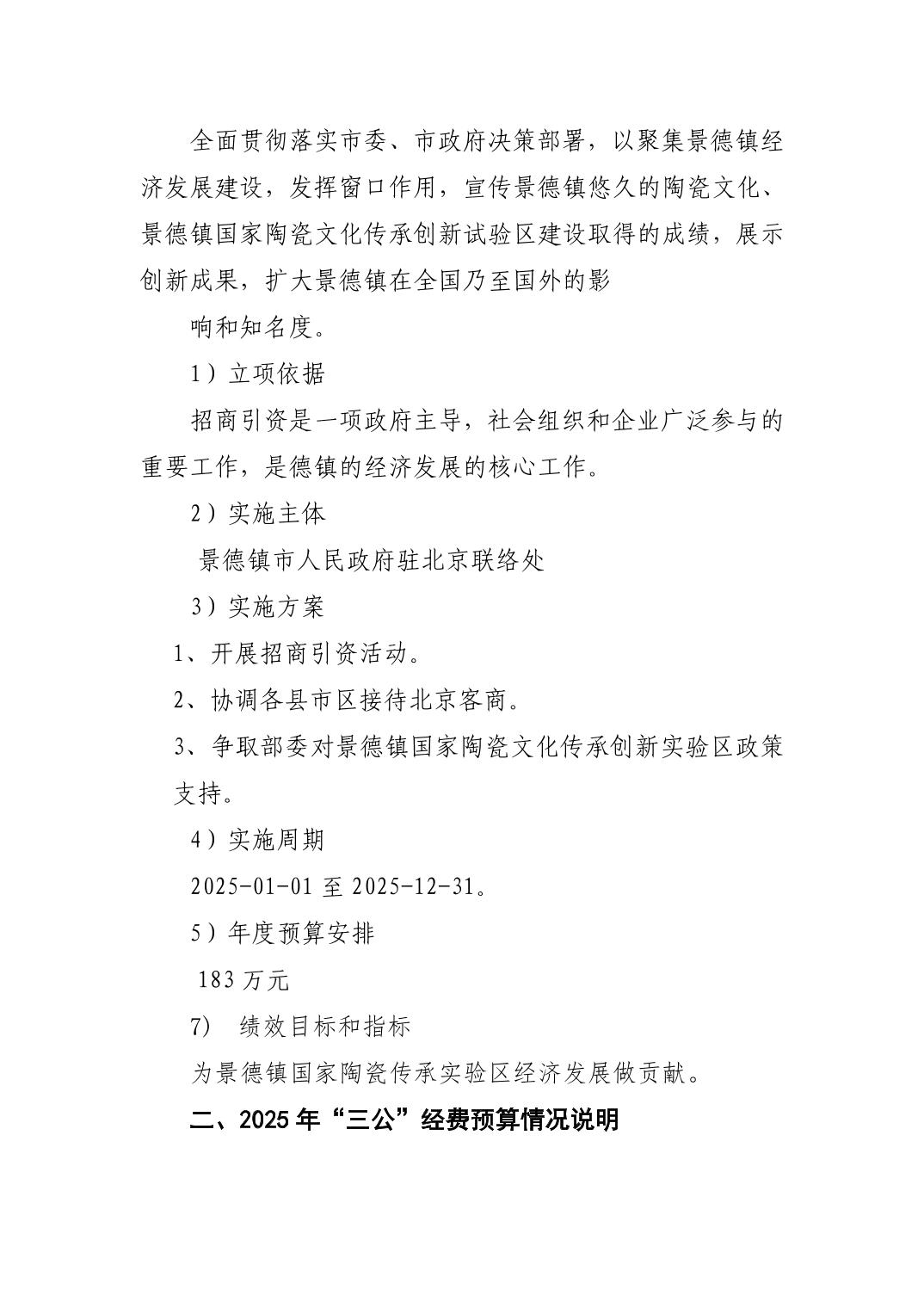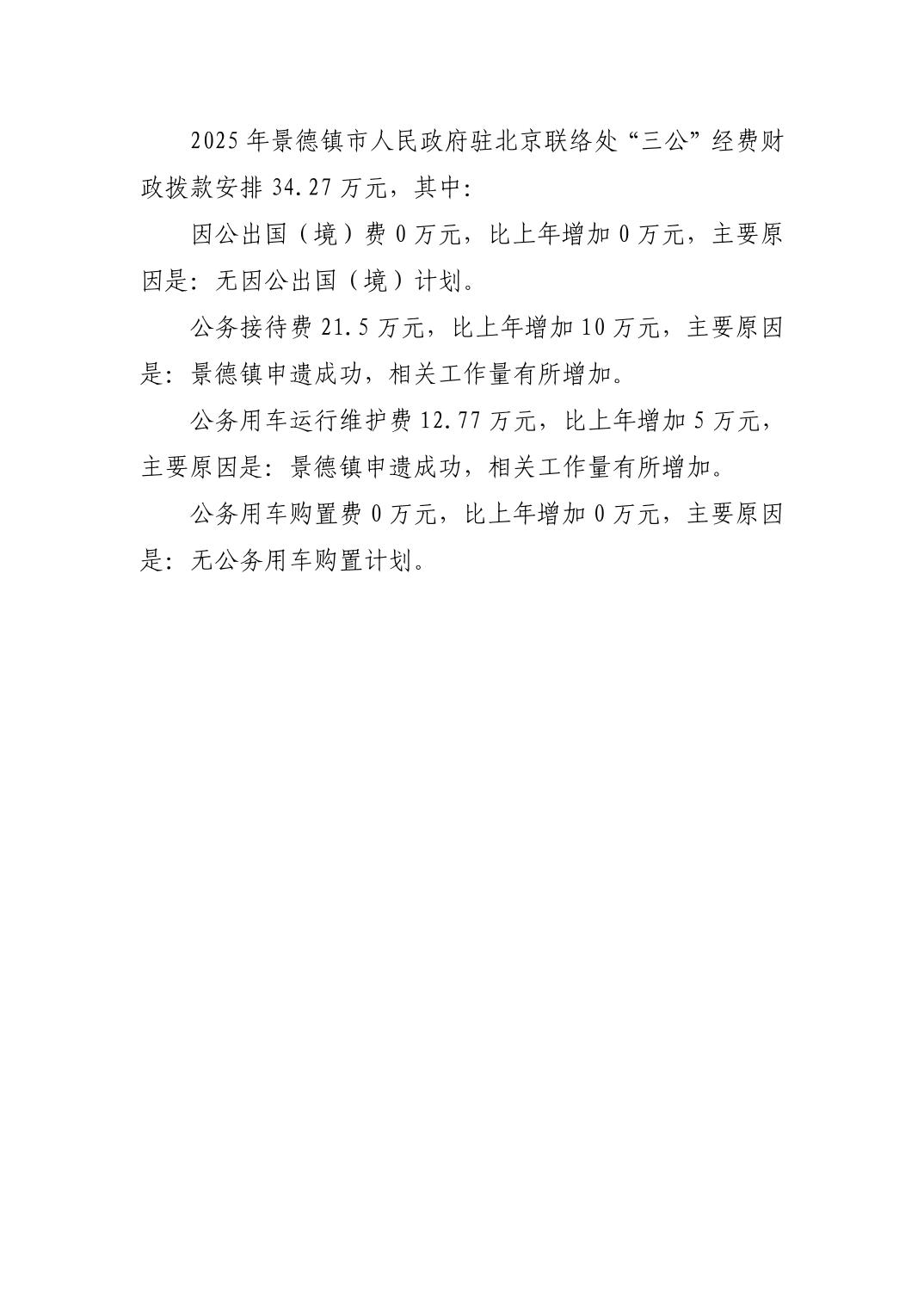 景德镇市人民政府驻北京联络处2025年部门预算