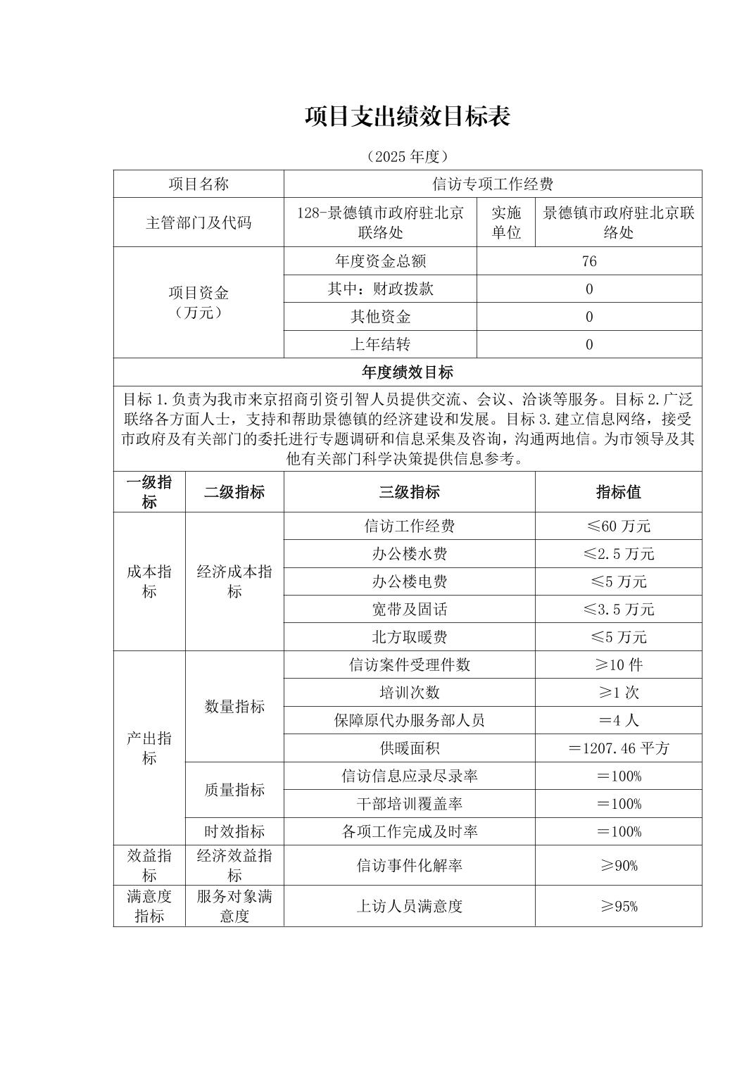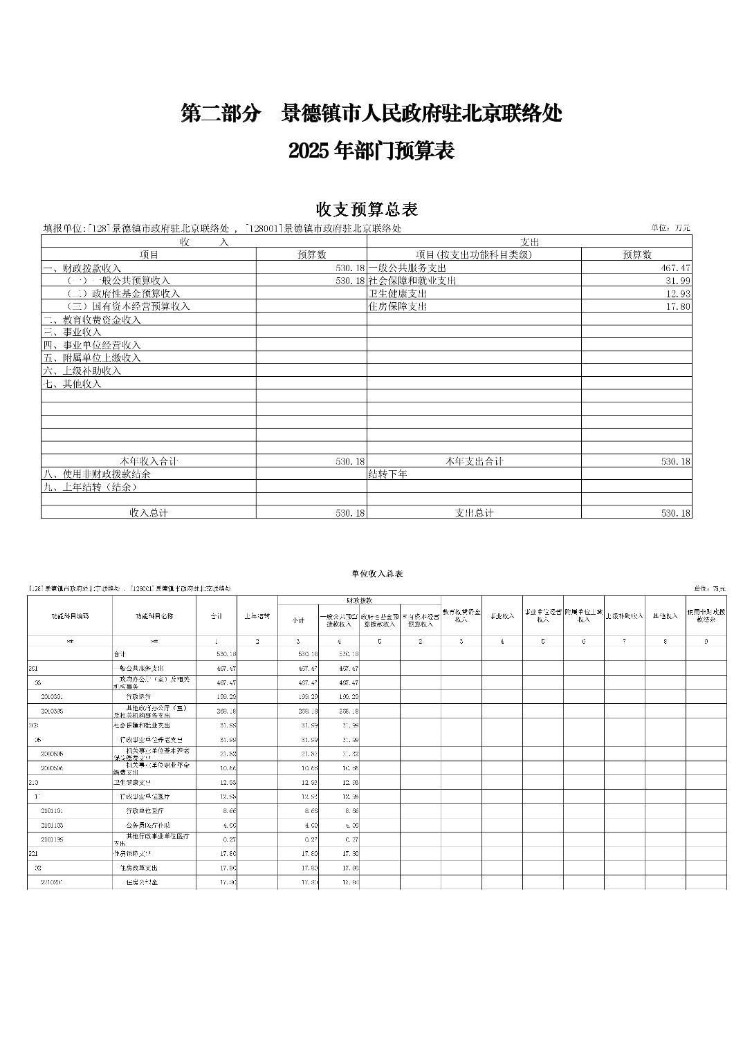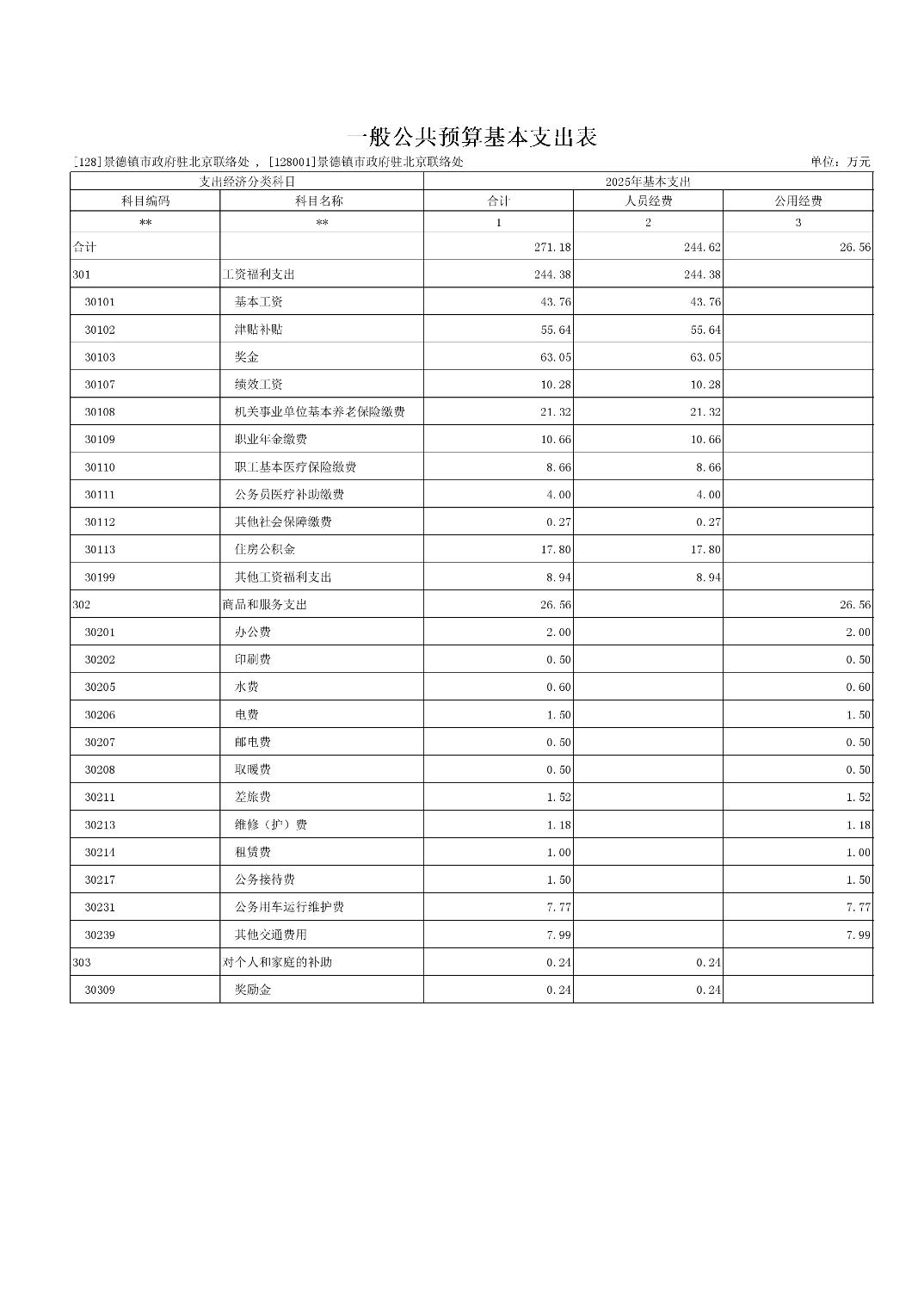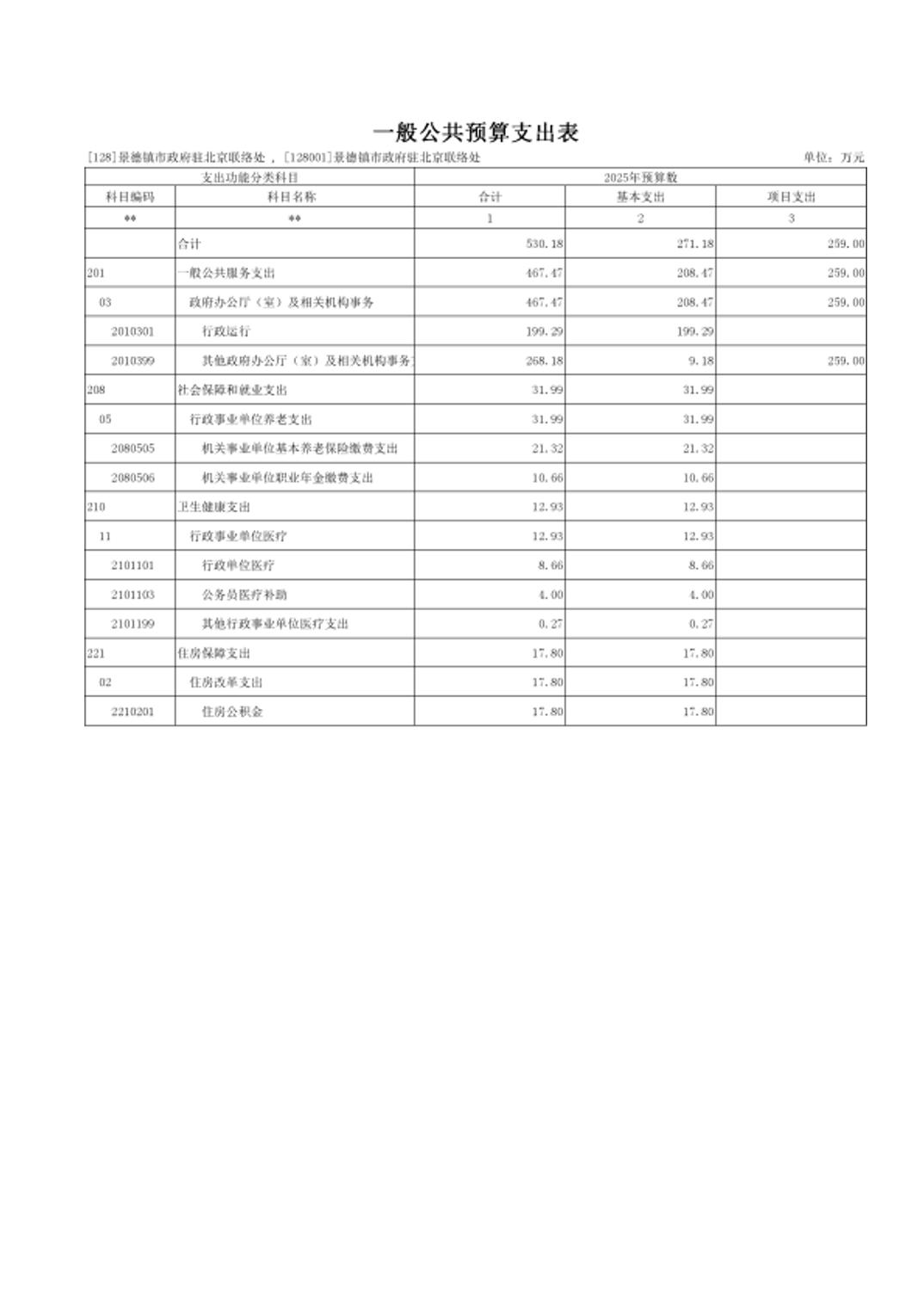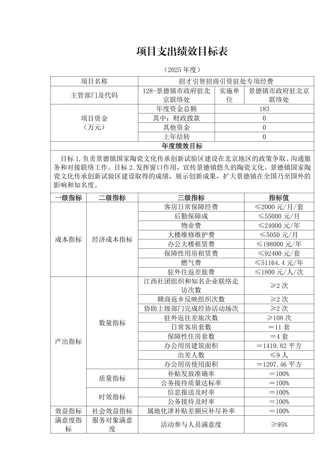 景德镇市人民政府驻北京联络处2025年部门预算