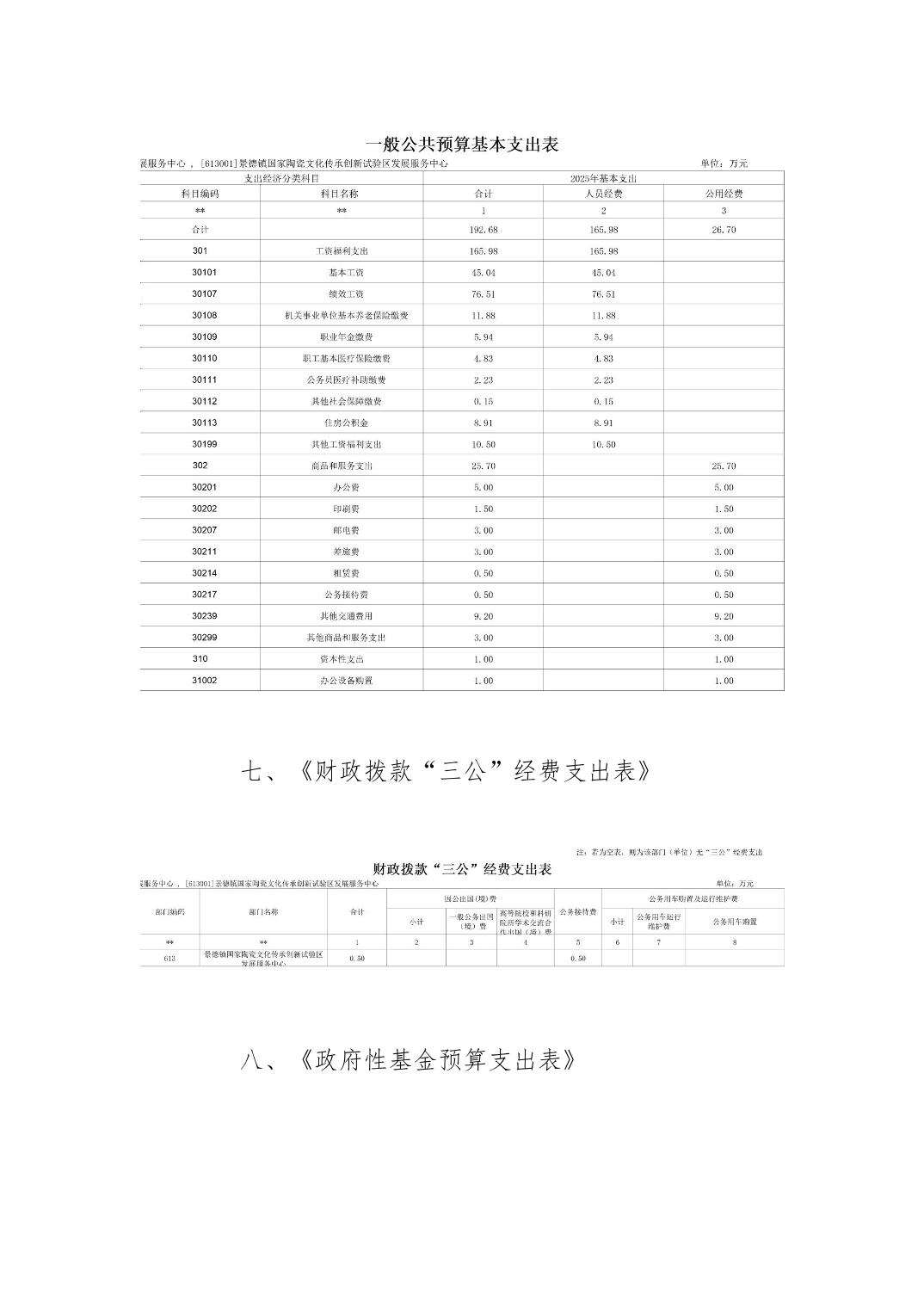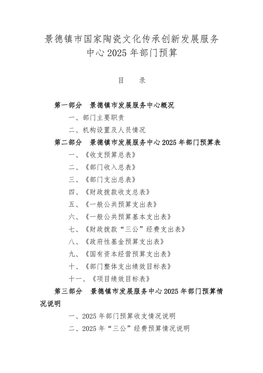 景德镇国家陶瓷文化传承创新发展服务中心2025年部门预算
