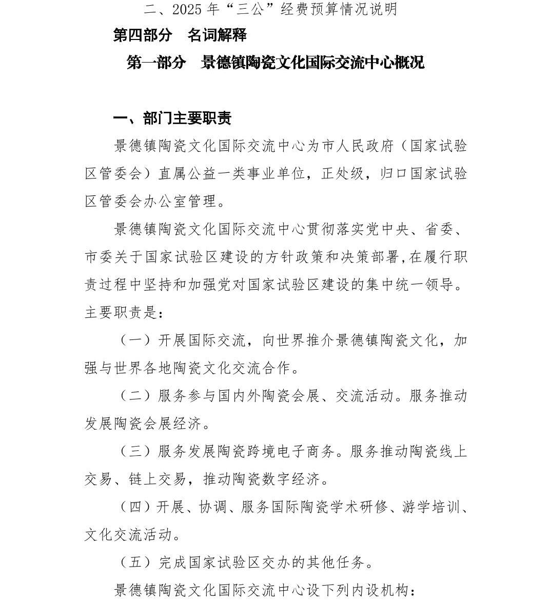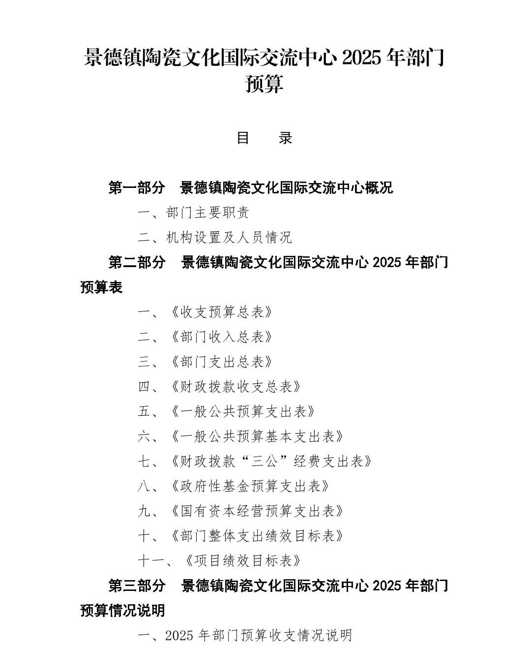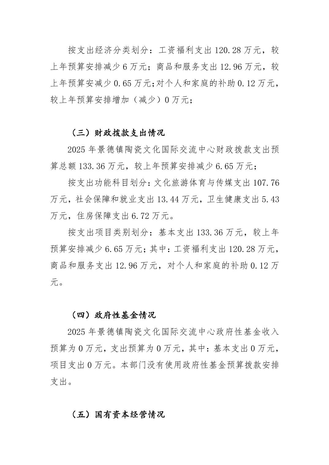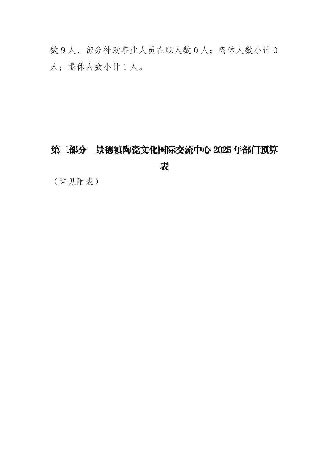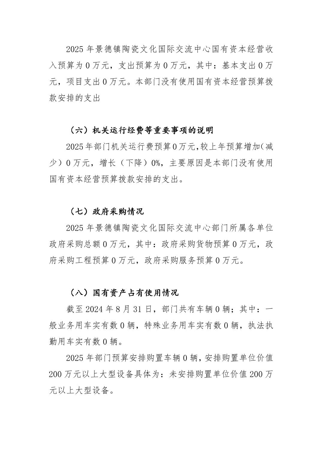 景德镇陶瓷文化国际交流中心2025年部门预算