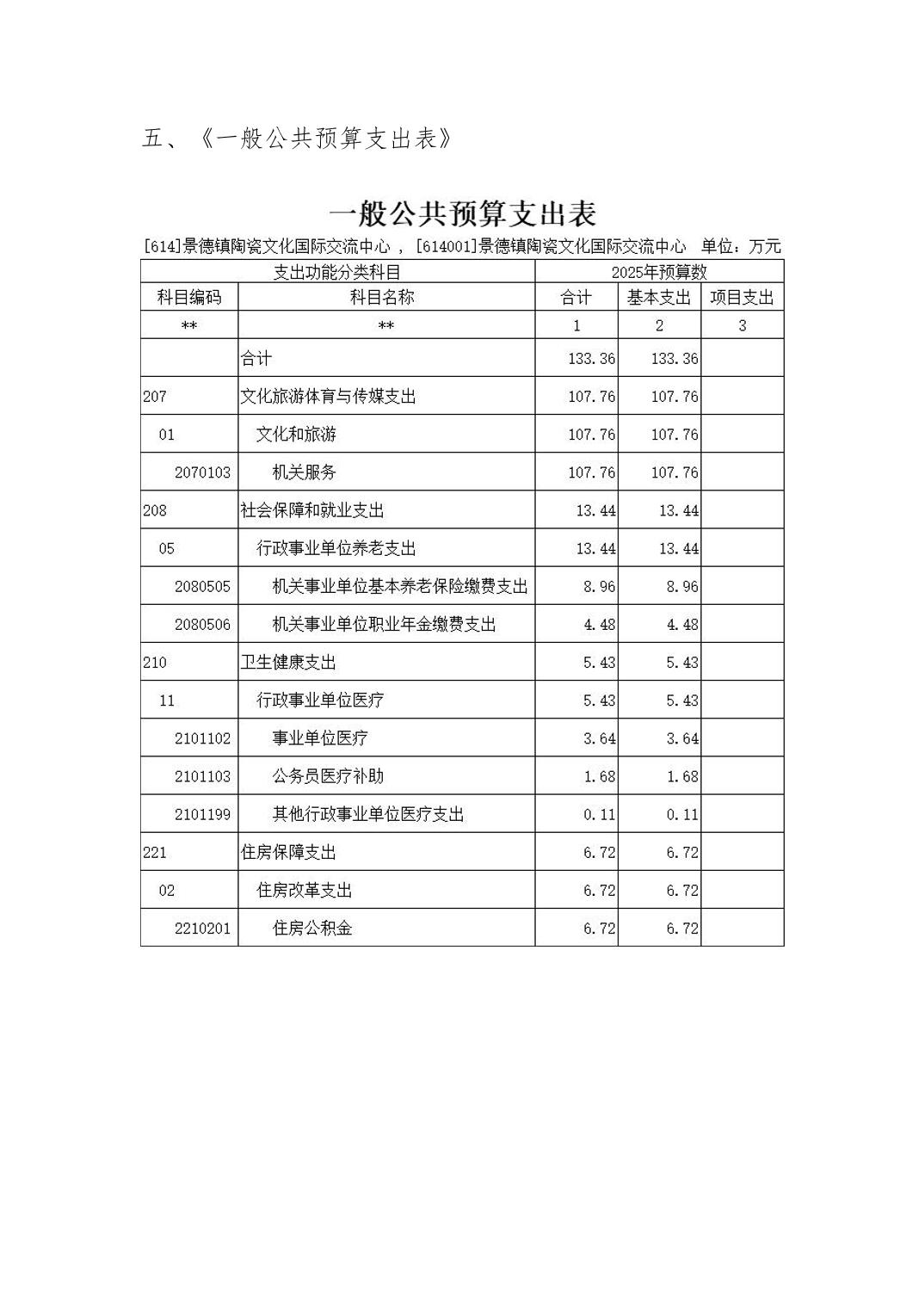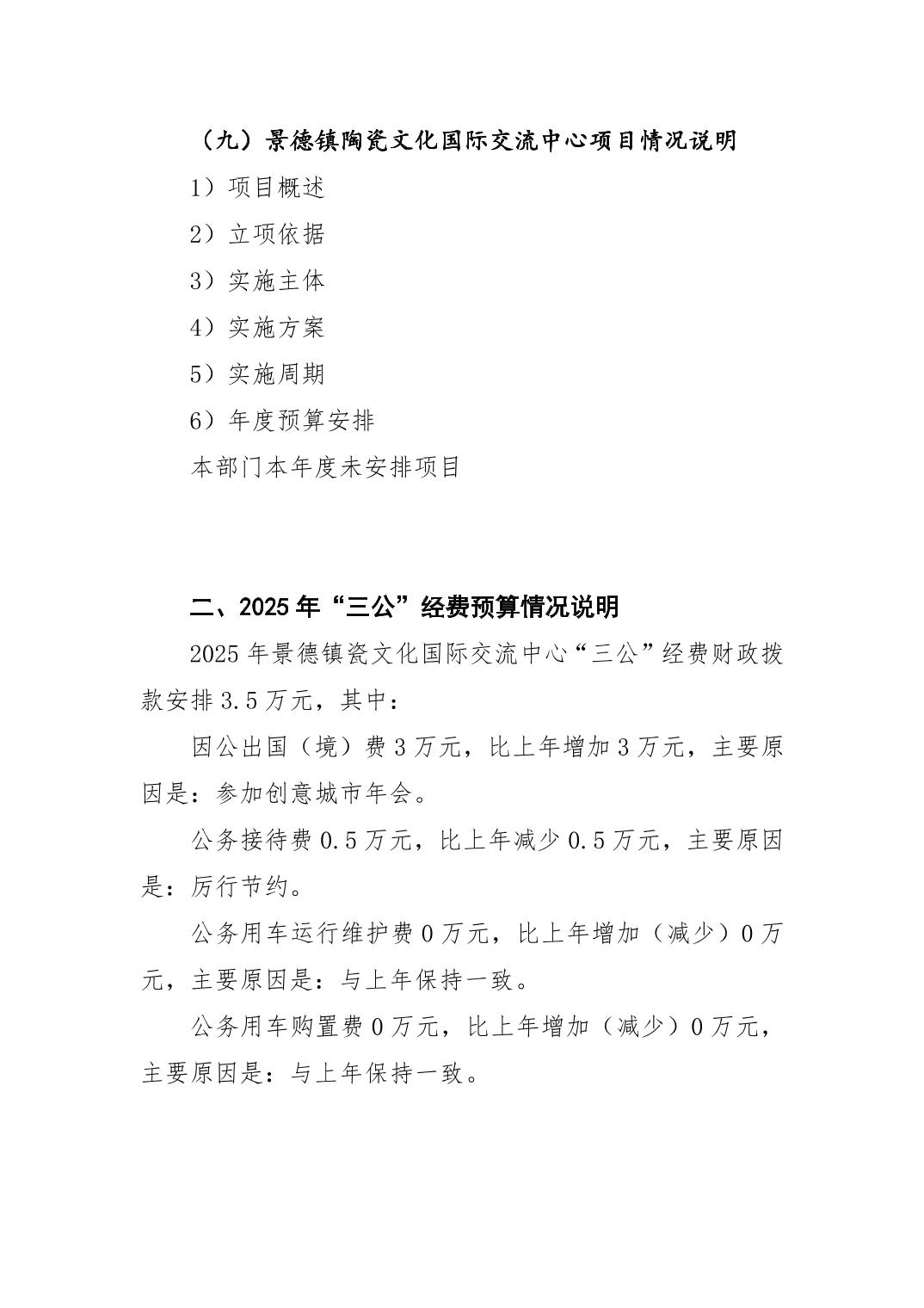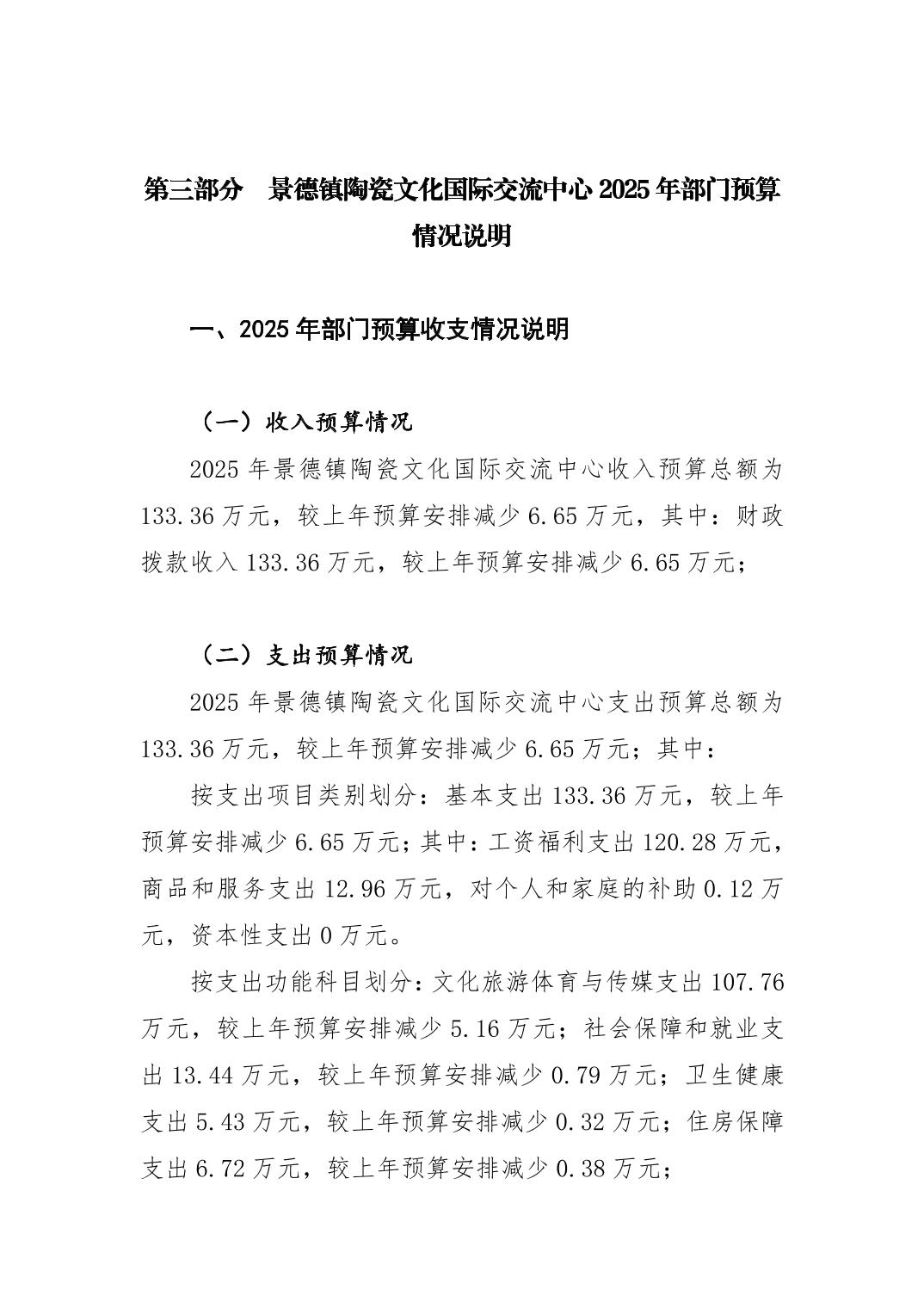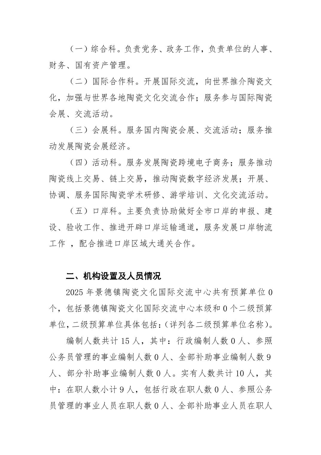 景德镇陶瓷文化国际交流中心2025年部门预算
