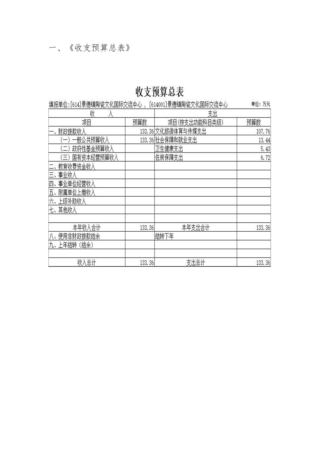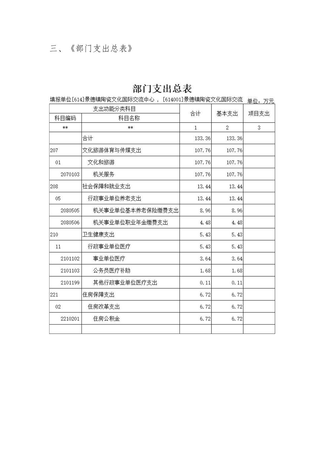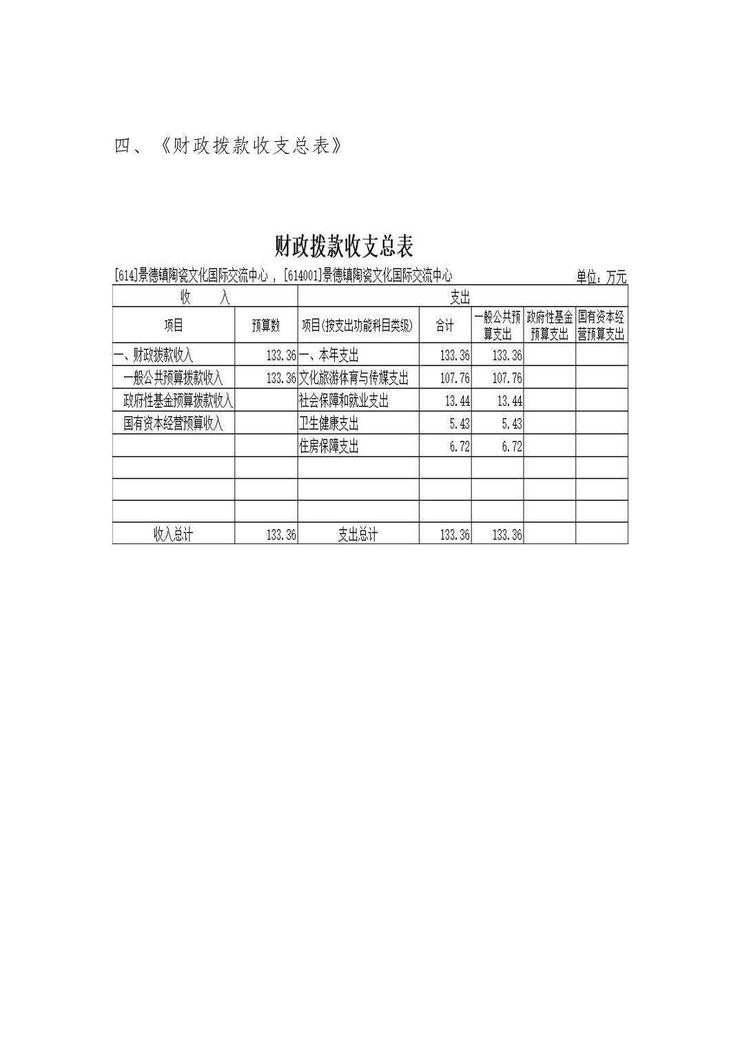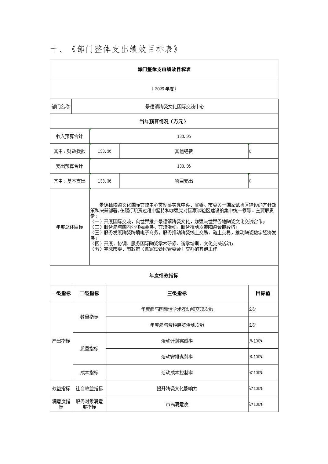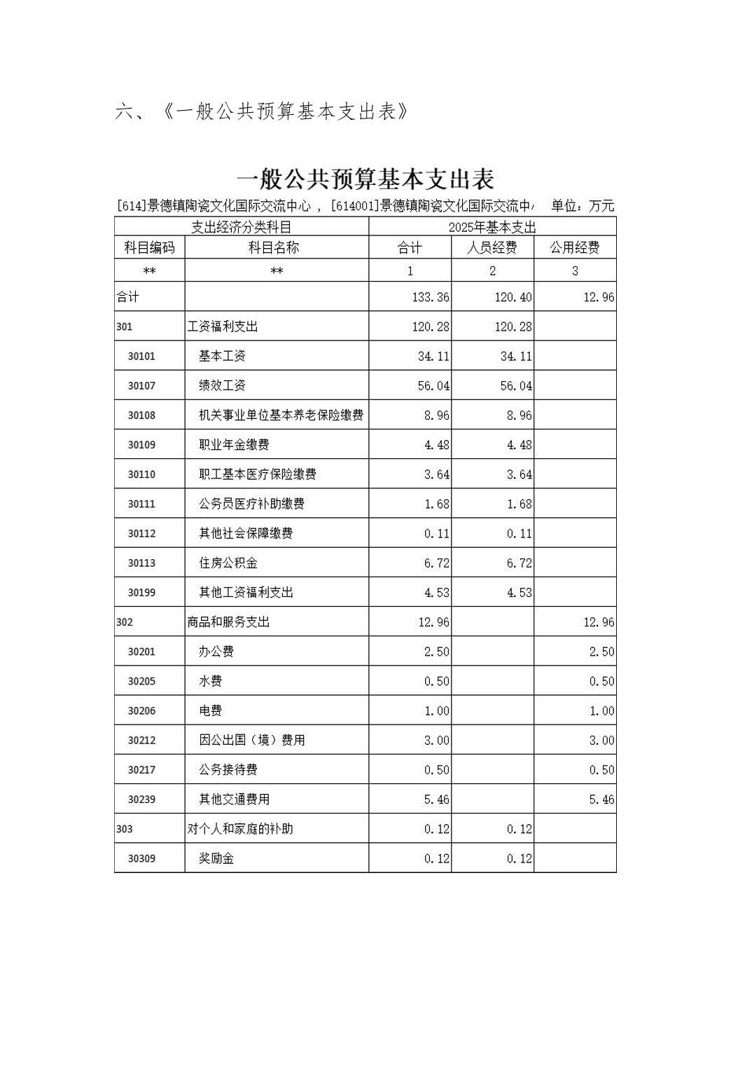 景德镇陶瓷文化国际交流中心2025年部门预算
