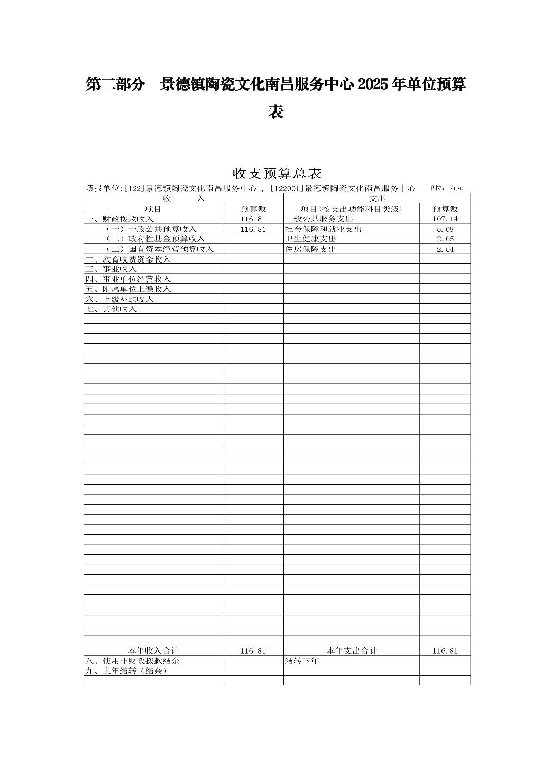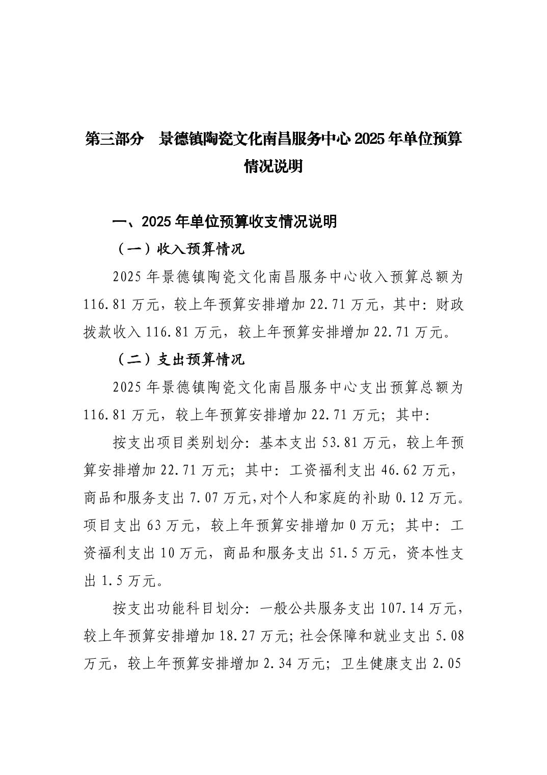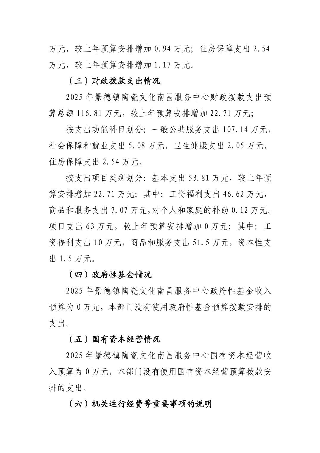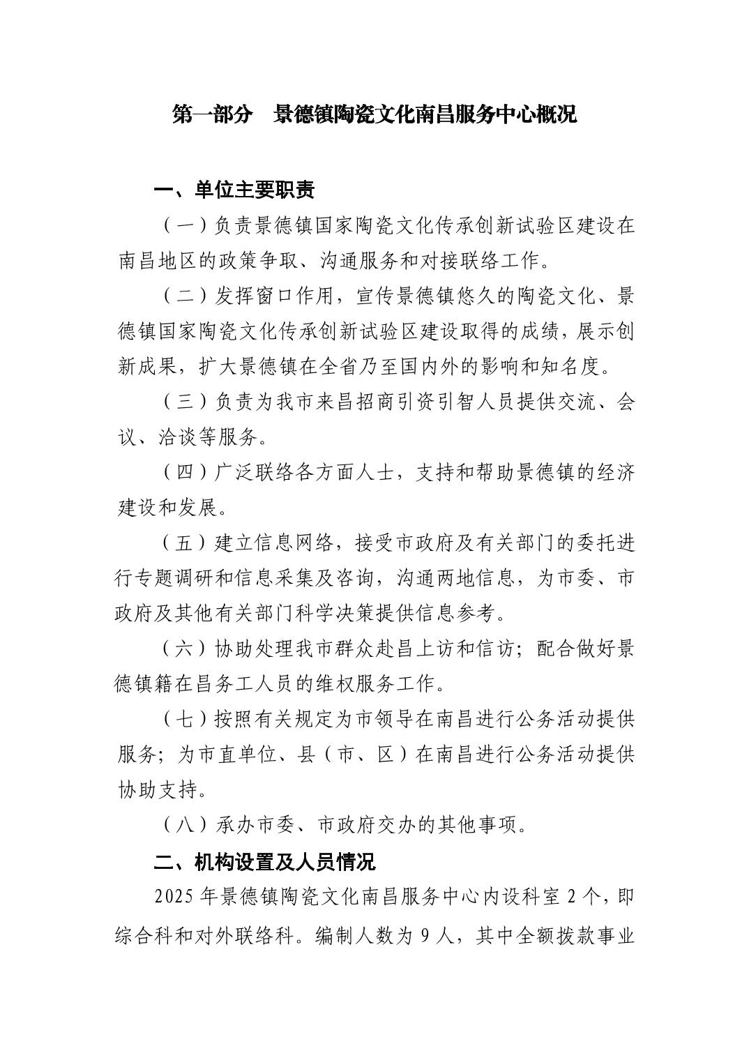景德镇陶瓷文化南昌服务中心2025年部门预算