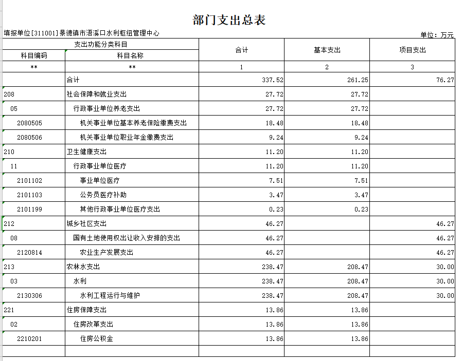 2025年景德镇市浯溪口水利枢纽管理中心支出预算总额为337.52万元,较上年预算安排增加40.01万元;其中: