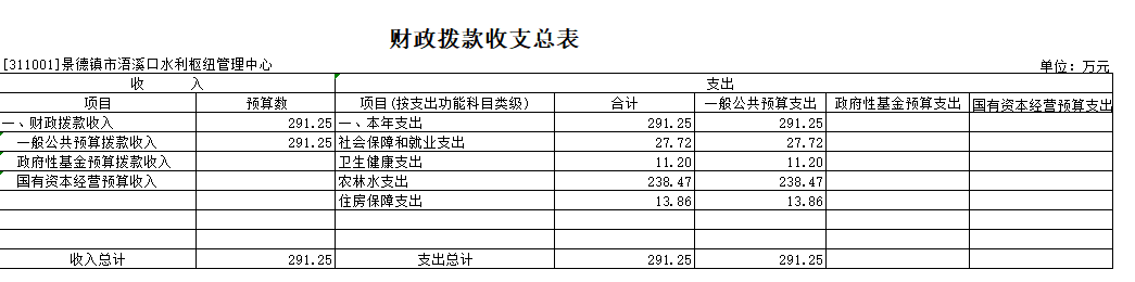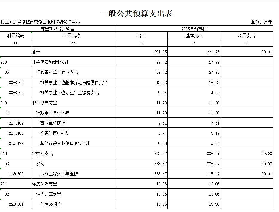 第二部分 景德镇市浯溪口水利枢纽管理中心2025年部门预算表