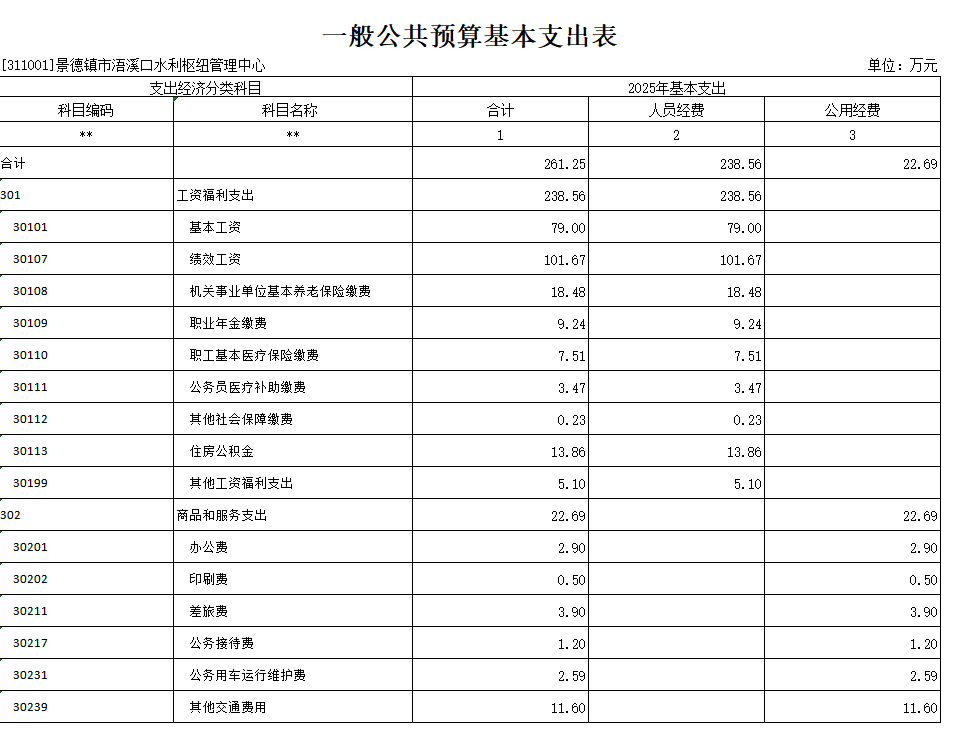 第二部分景德镇市浯溪口水利枢纽管理中心2025年部门预算表