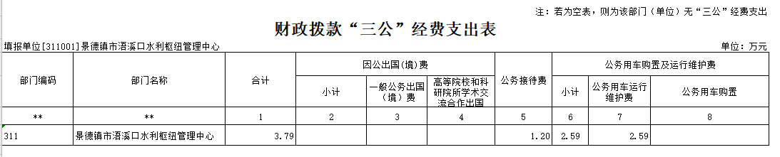 2025年景德镇市浯溪口水利枢纽管理中心“三公”经费财政拨款安排3.79万元,其中: