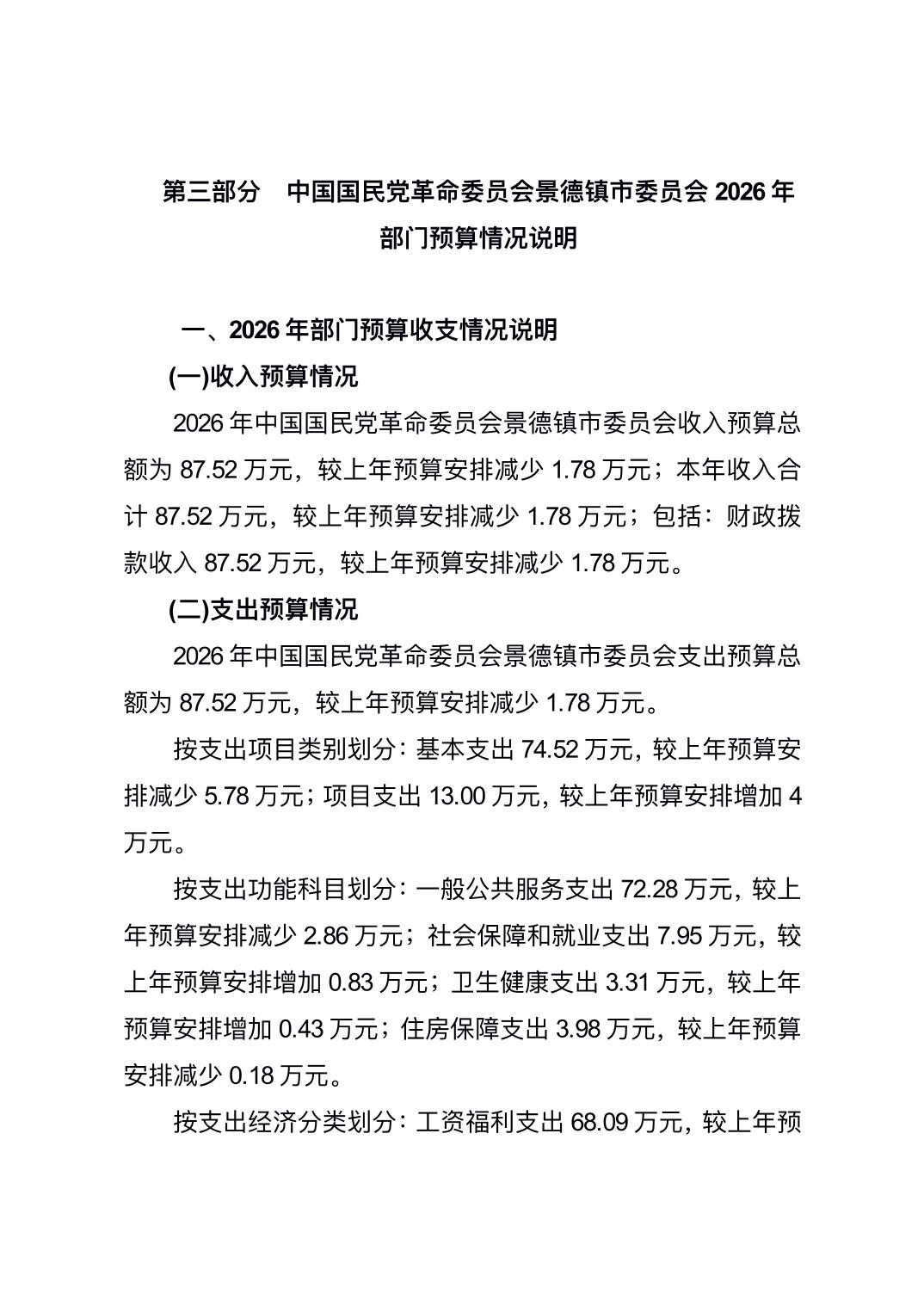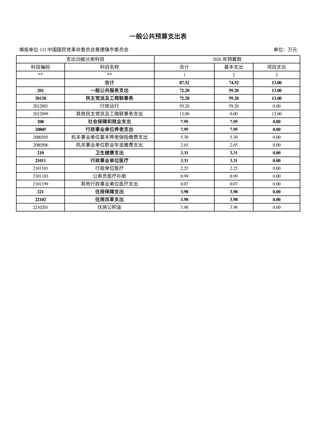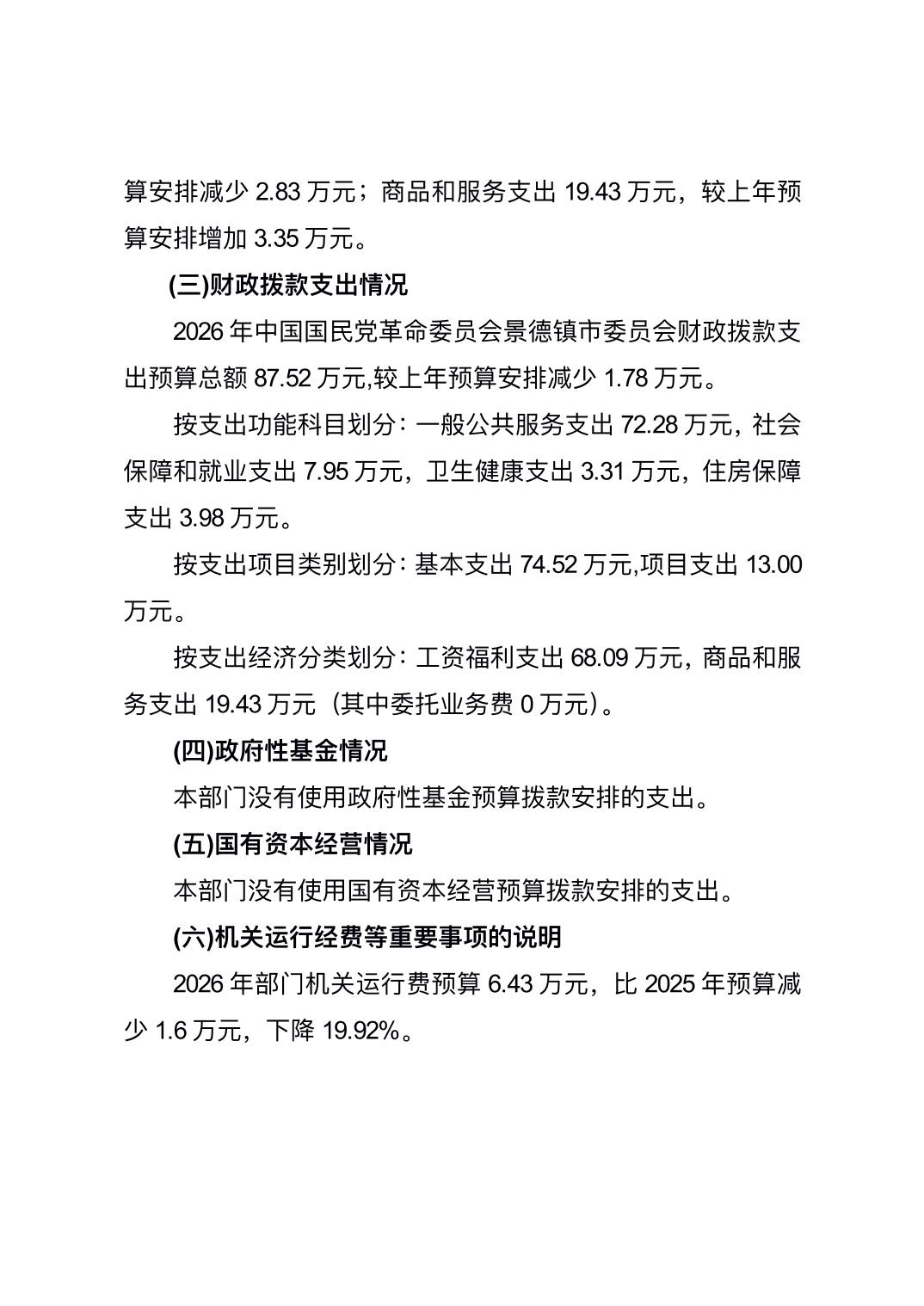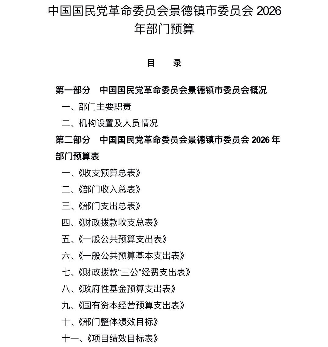 中国国民党革命委员会景德镇市委员会2026年部门预算