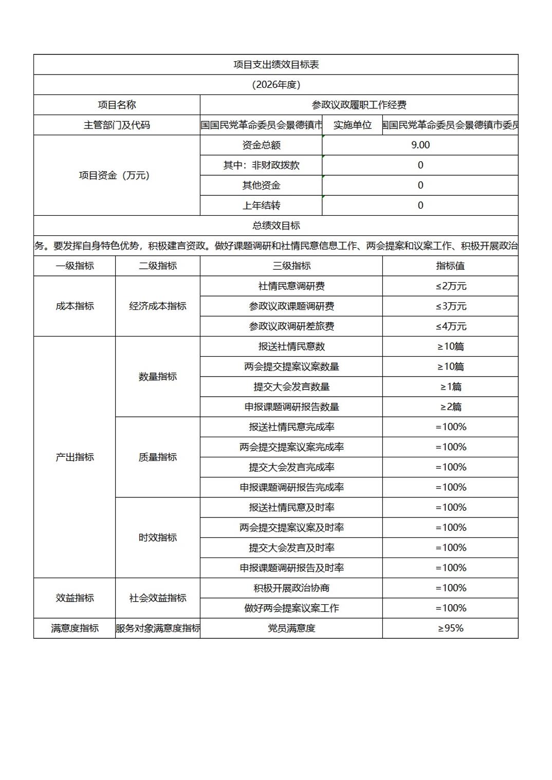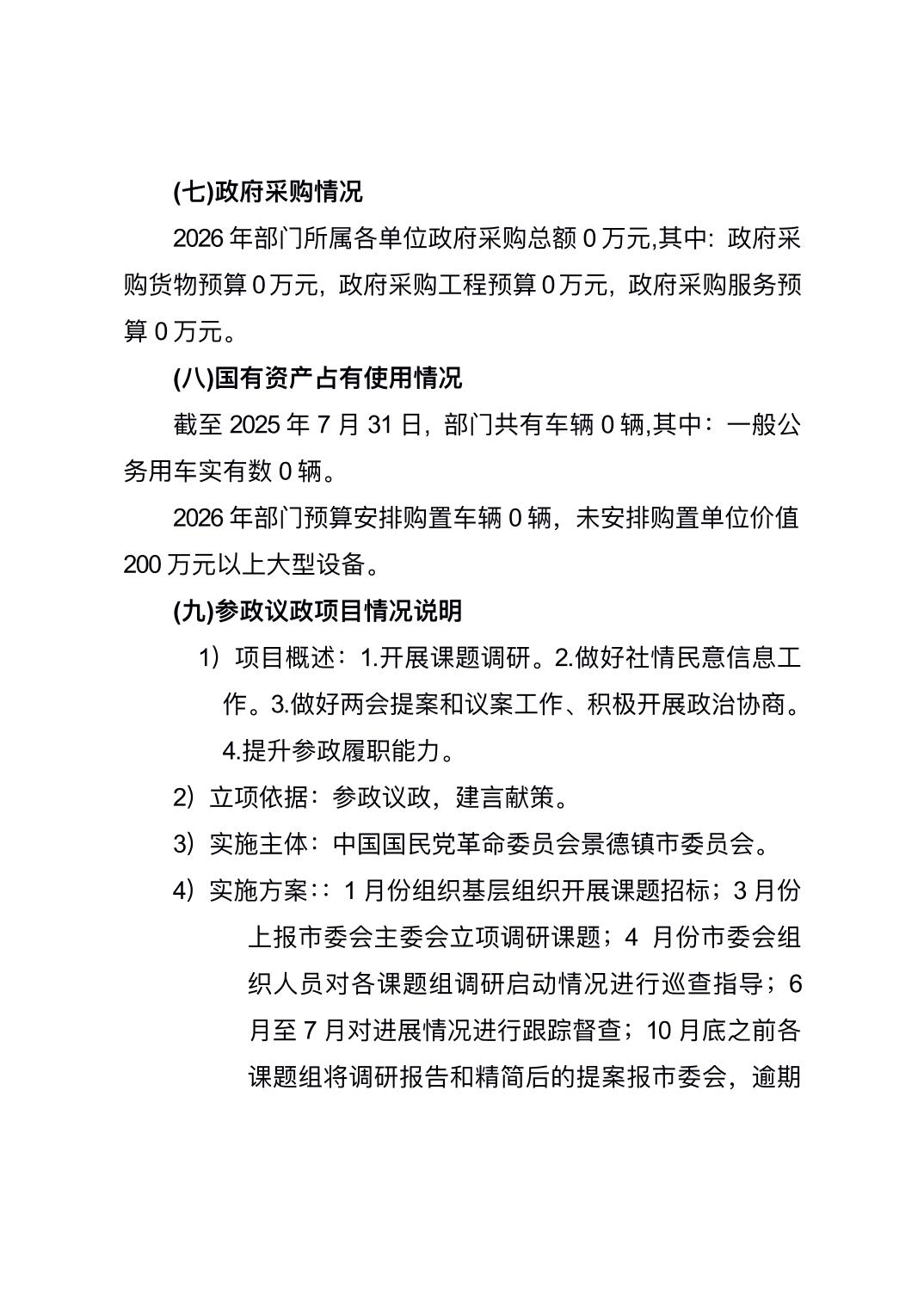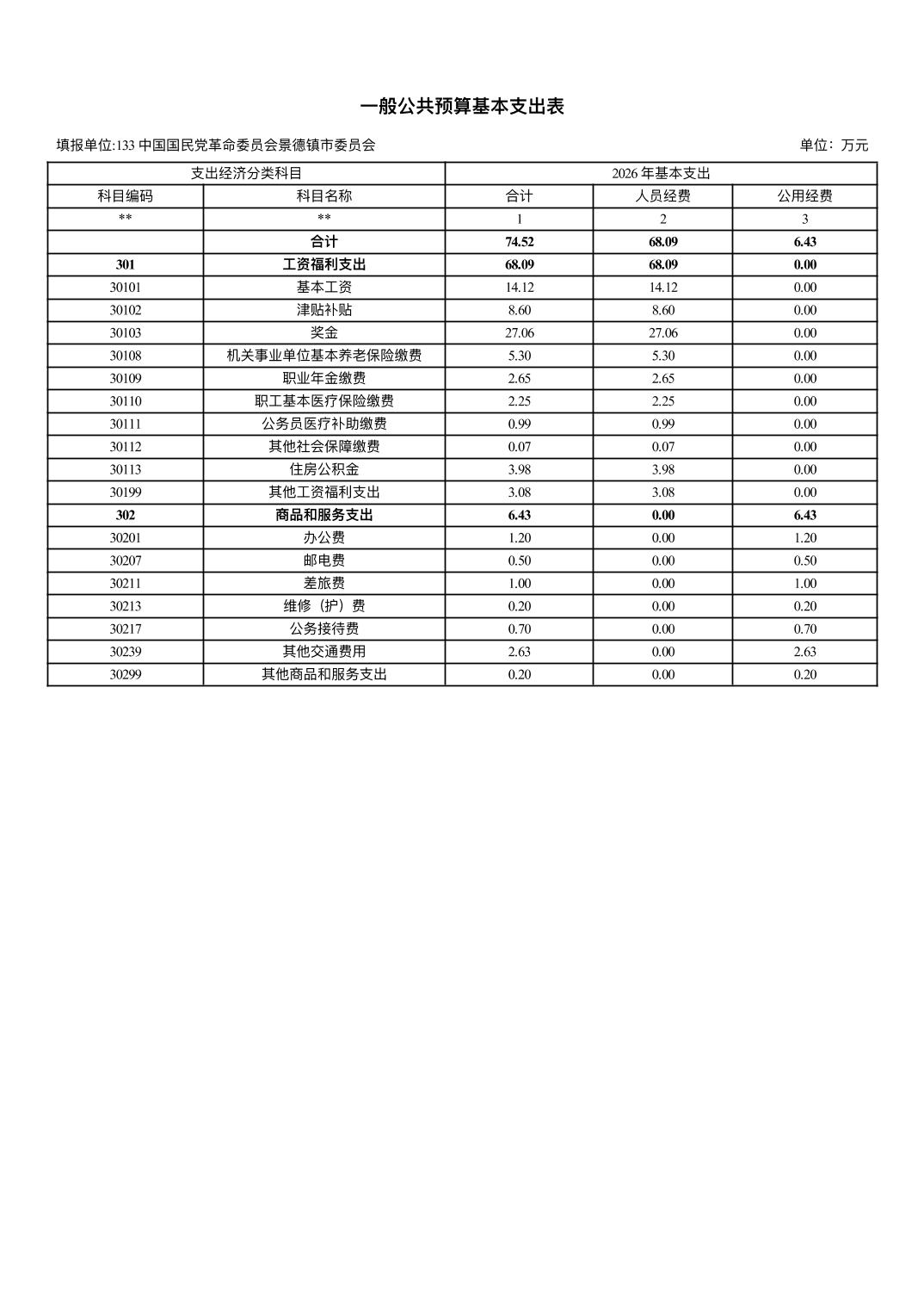 中国国民党革命委员会景德镇市委员会2026年部门预算