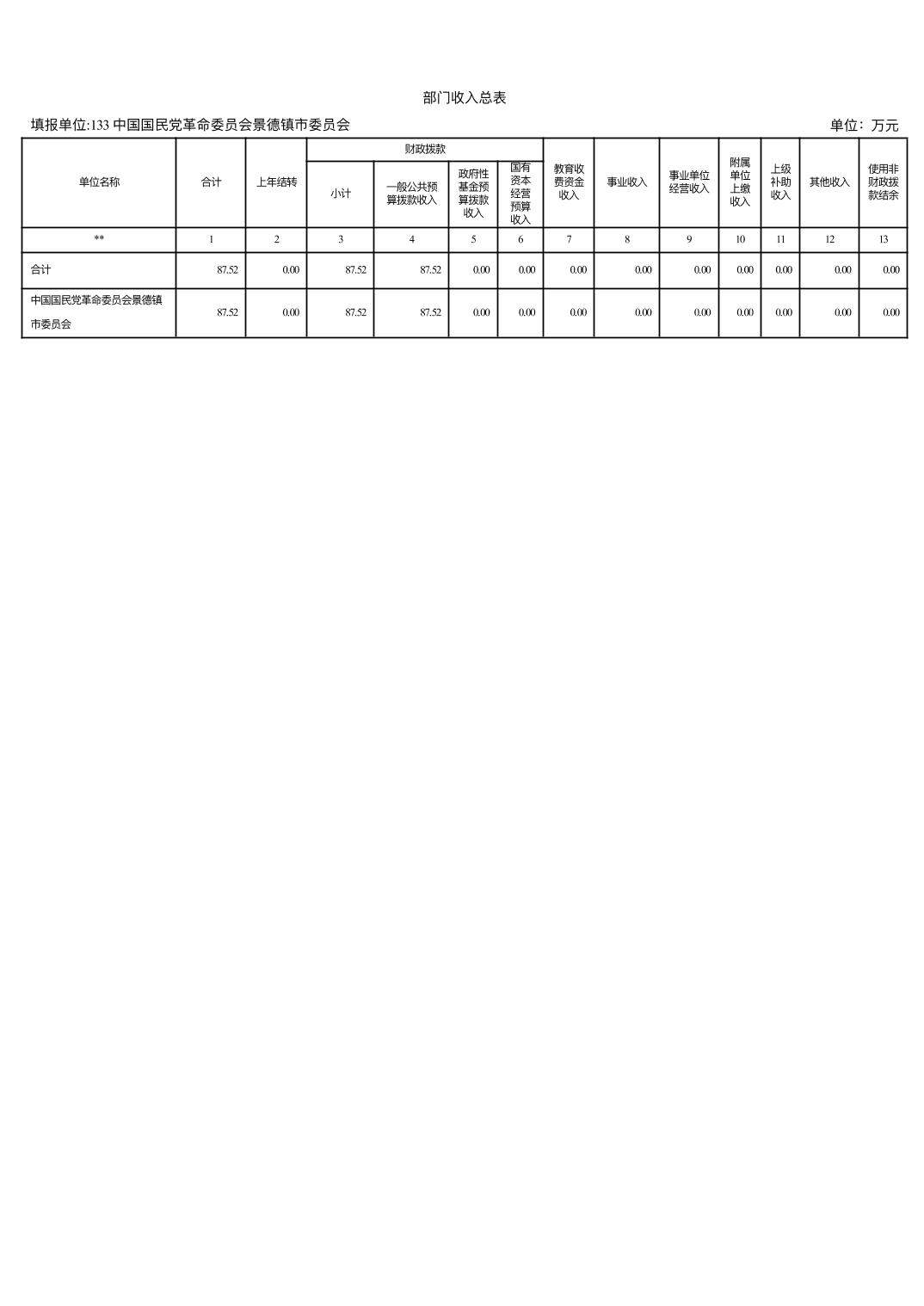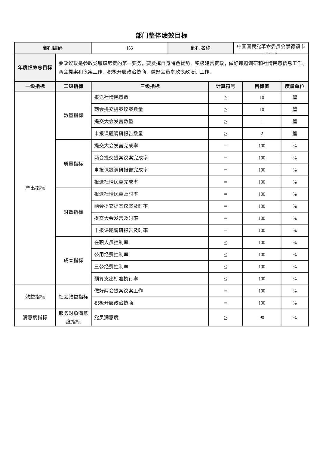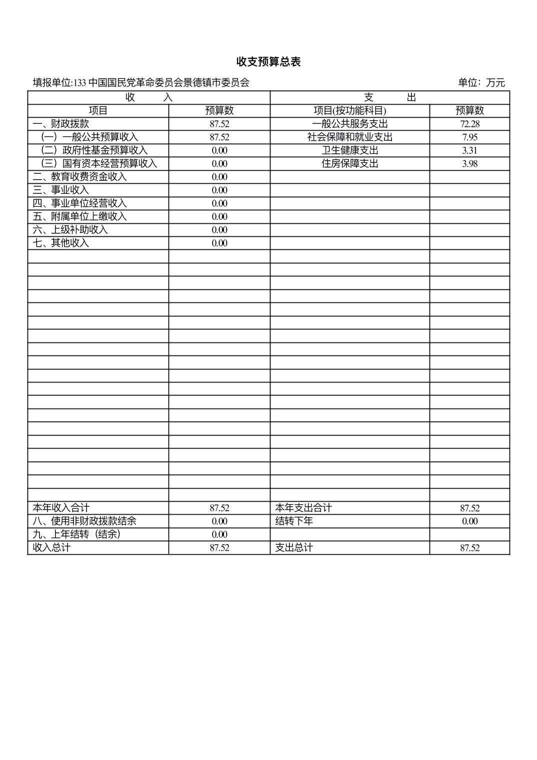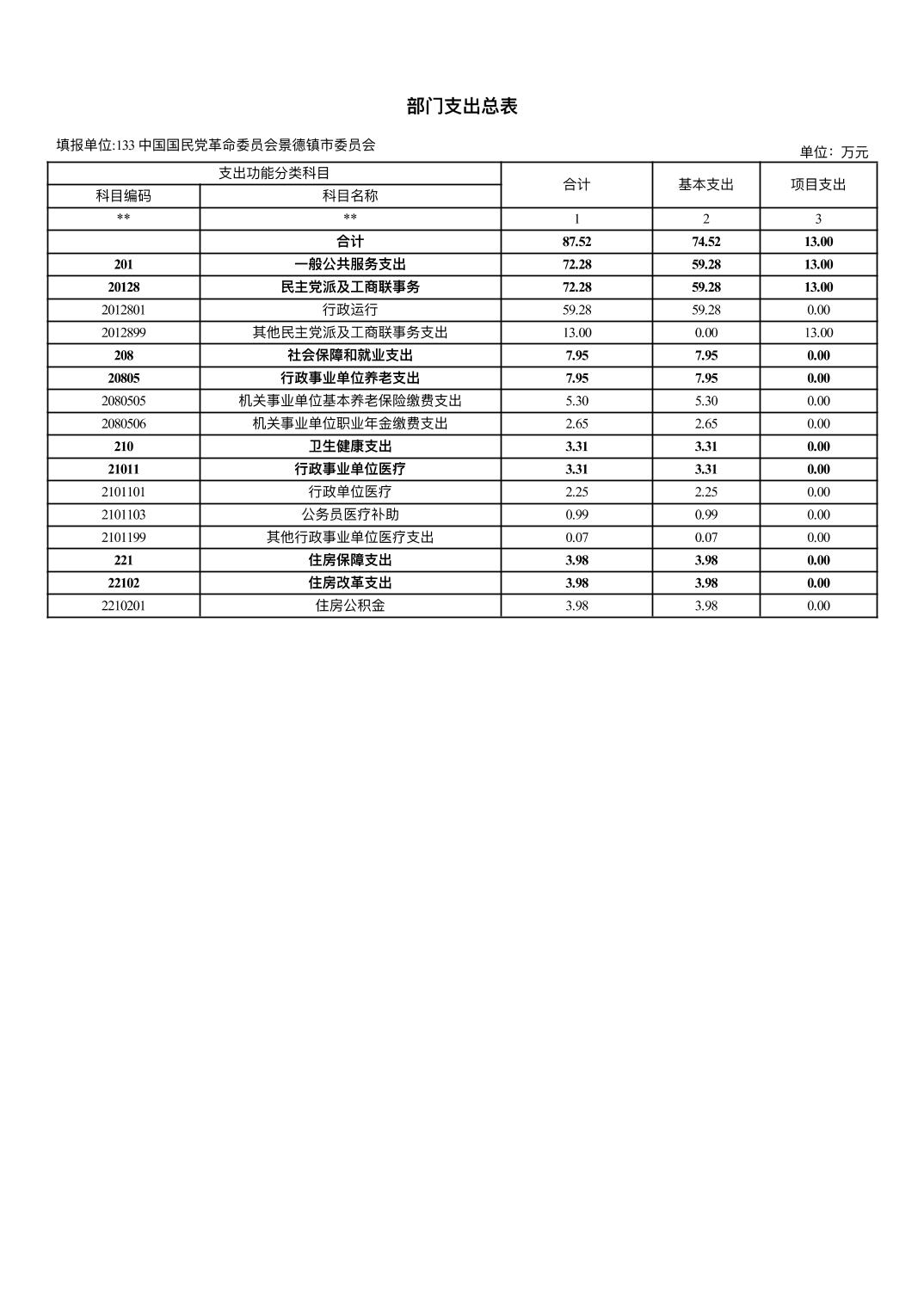 中国国民党革命委员会景德镇市委员会2026年部门预算