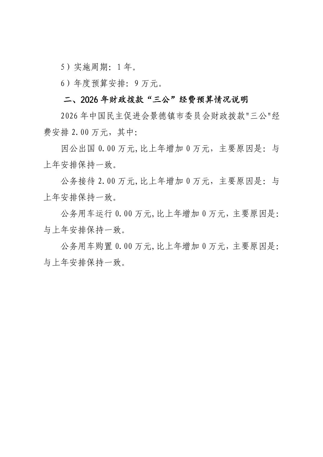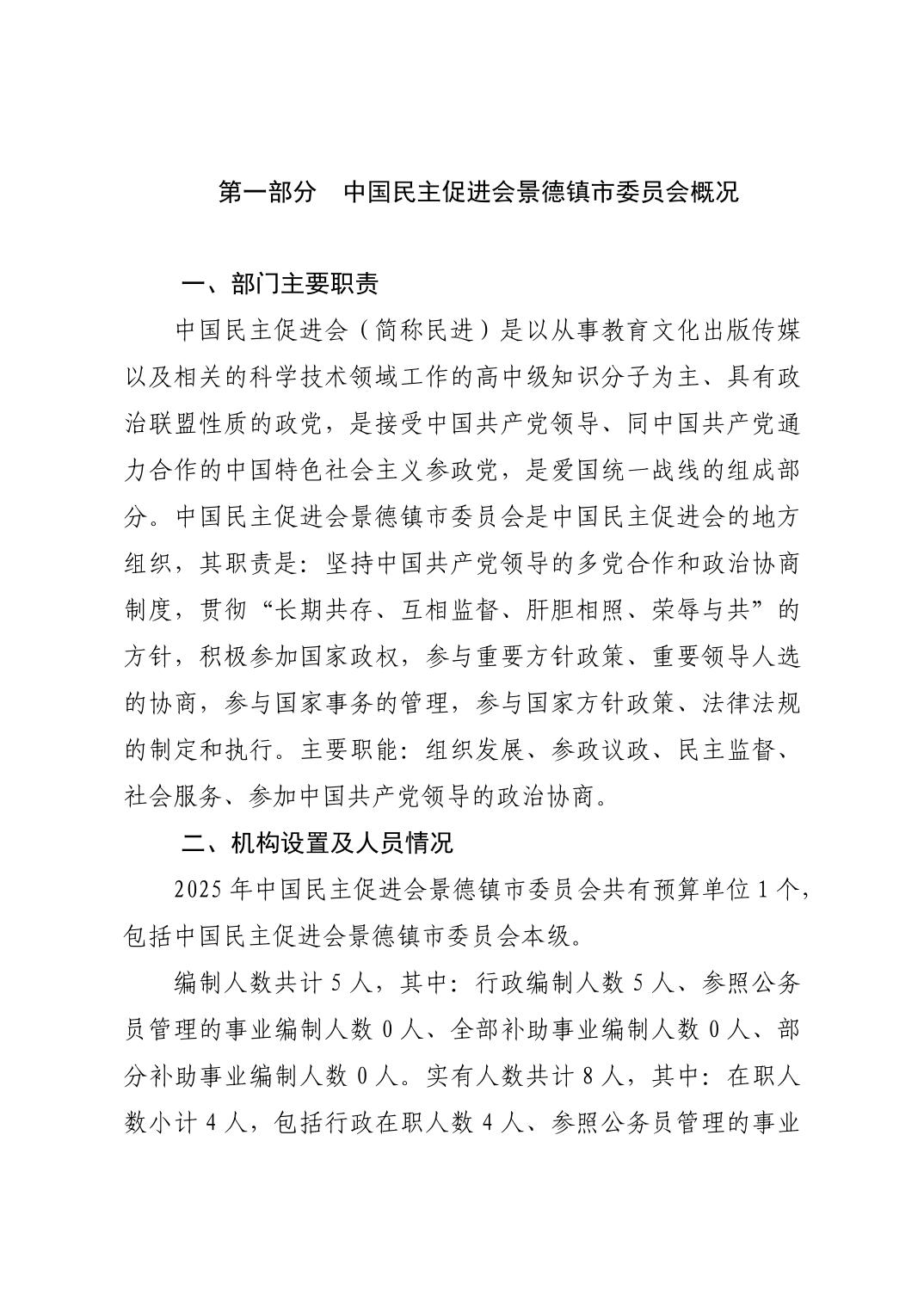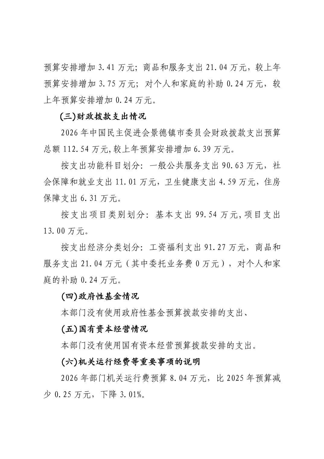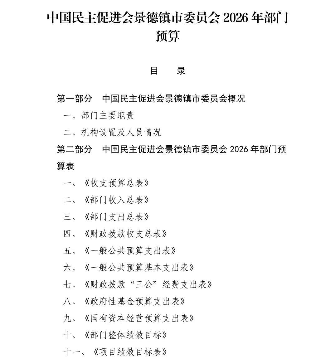 中国民主促进会景德镇市委员会2026年部门预算