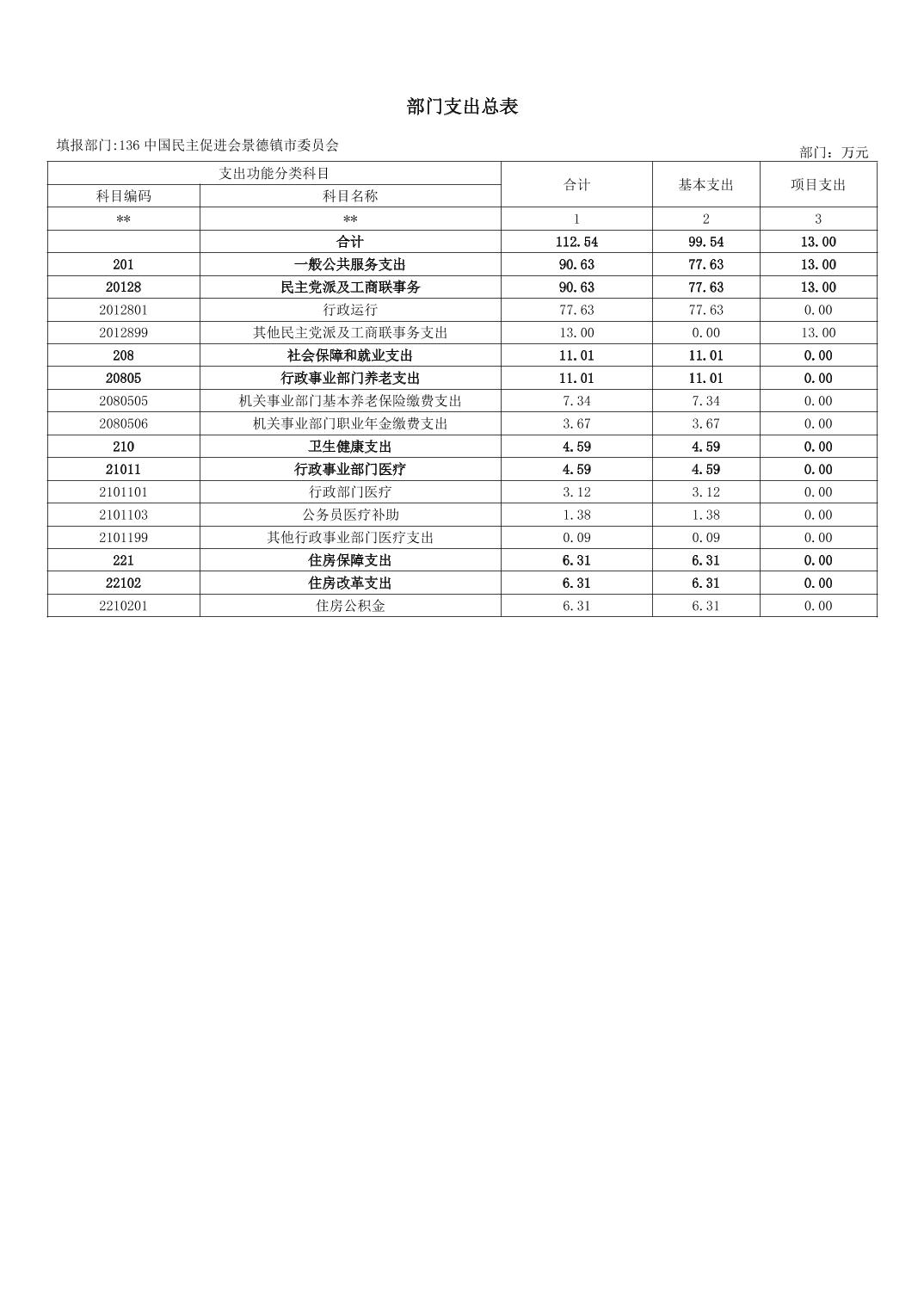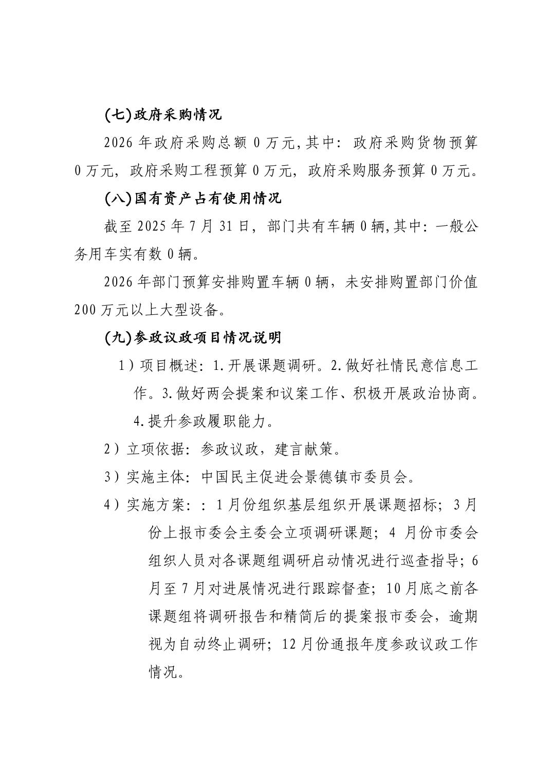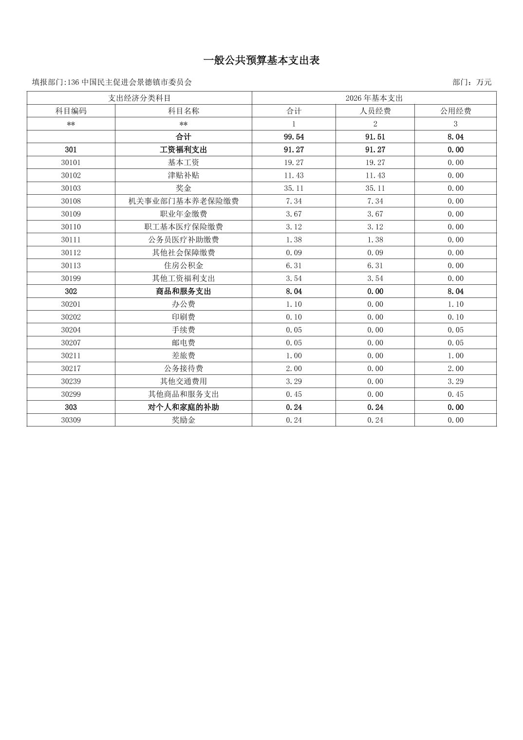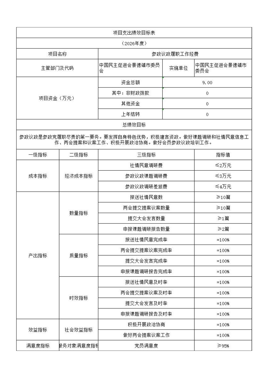 中国民主促进会景德镇市委员会2026年部门预算