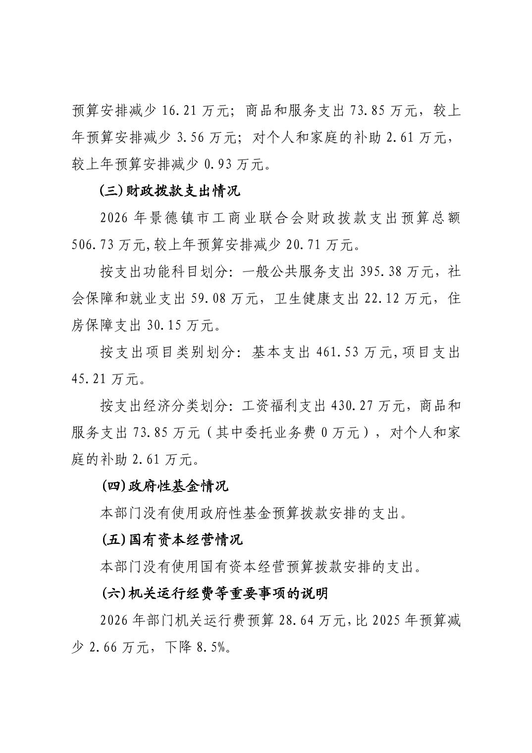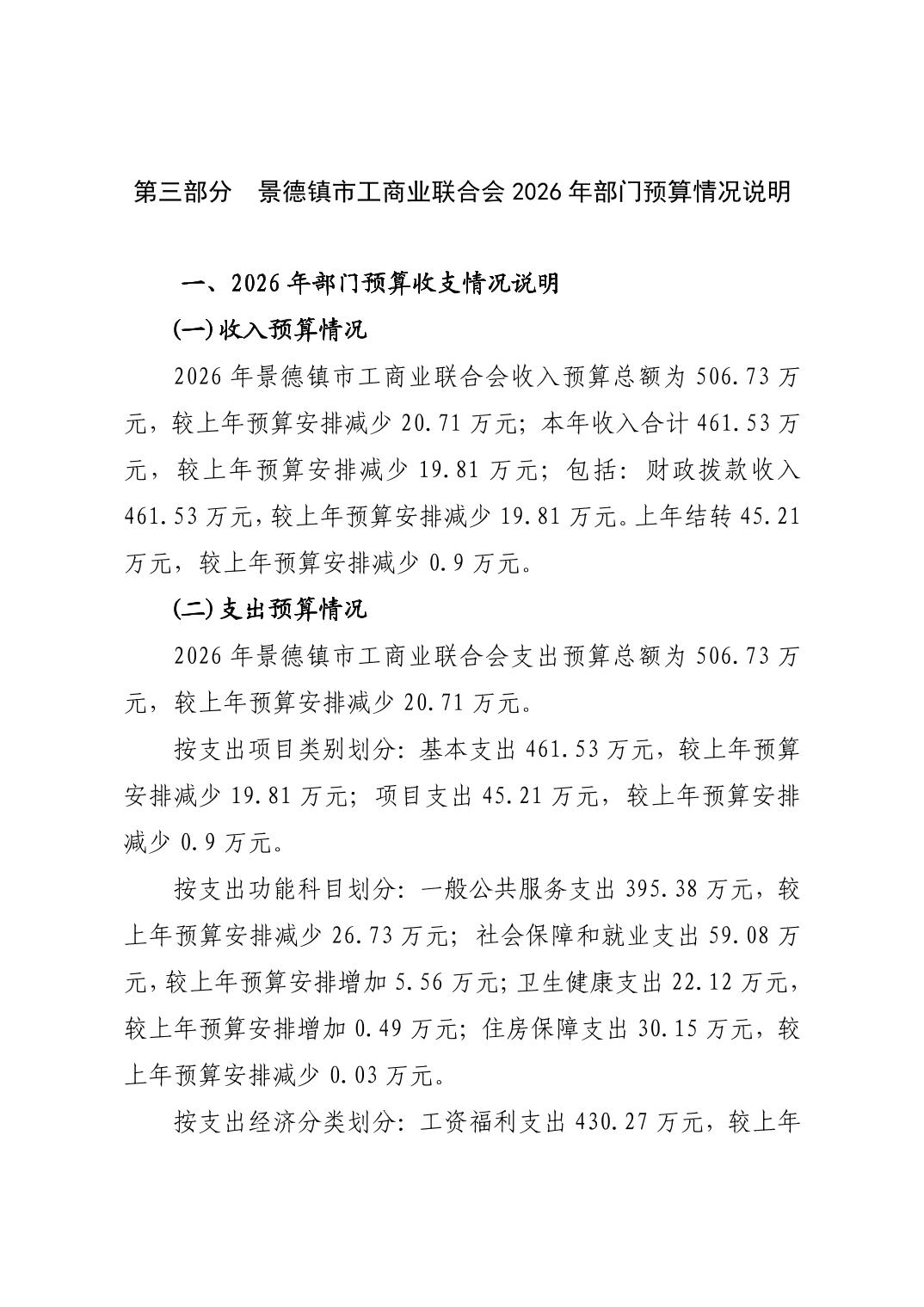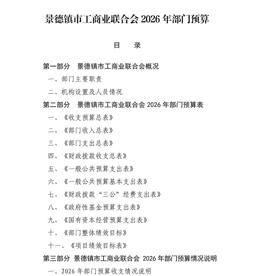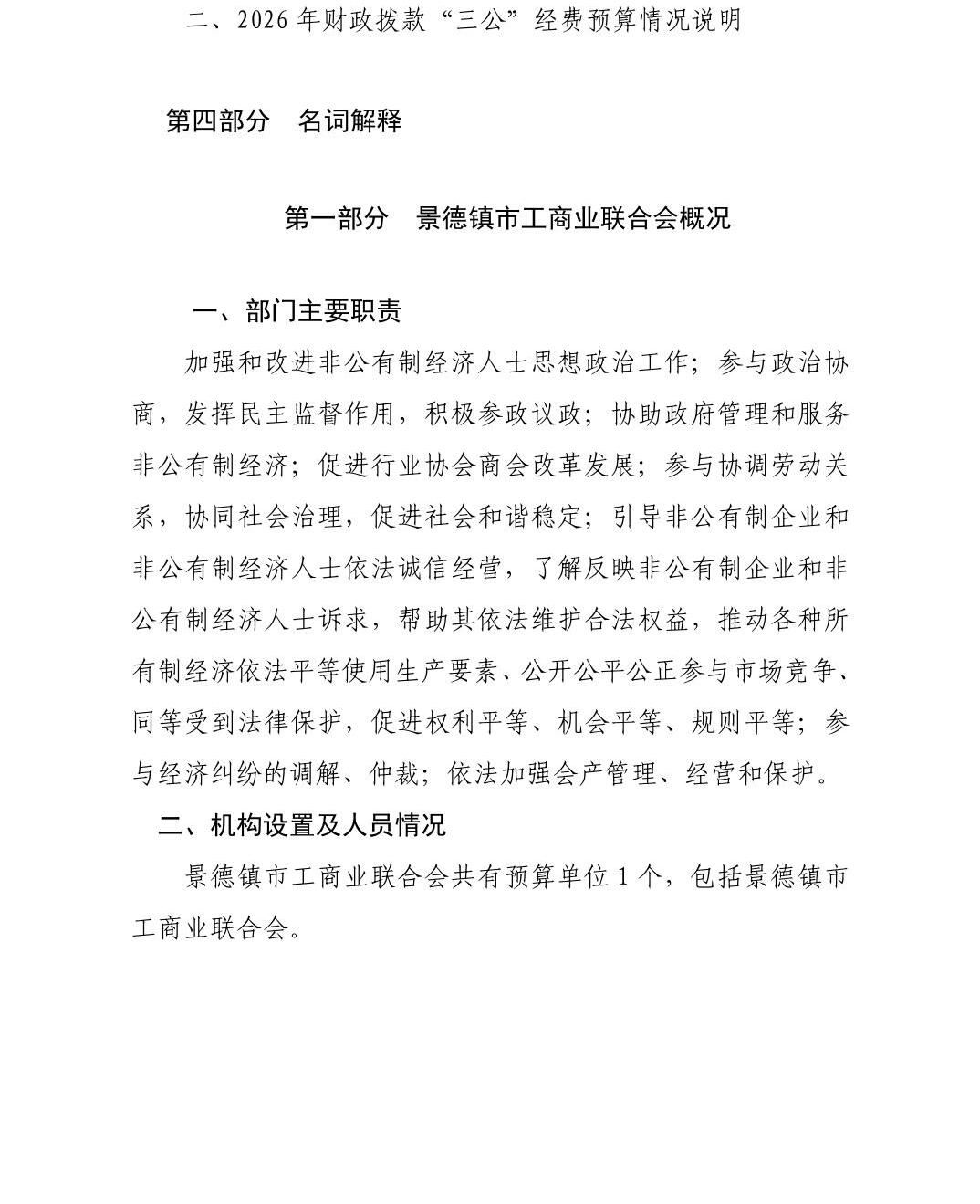 景德镇市工商业联合会2026年部门预算