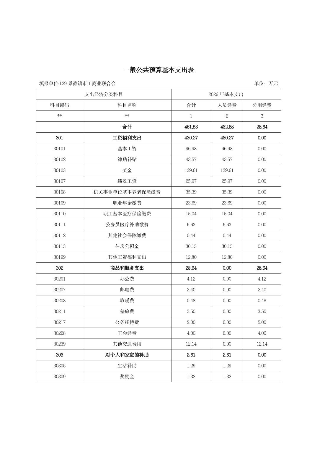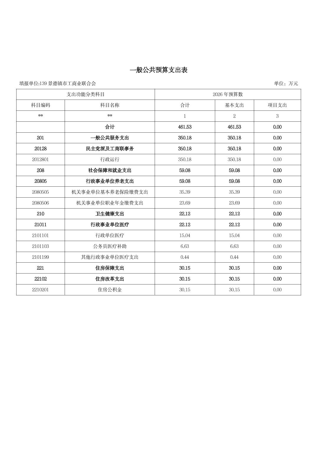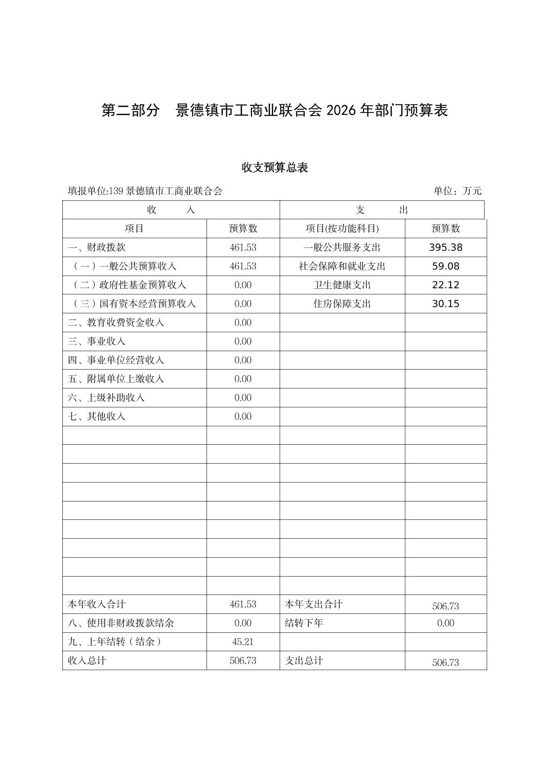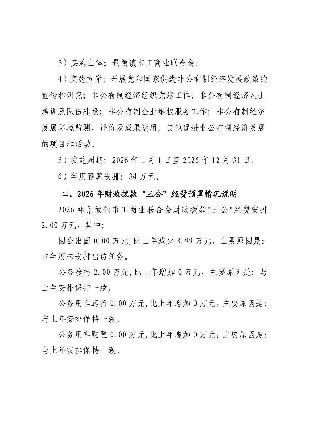 景德镇市工商业联合会2026年部门预算