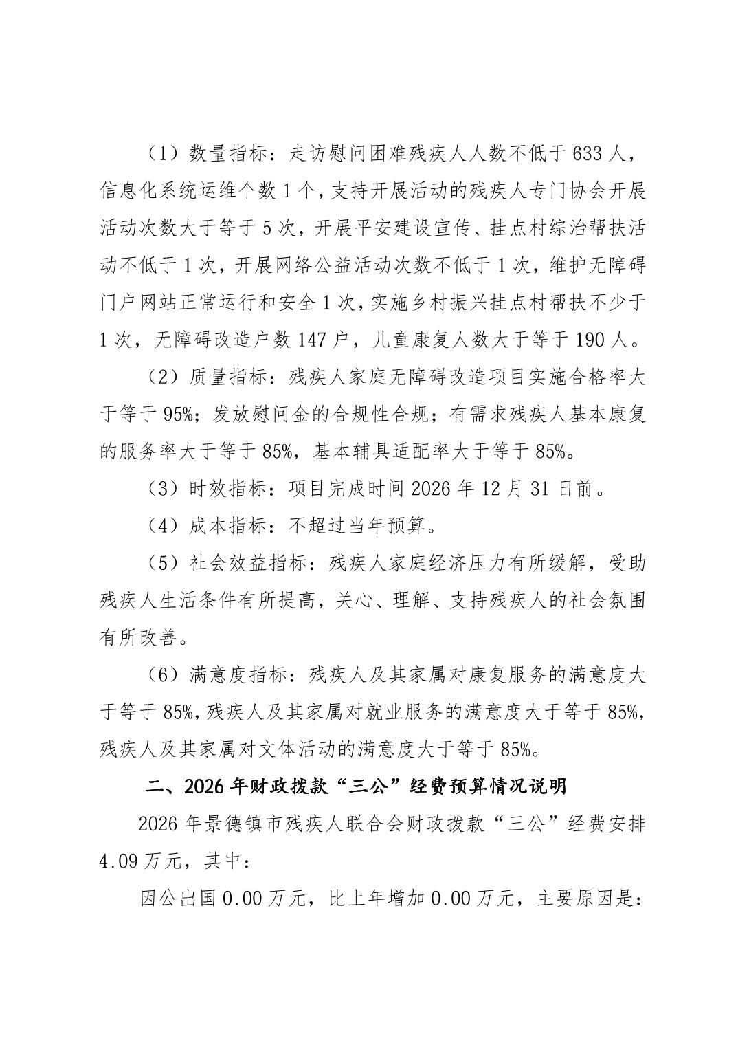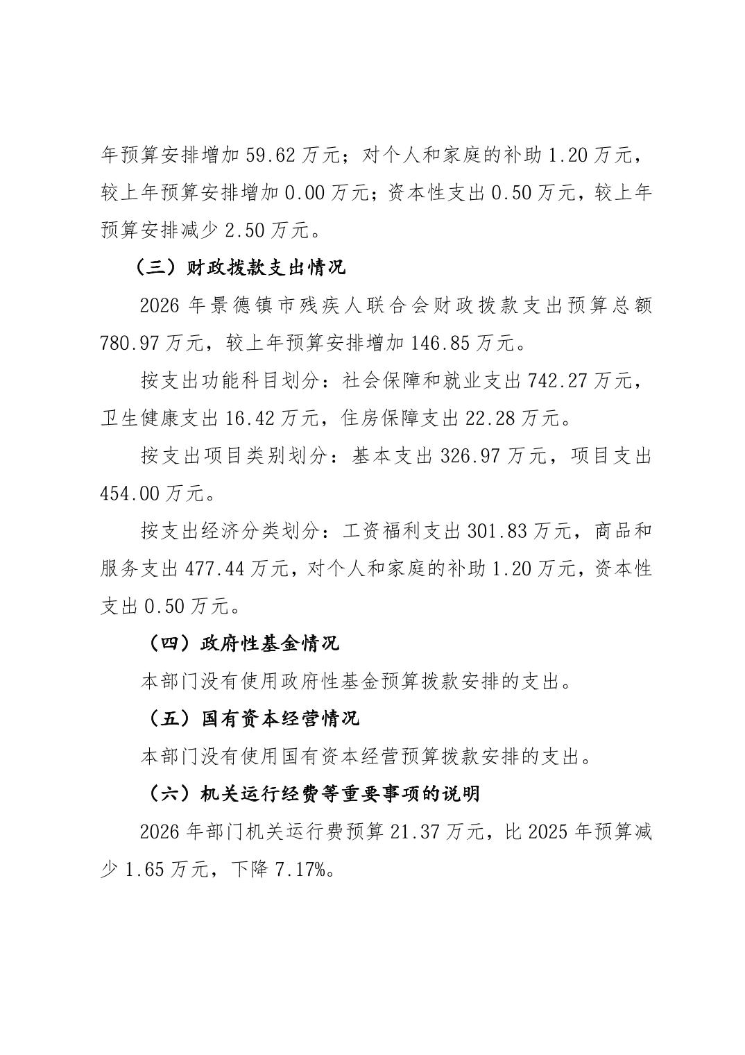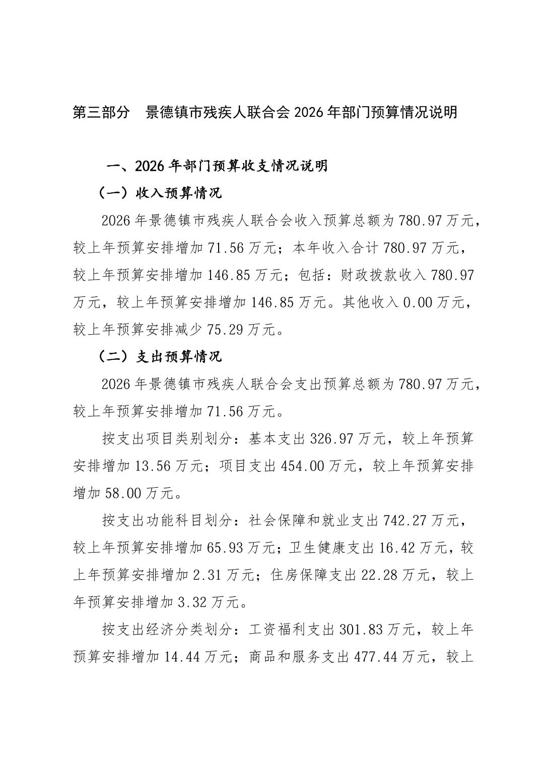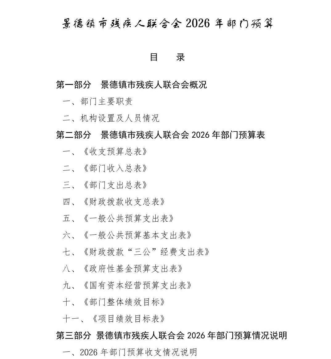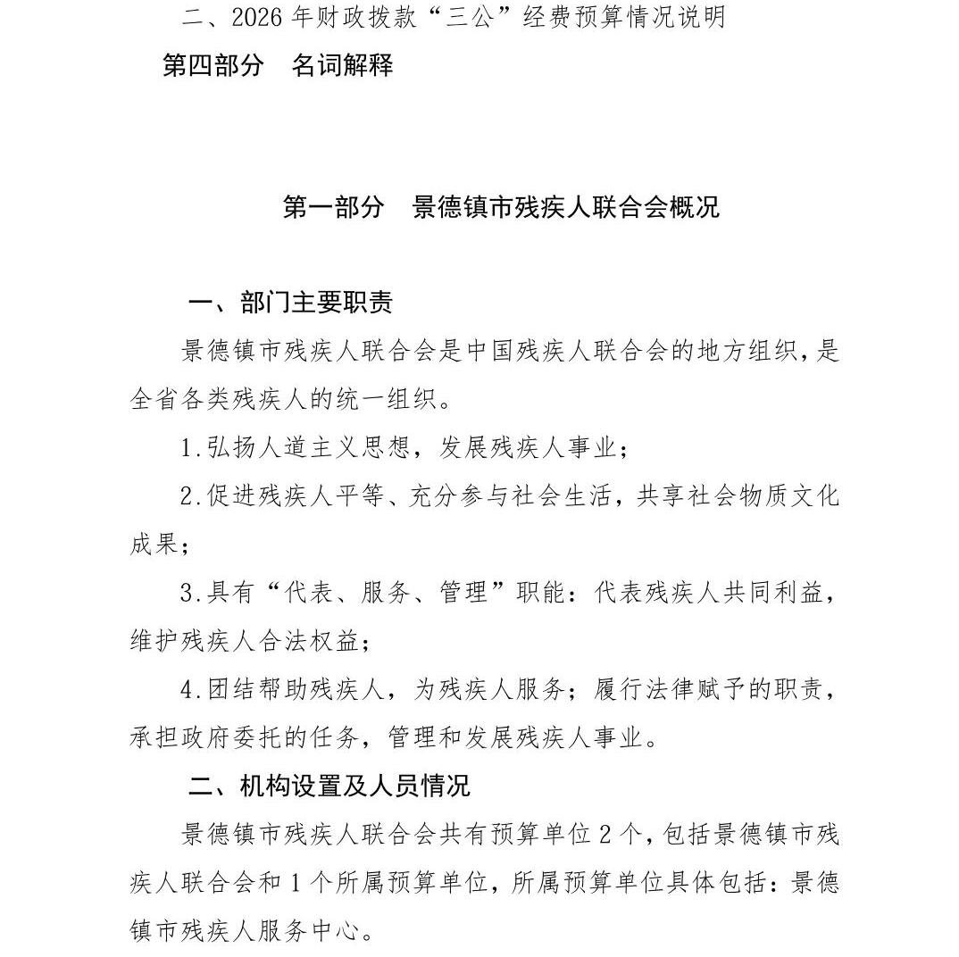 景德镇市残疾人联合会2026年部门预算