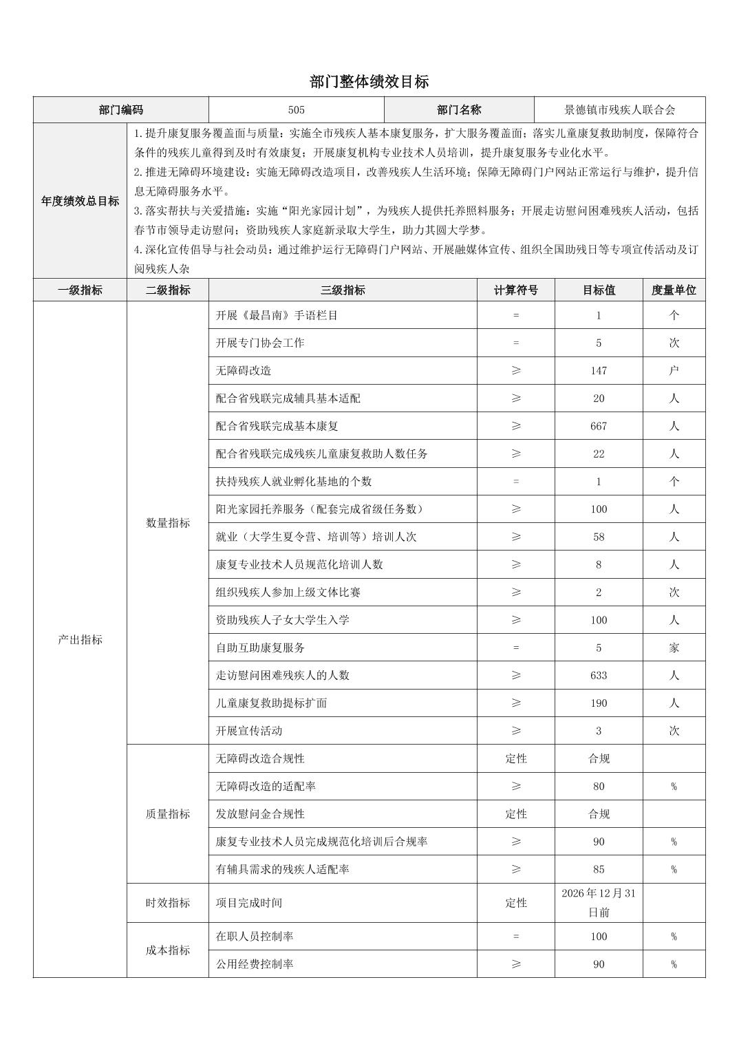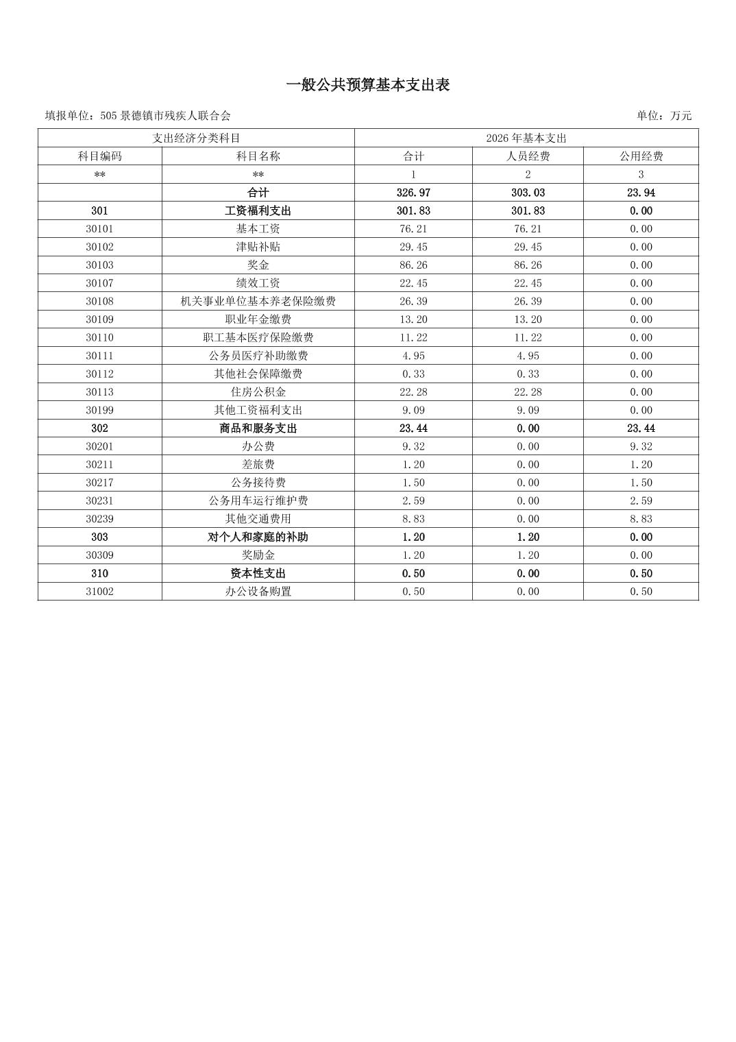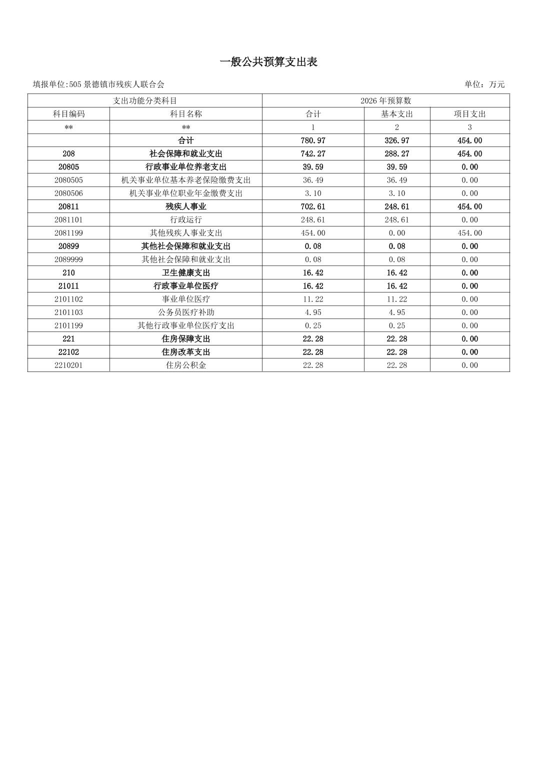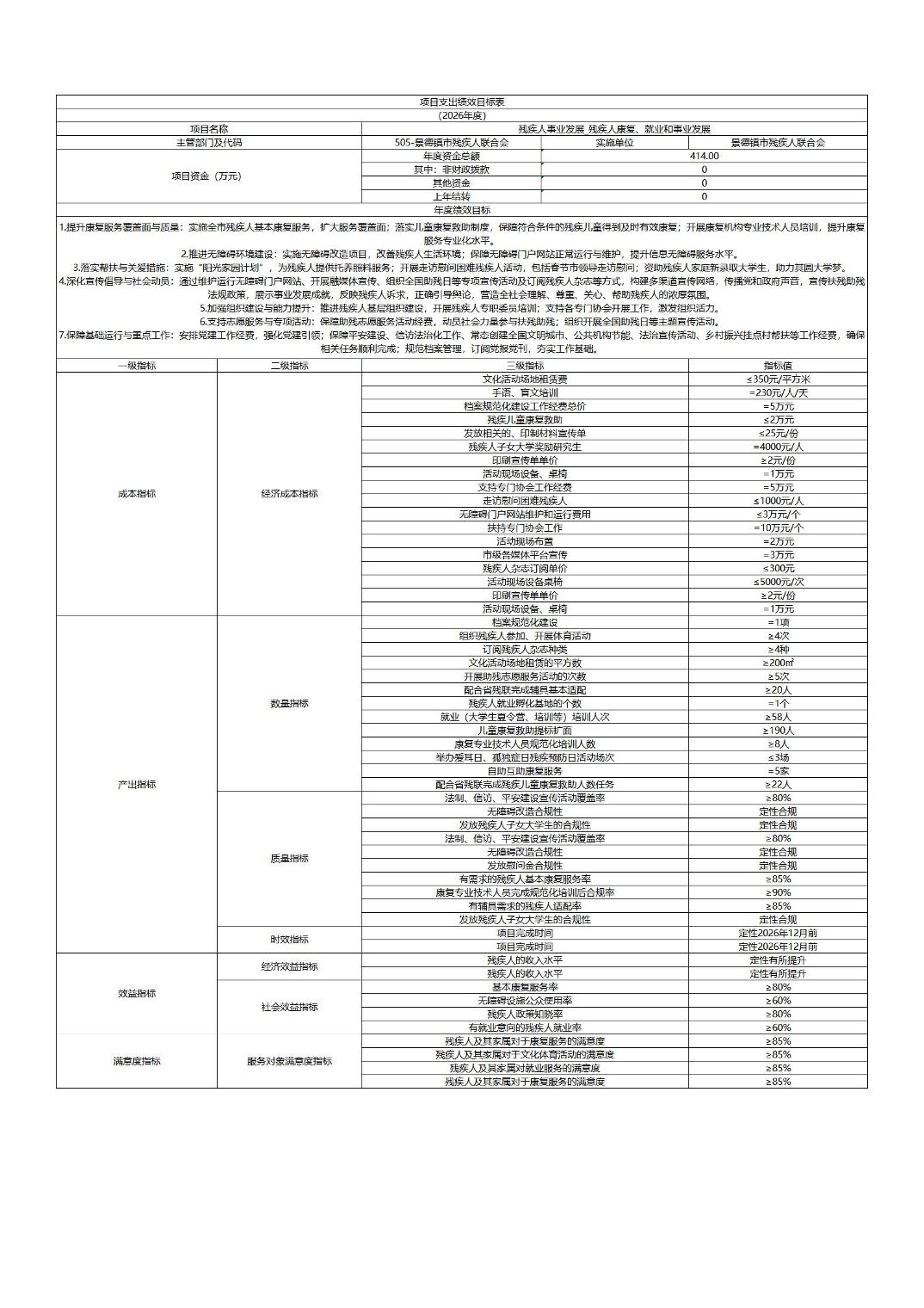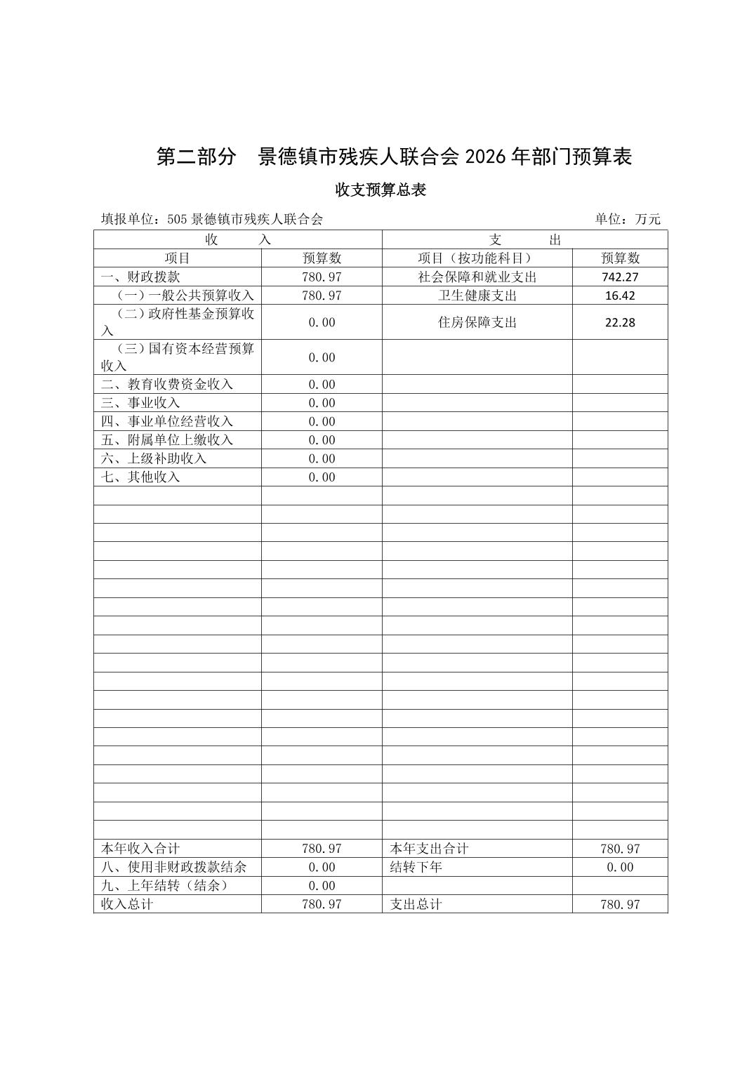 景德镇市残疾人联合会2026年部门预算