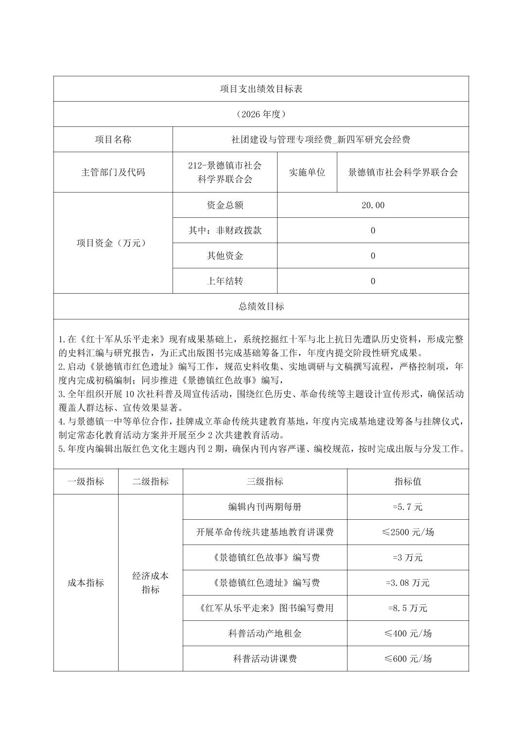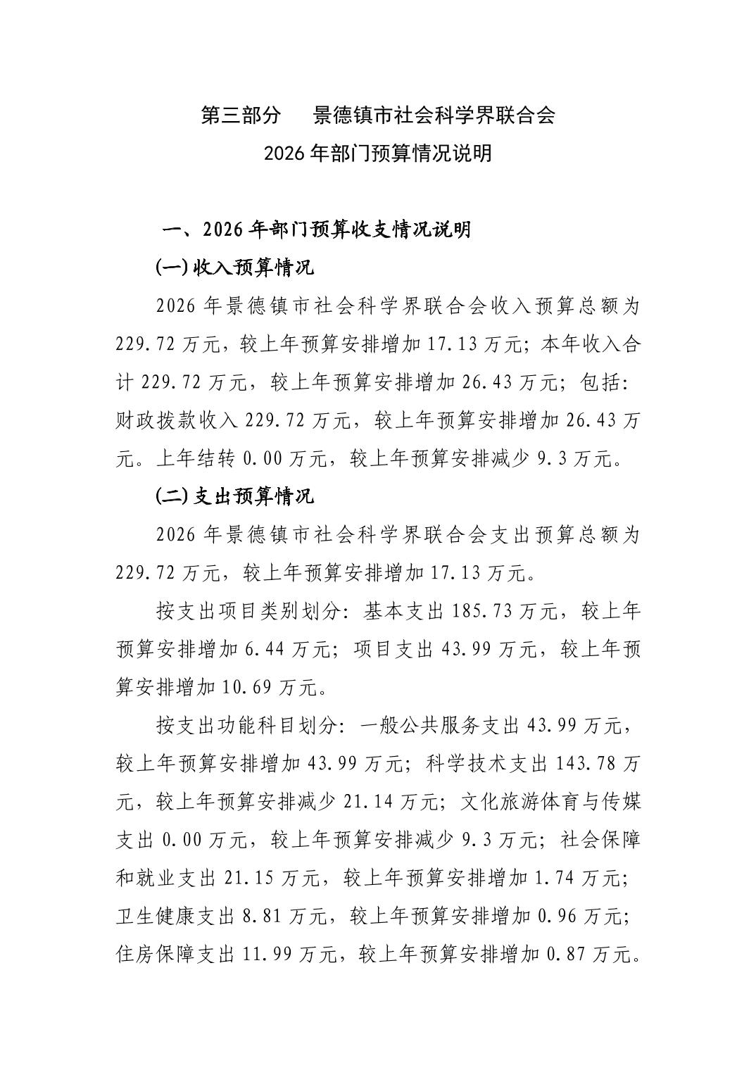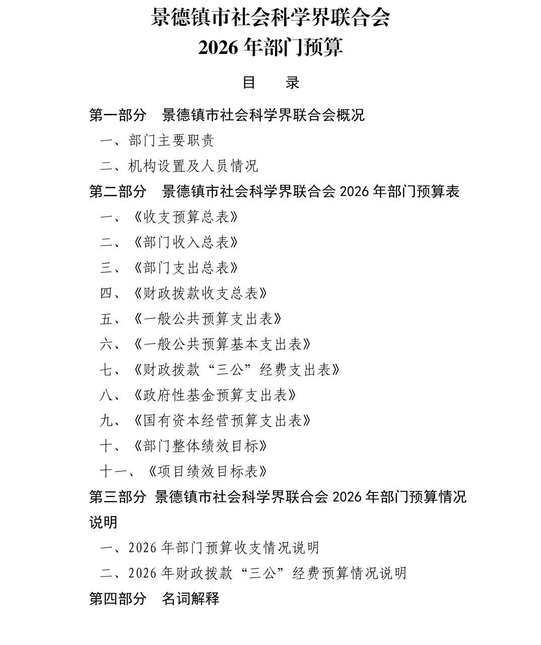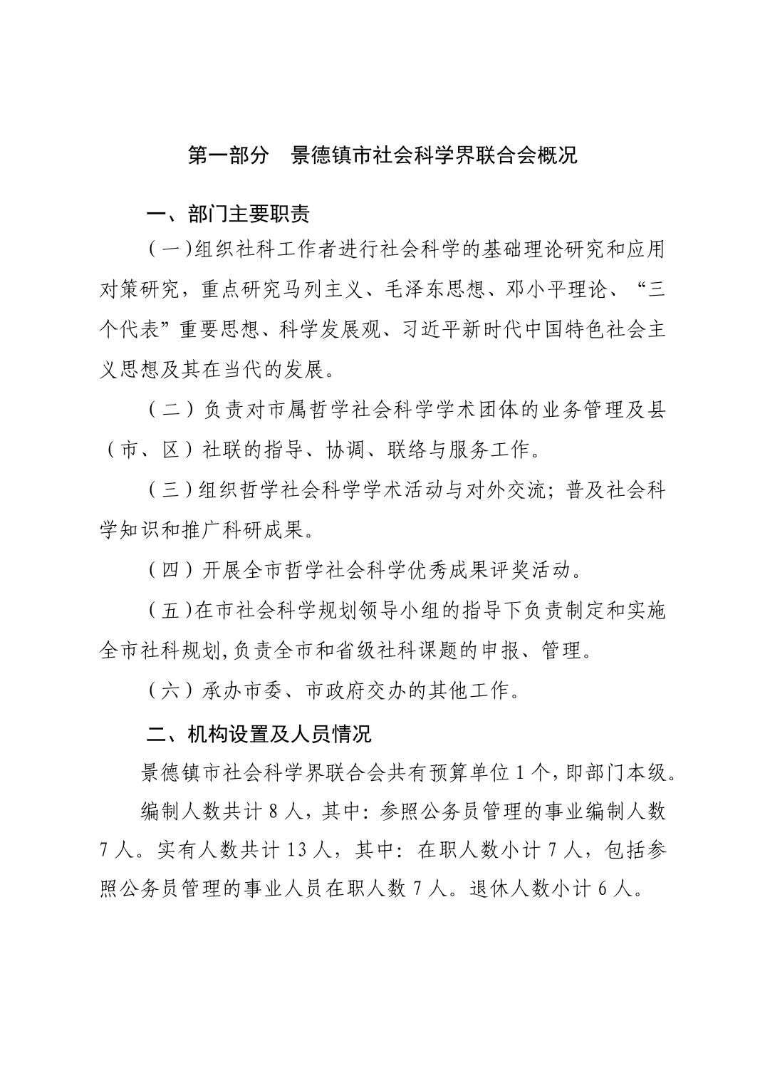 景德镇市社会科学界联合会2026年部门预算