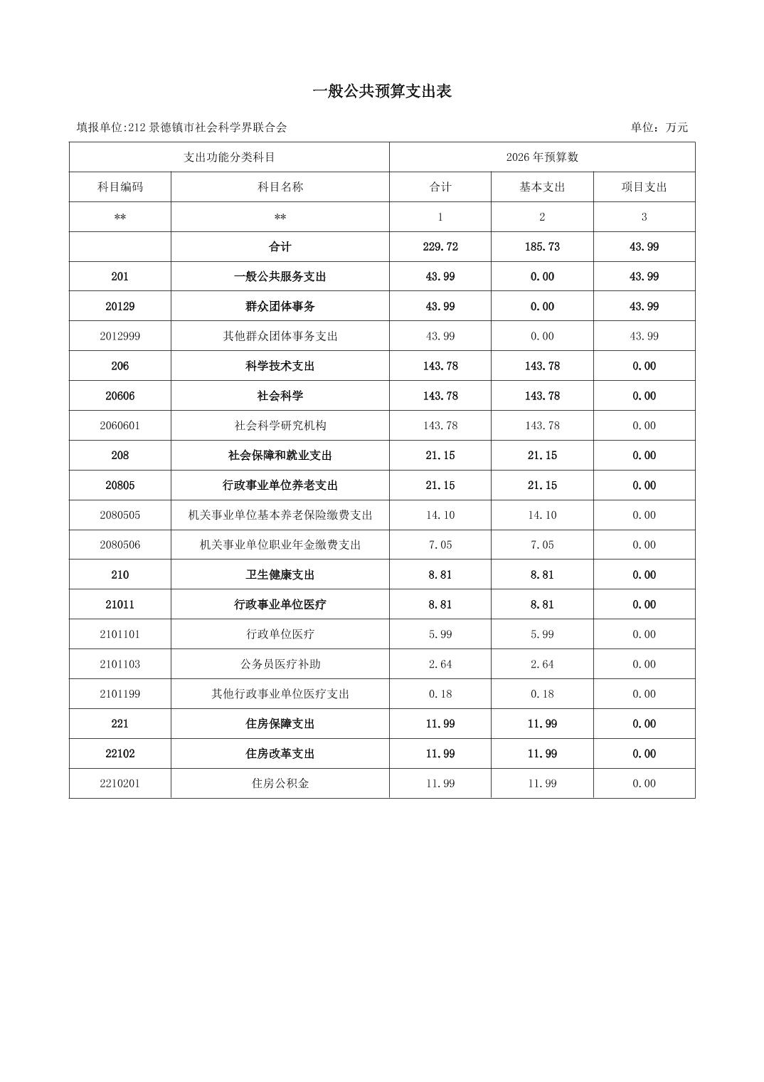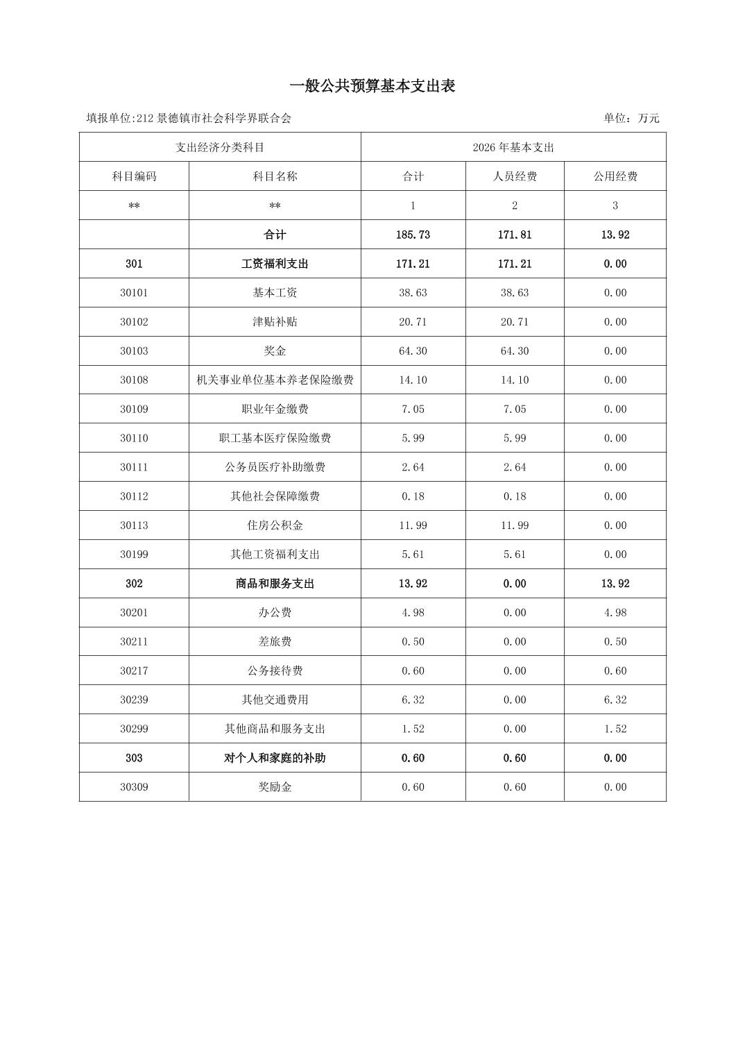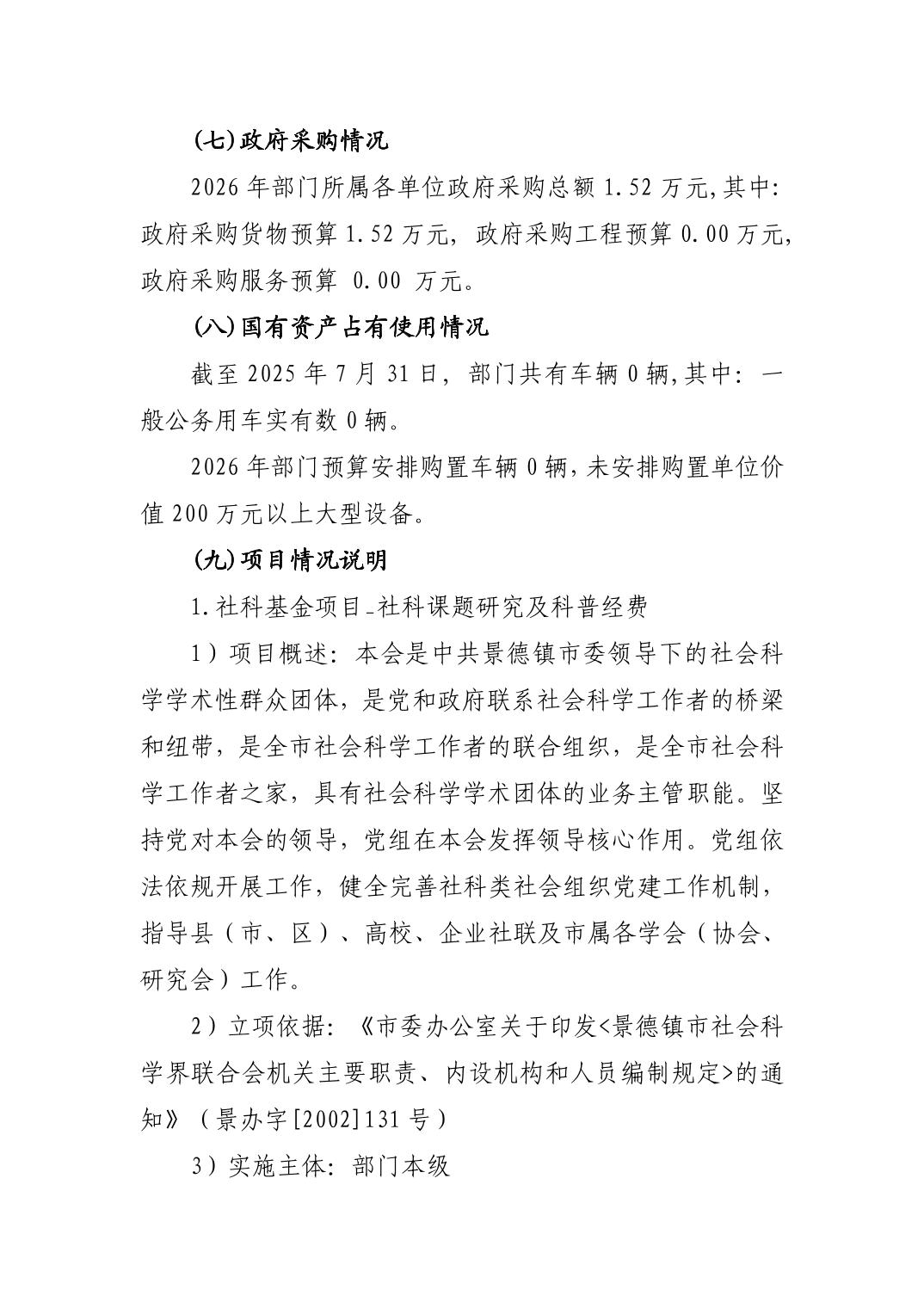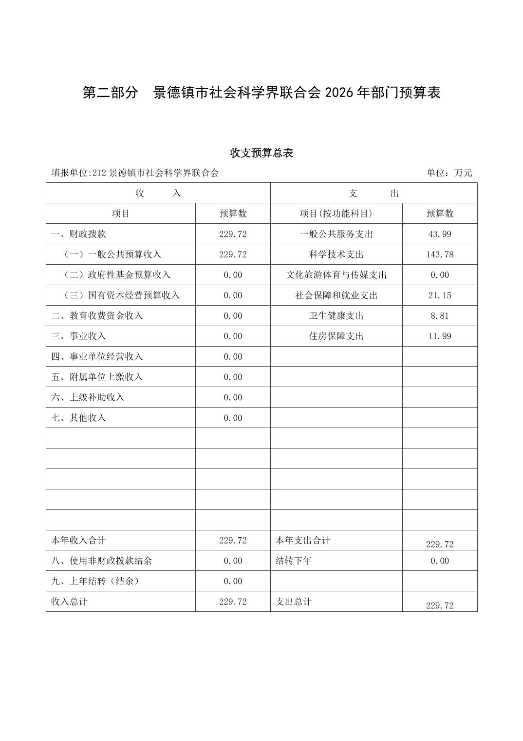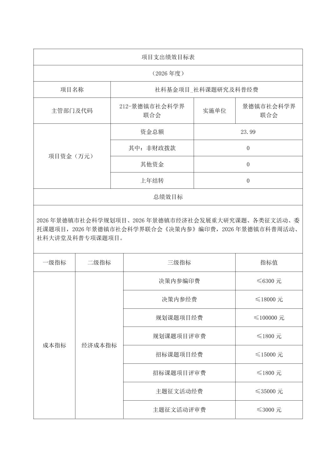 景德镇市社会科学界联合会2026年部门预算