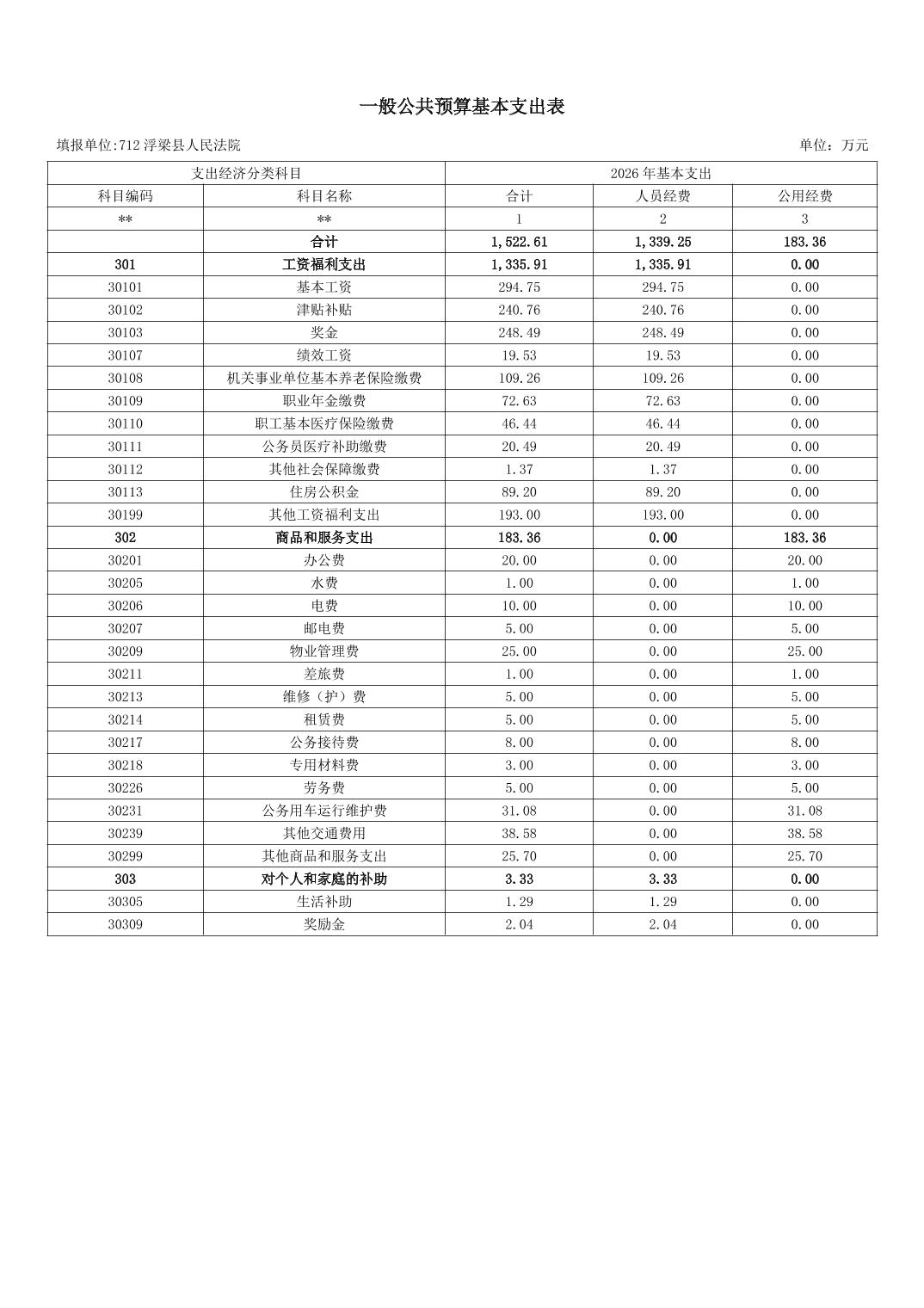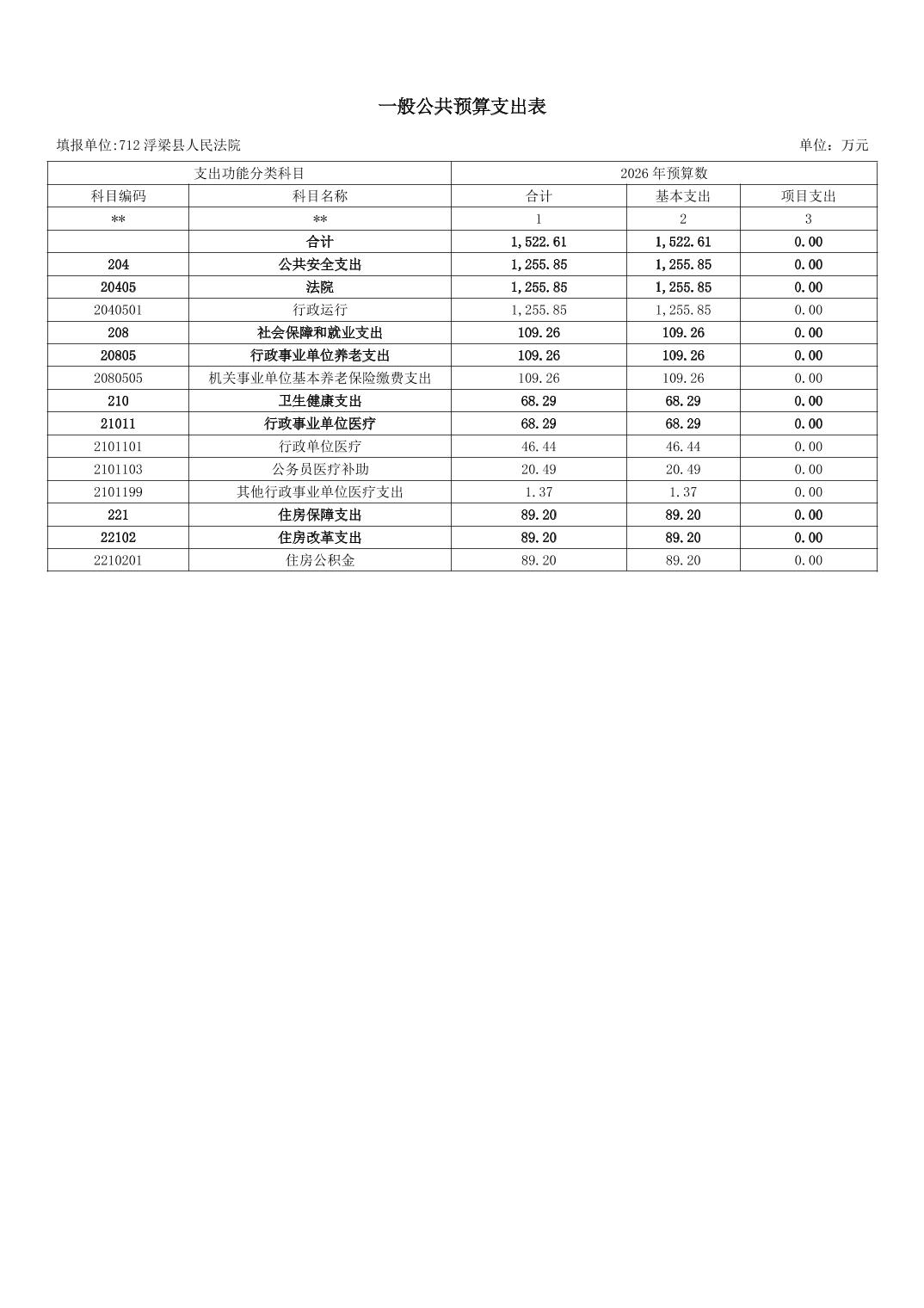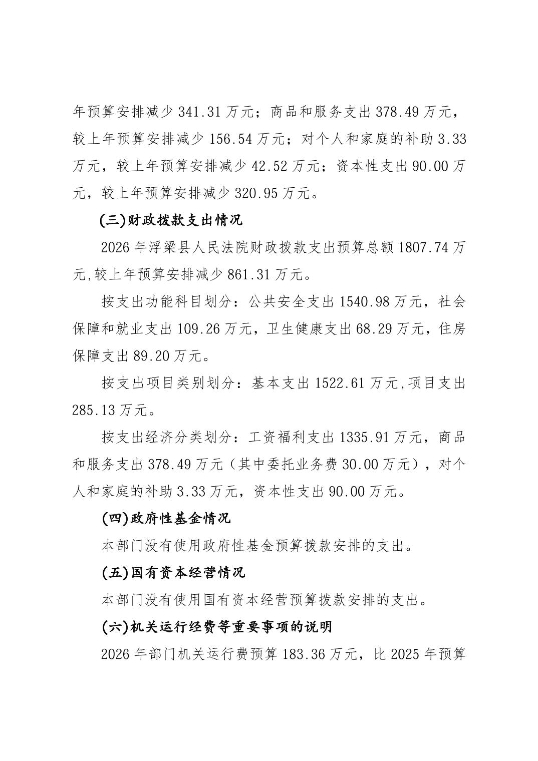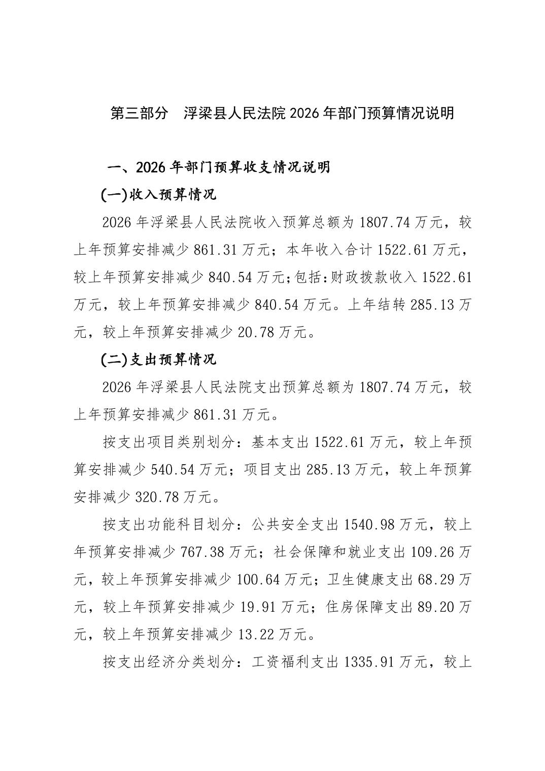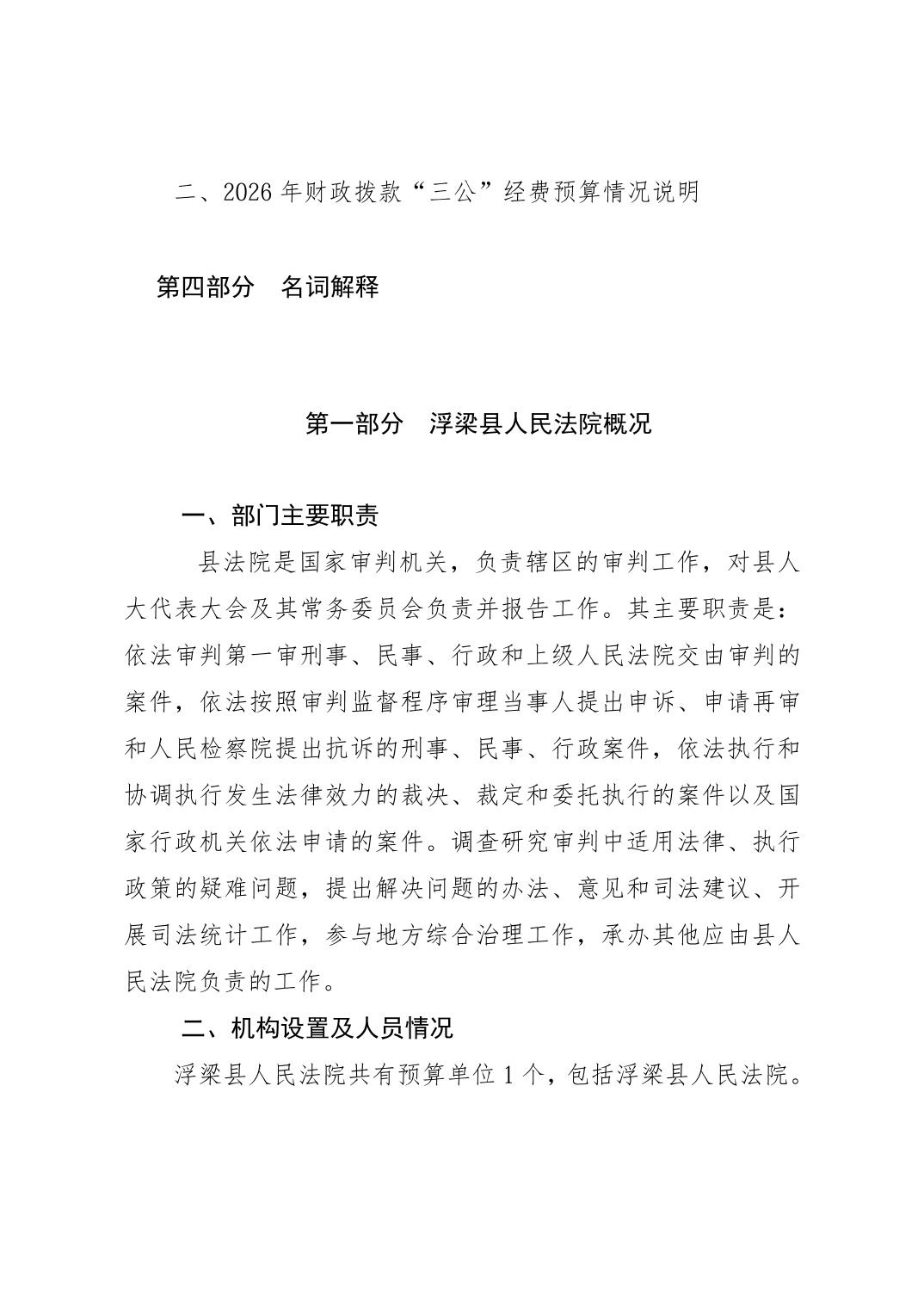 浮梁县人民法院2026年部门预算