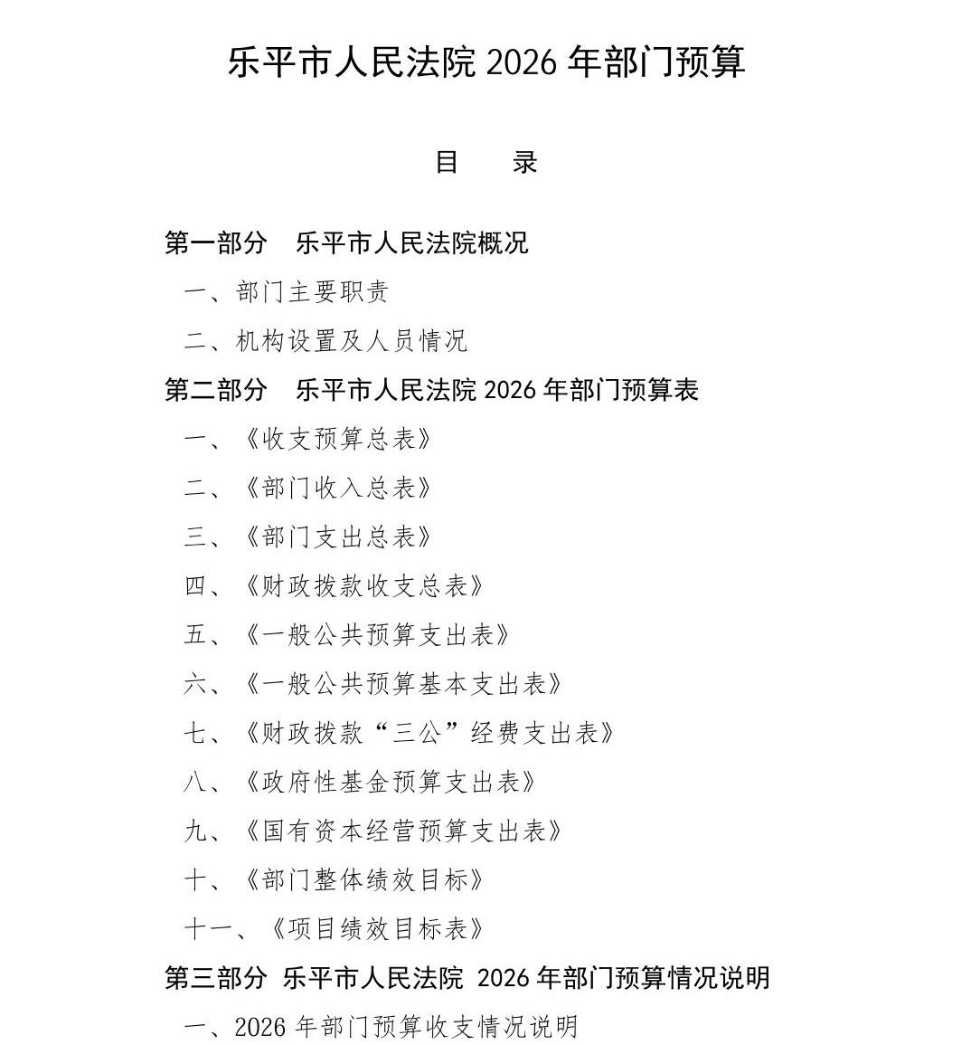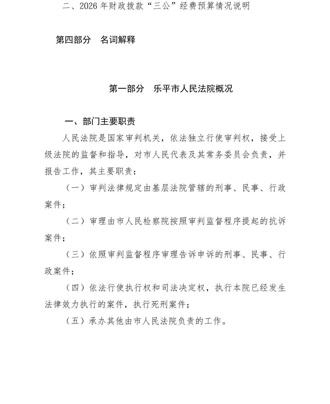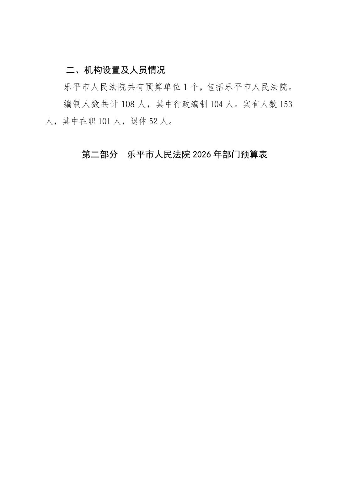 乐平市人民法院2026年部门预算