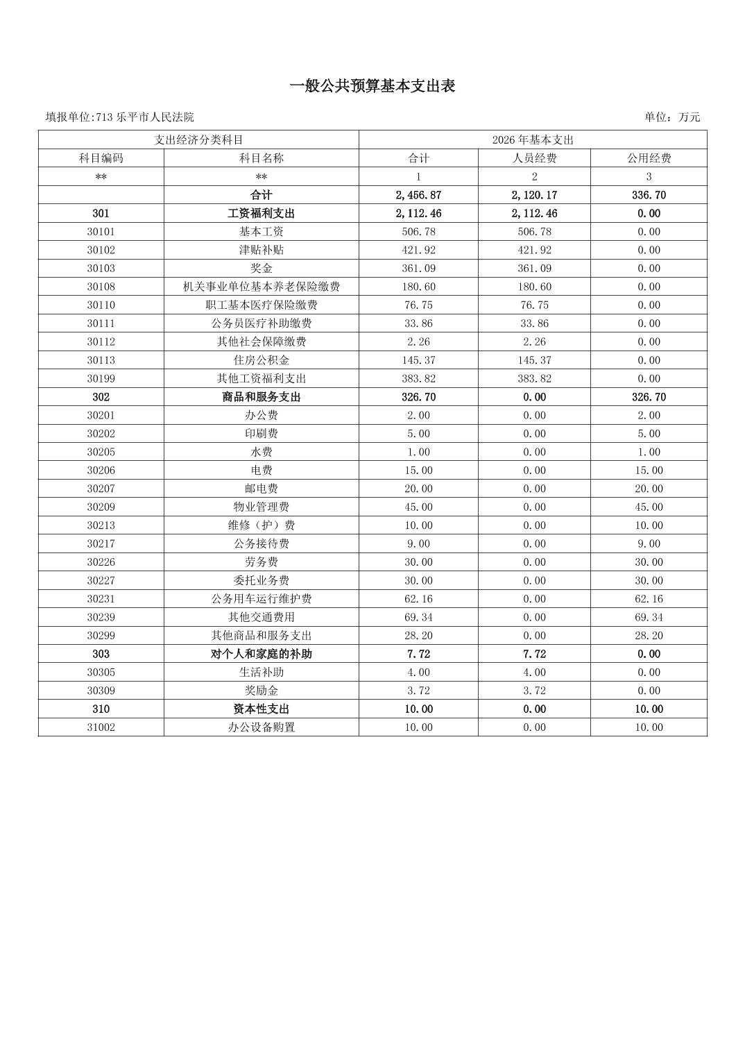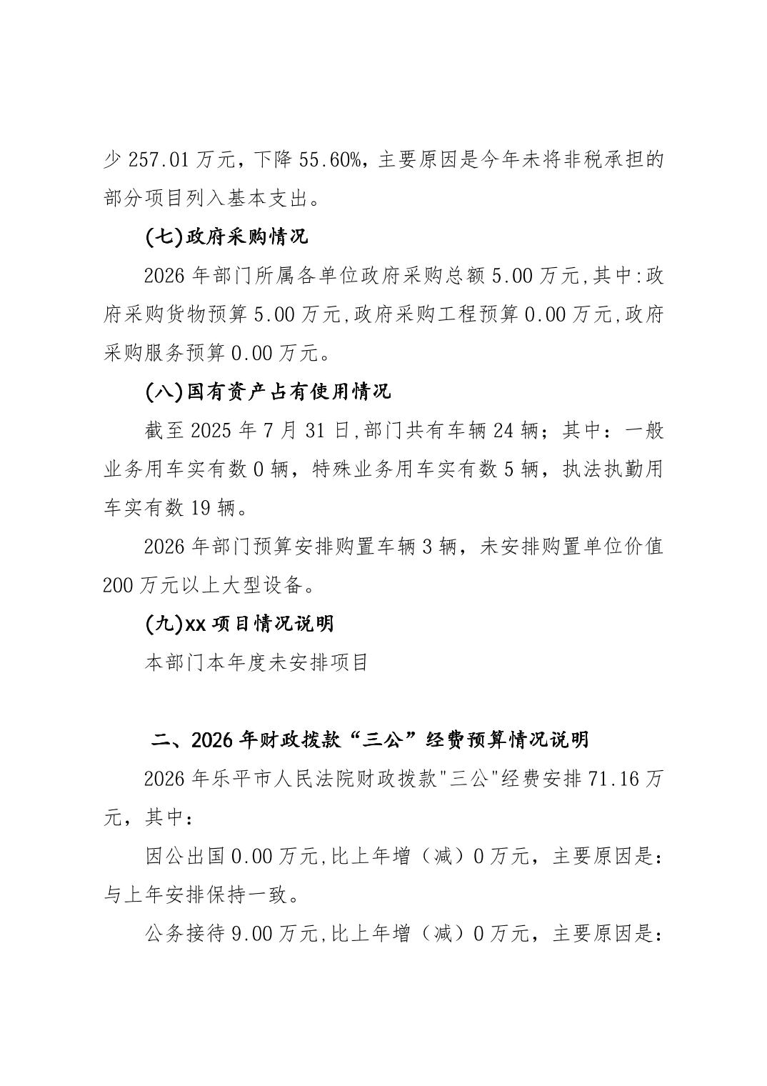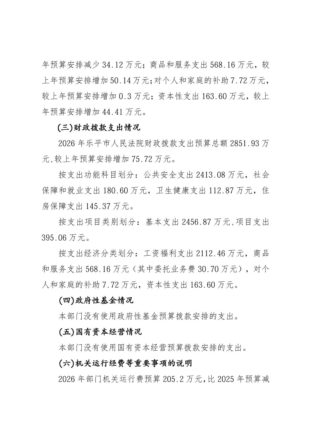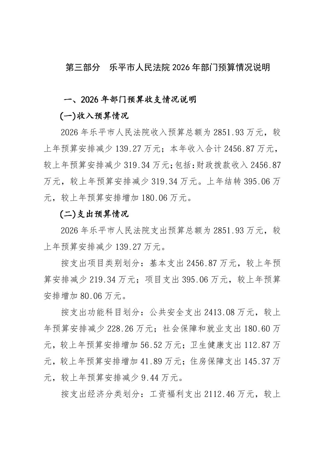 乐平市人民法院2026年部门预算