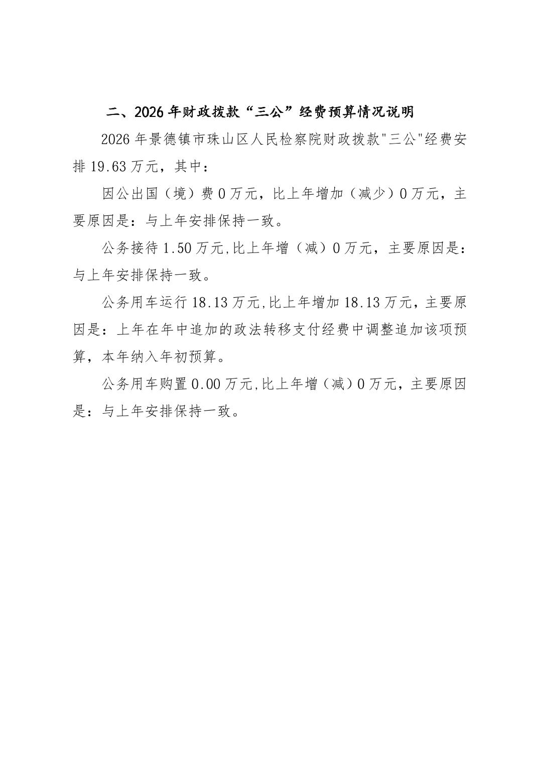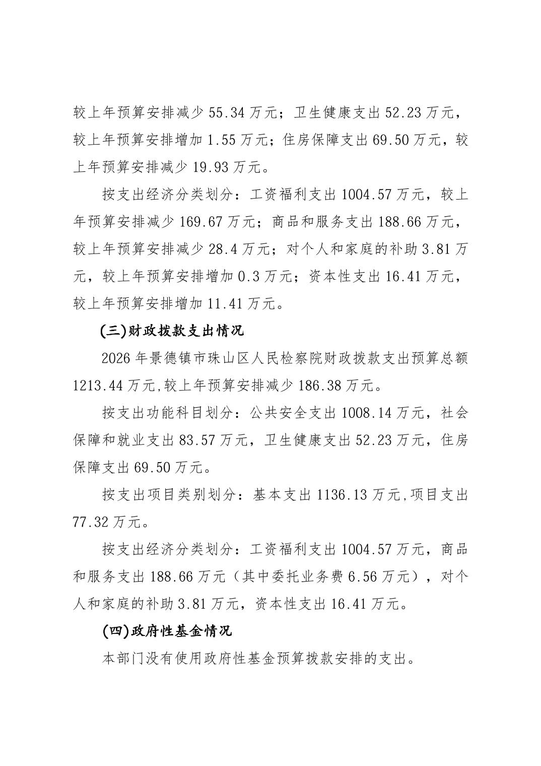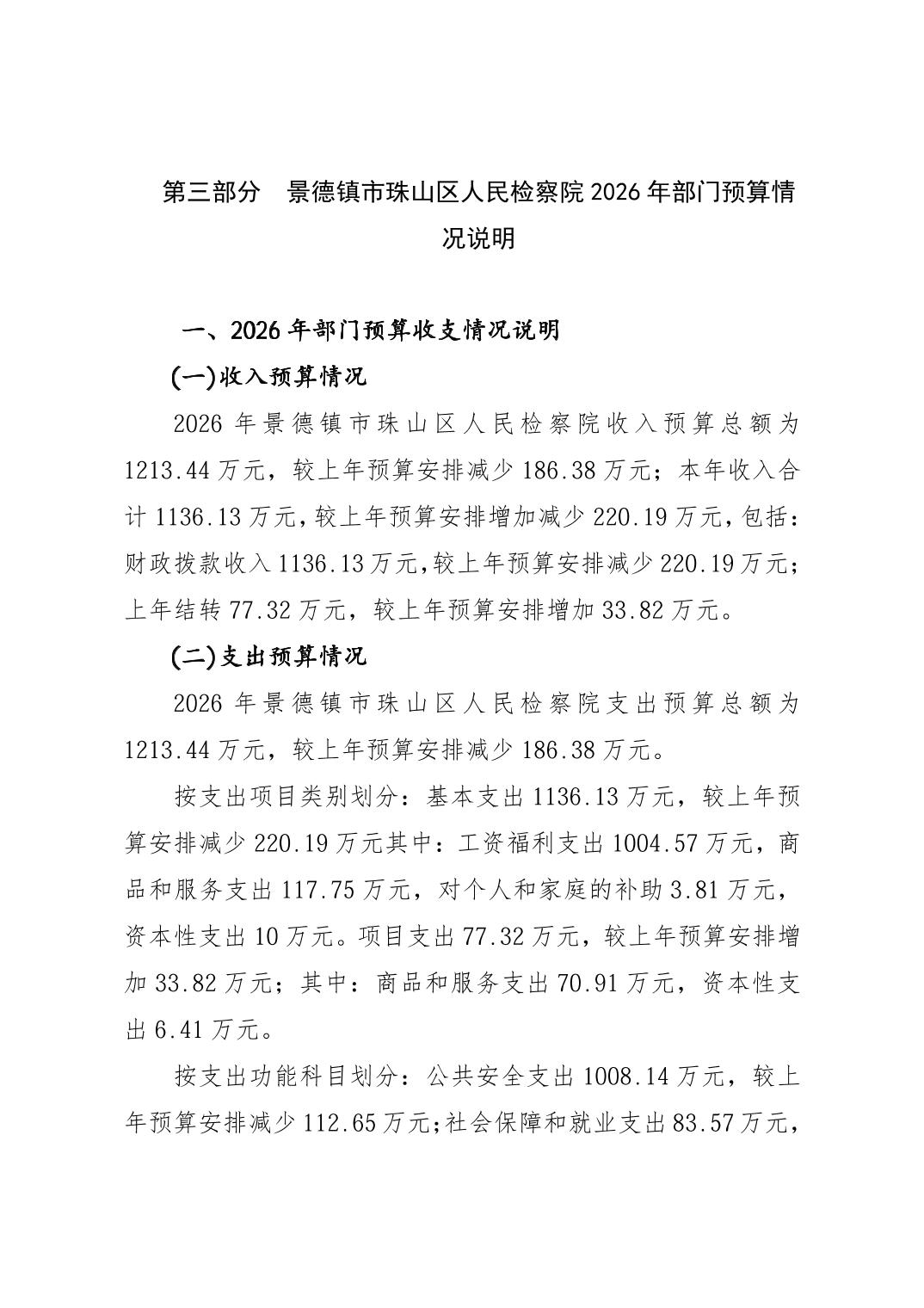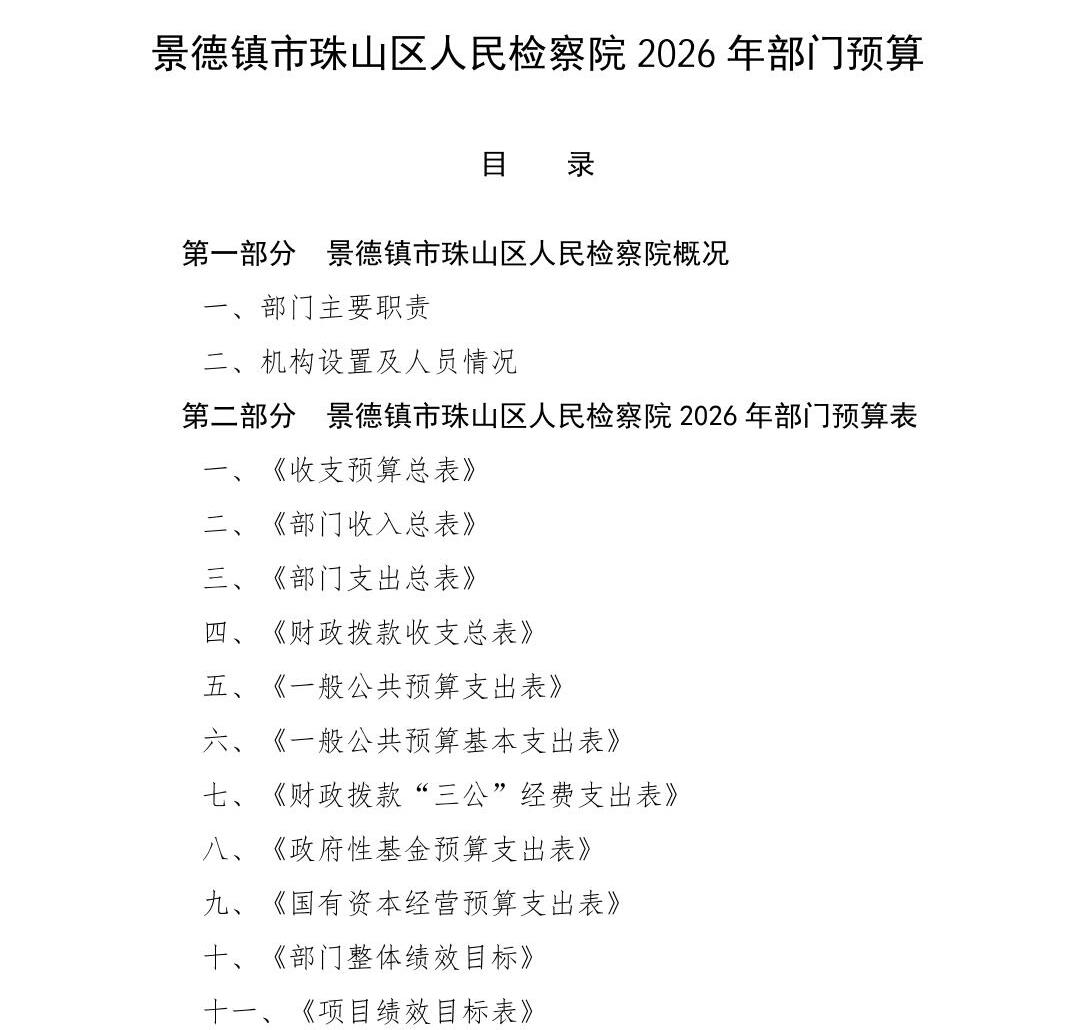 景德镇市珠山区人民检察院2026年部门预算
