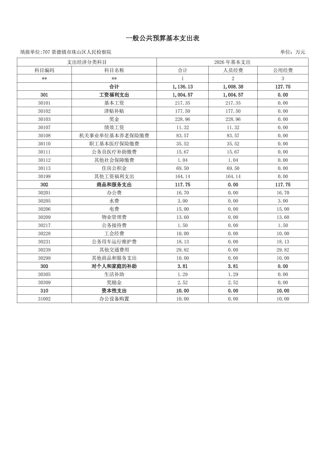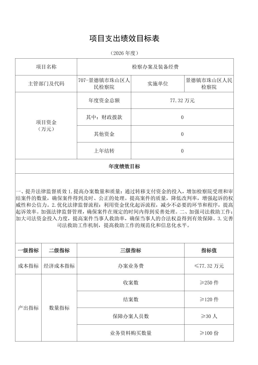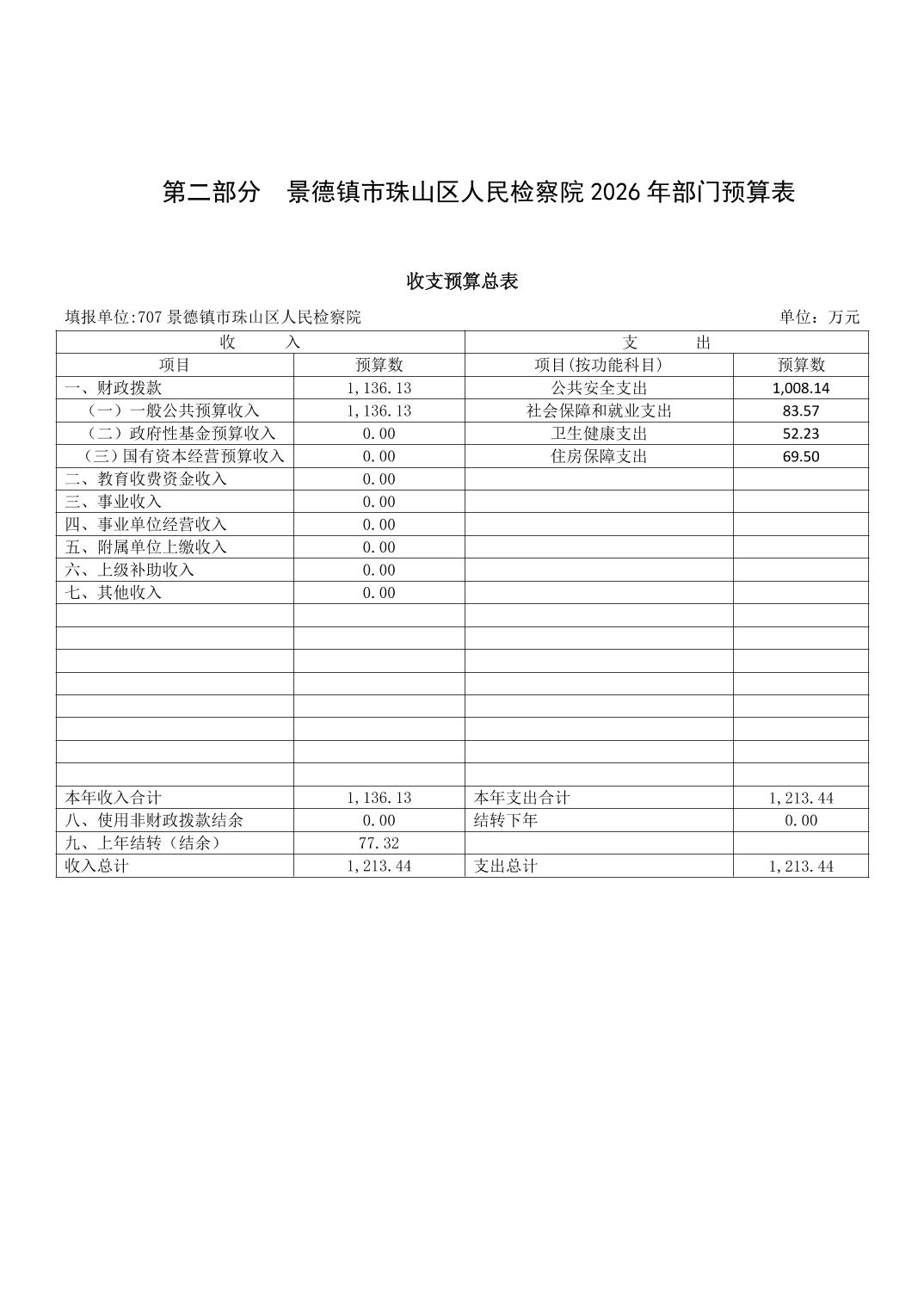 景德镇市珠山区人民检察院2026年部门预算
