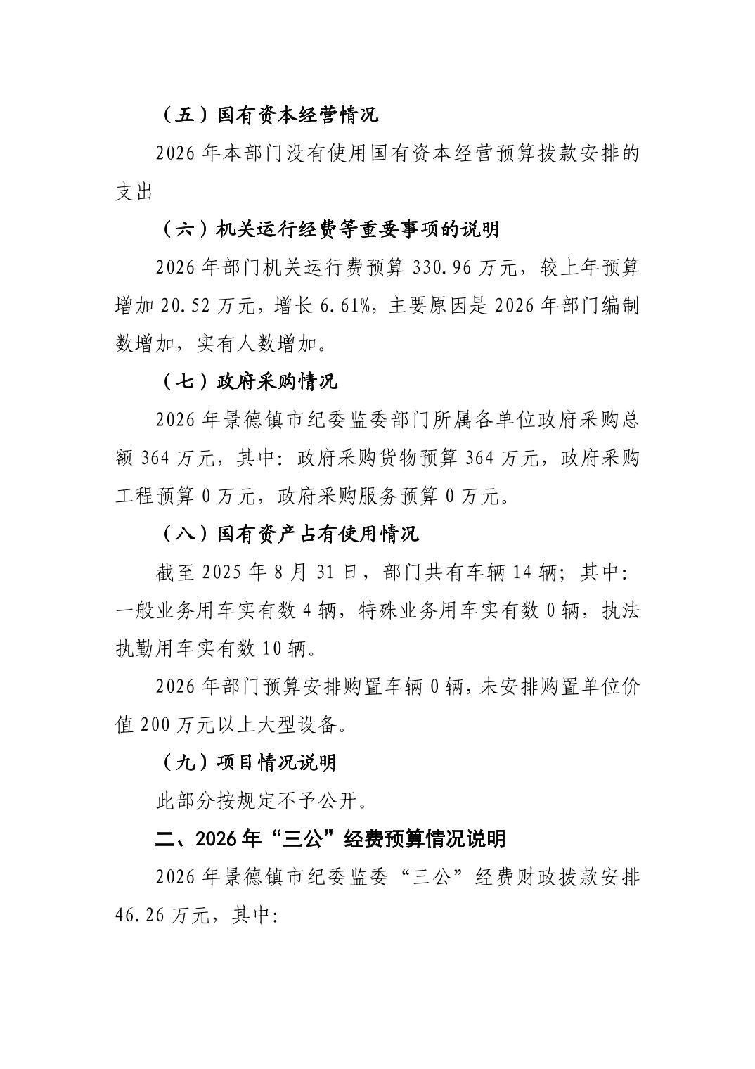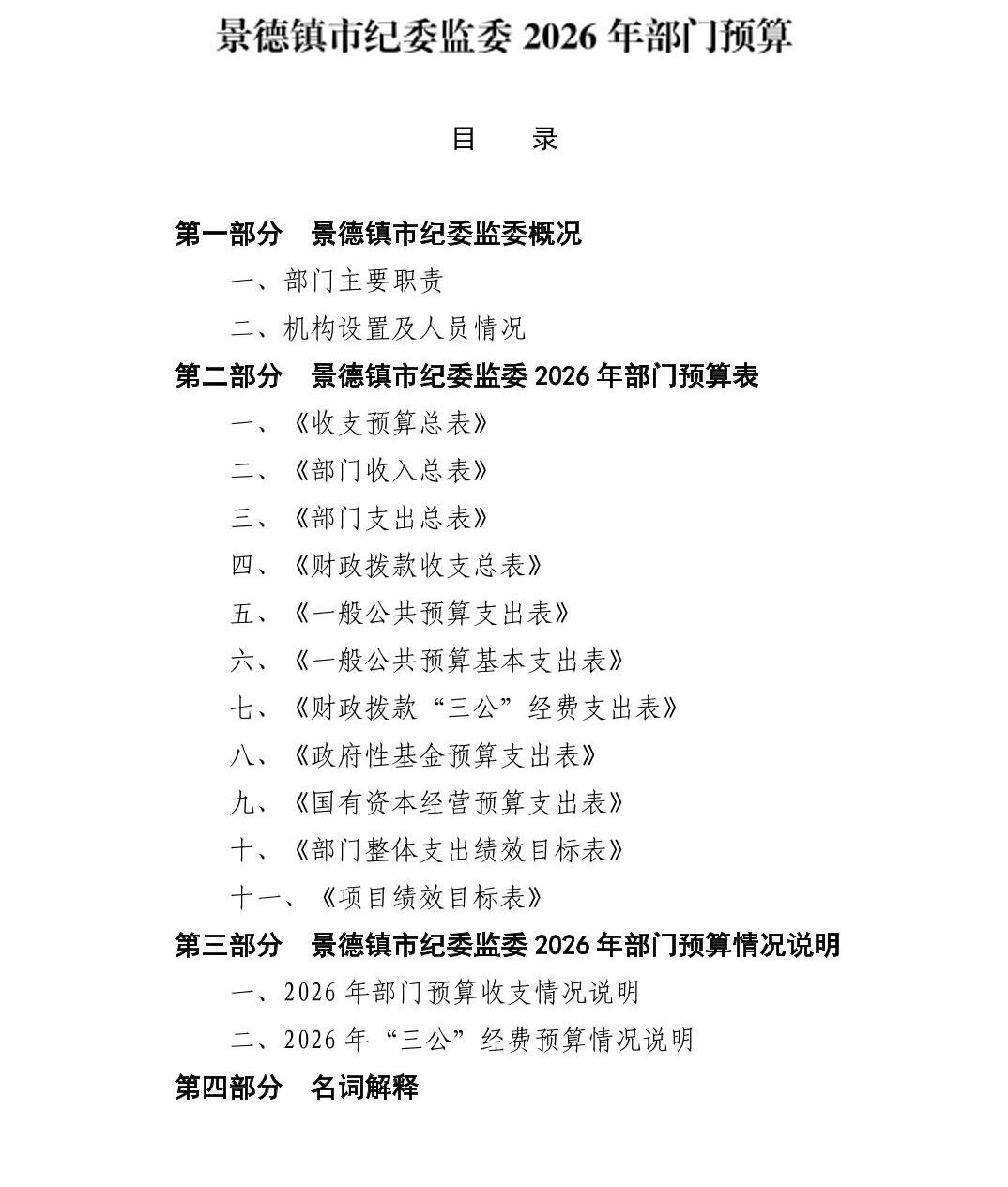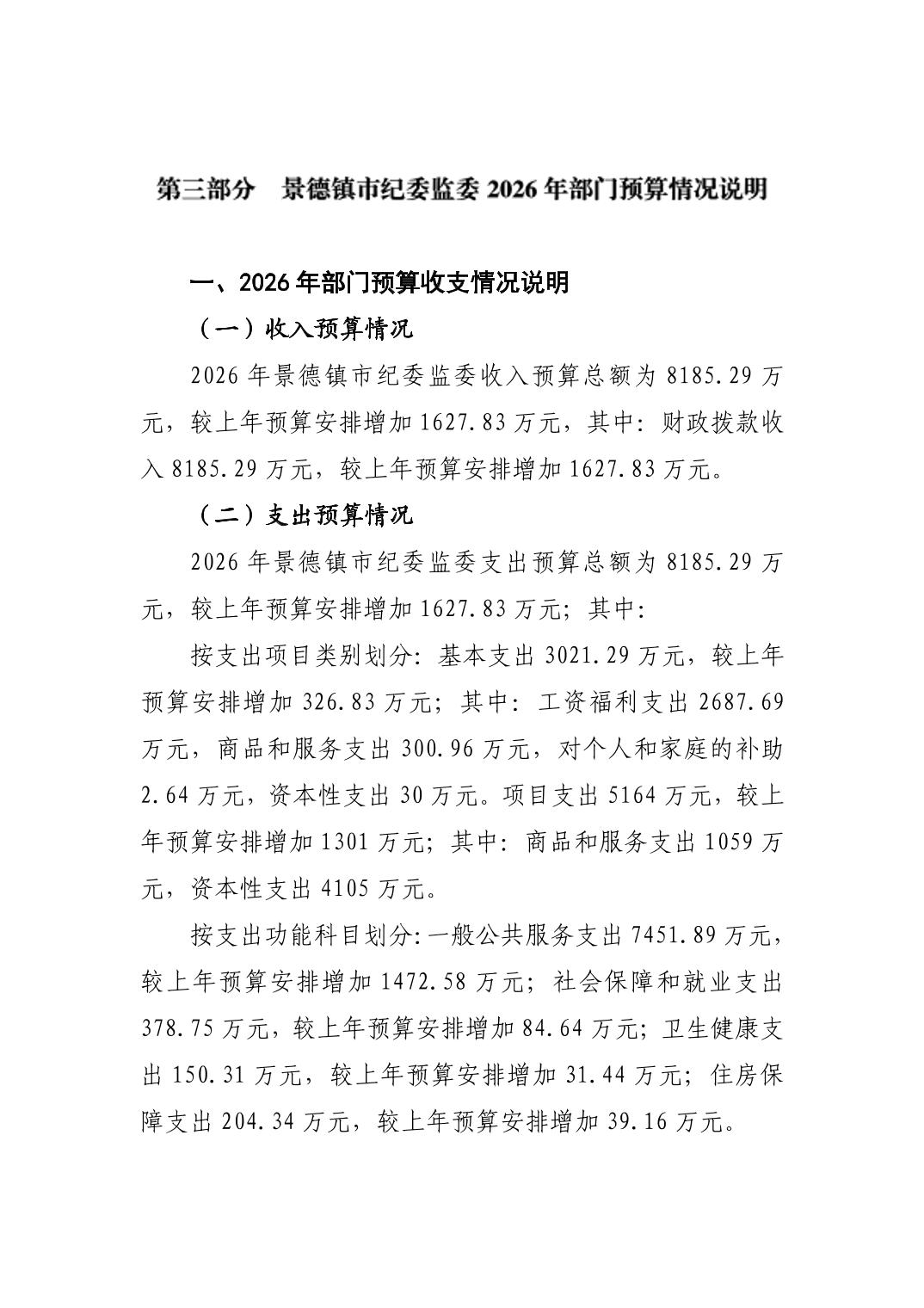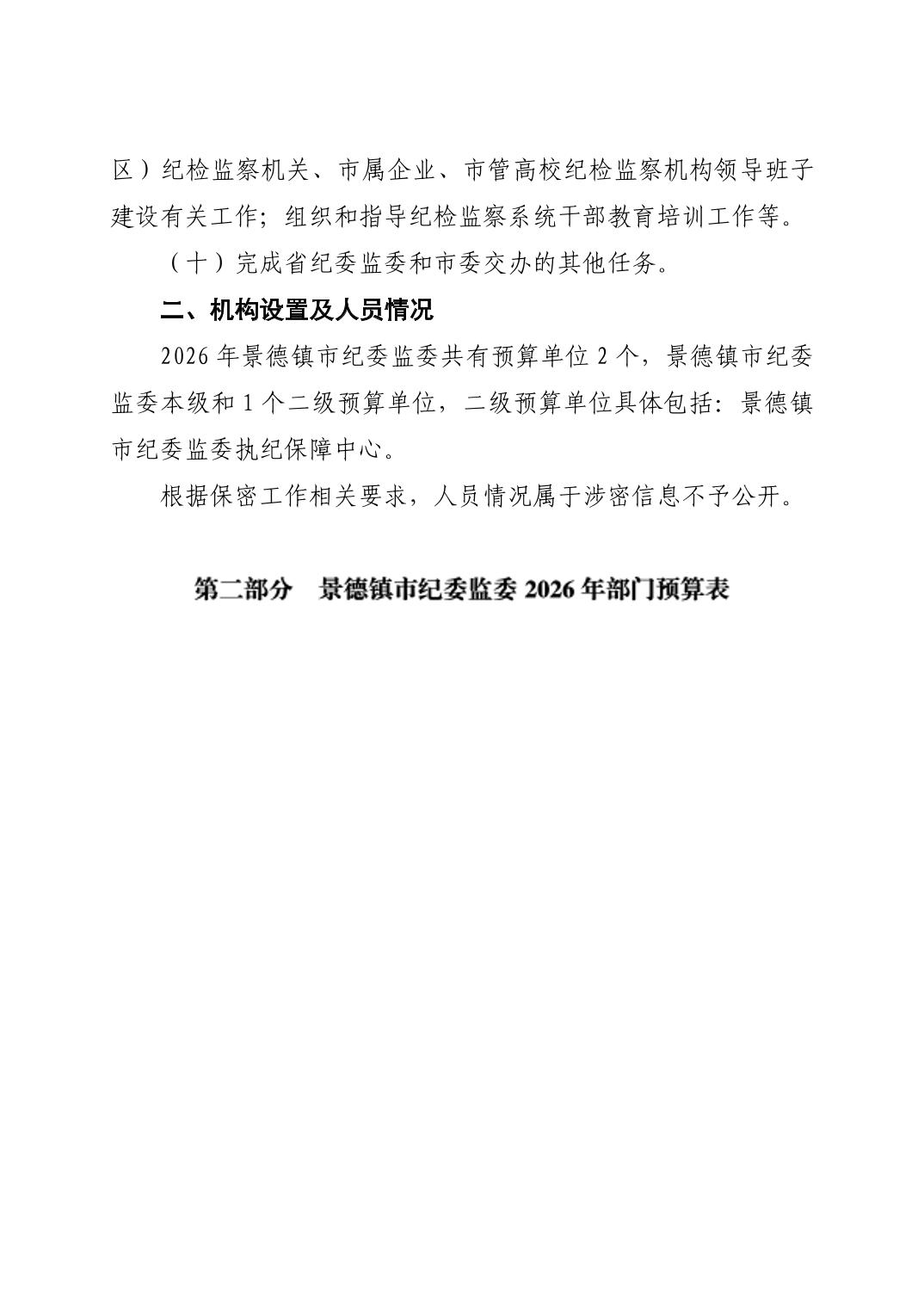 景德镇市纪委监委2026年部门预算