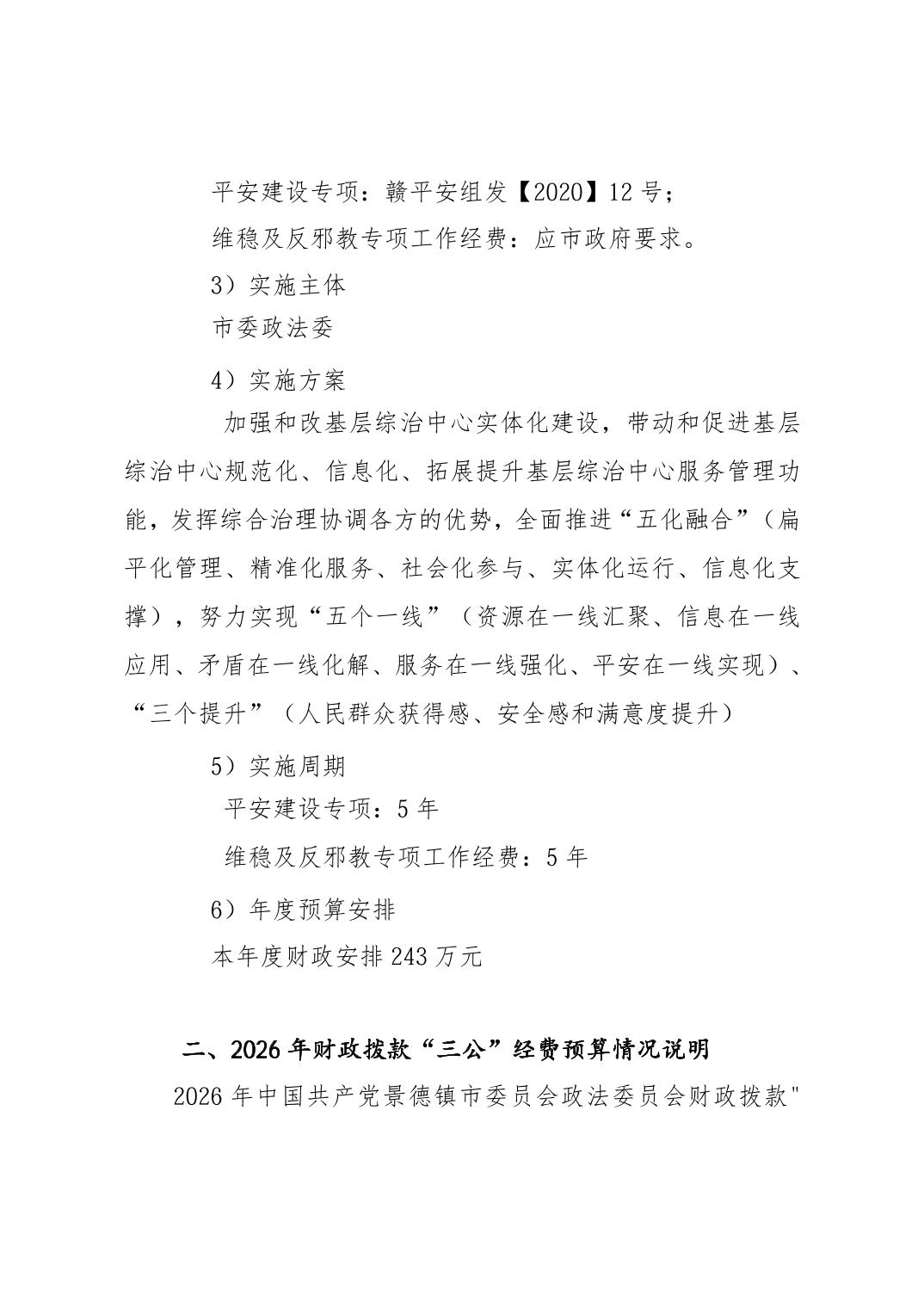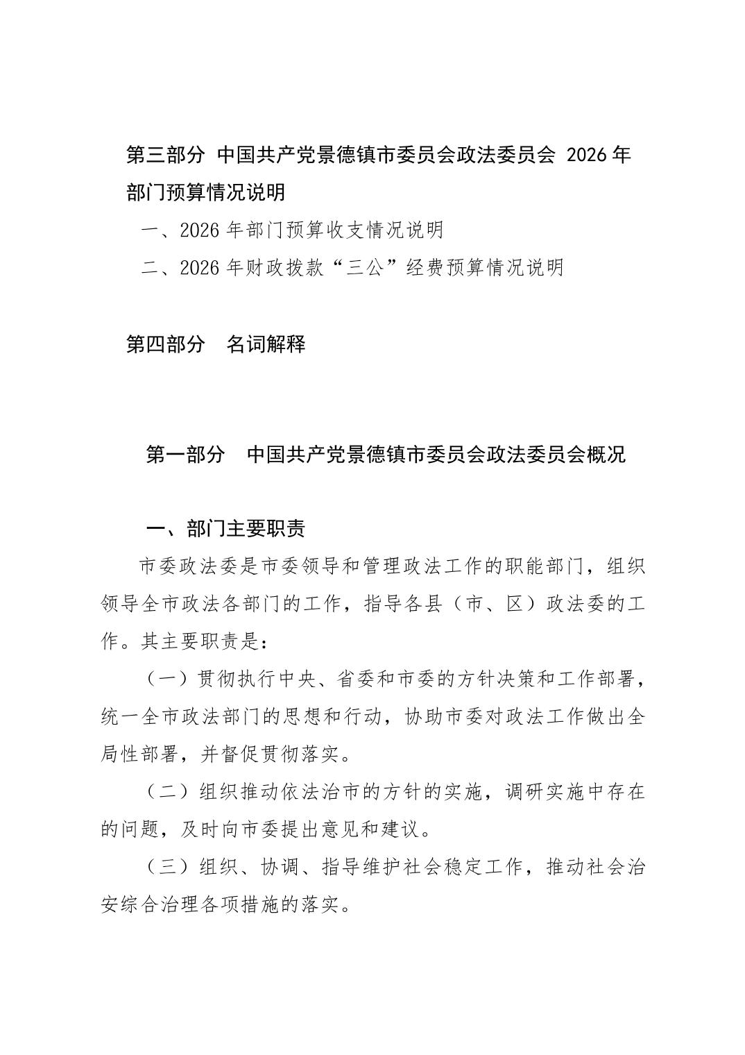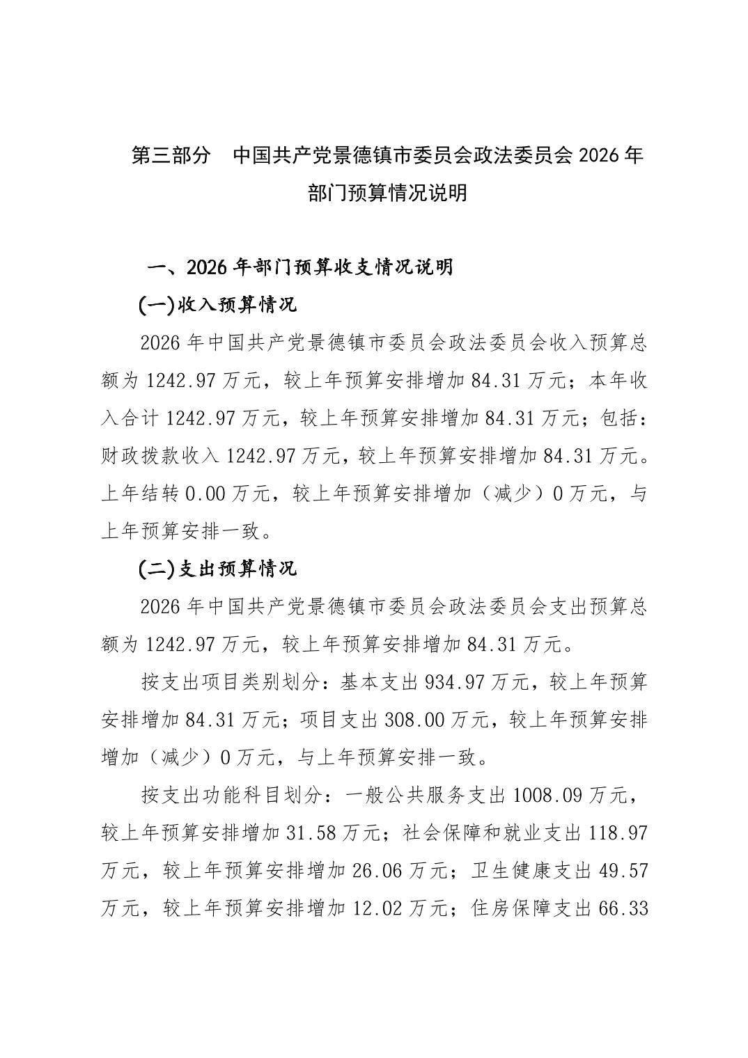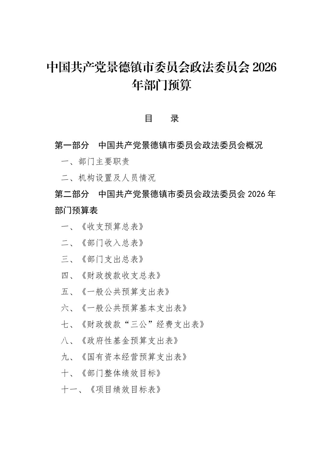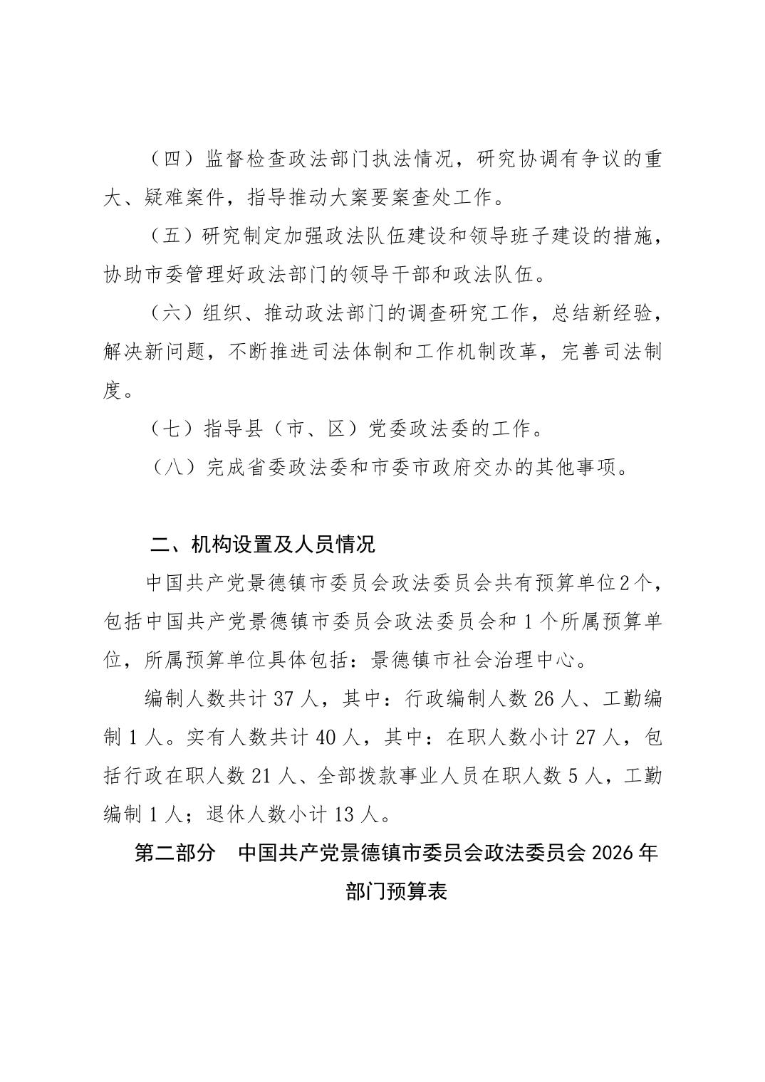 中国共产党景德镇市委员会政法委员会2026年部门预算
