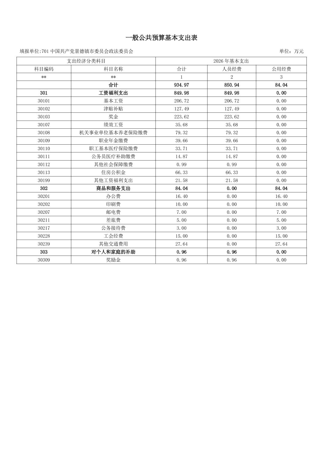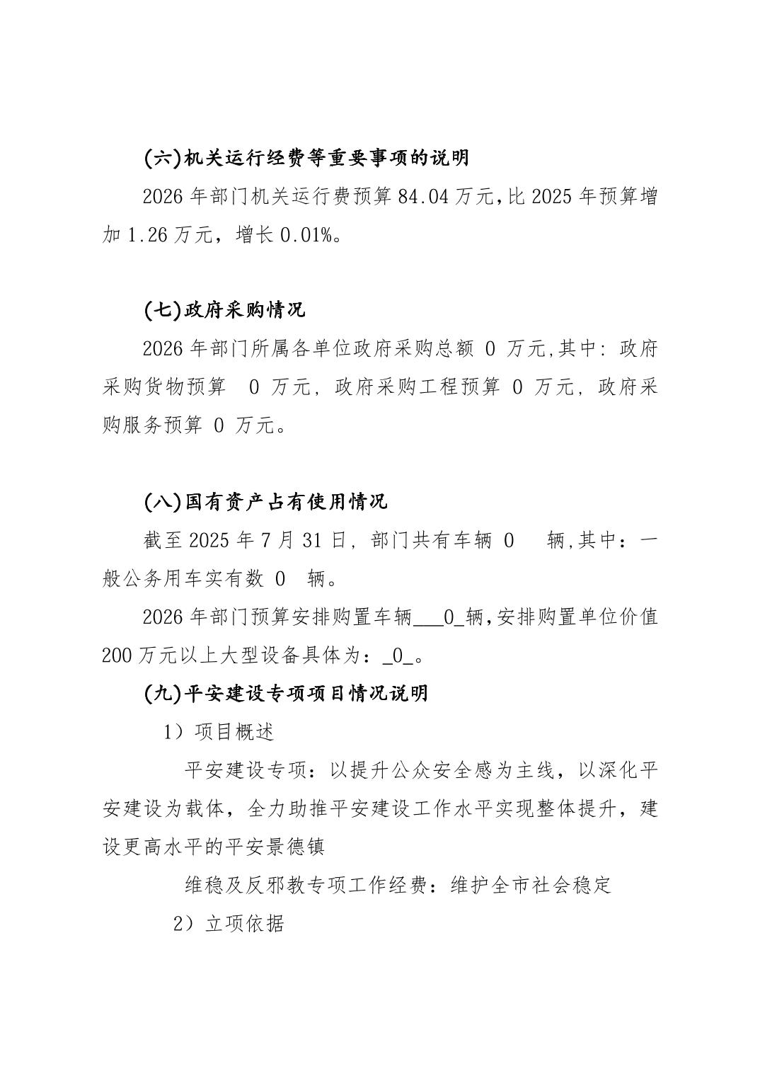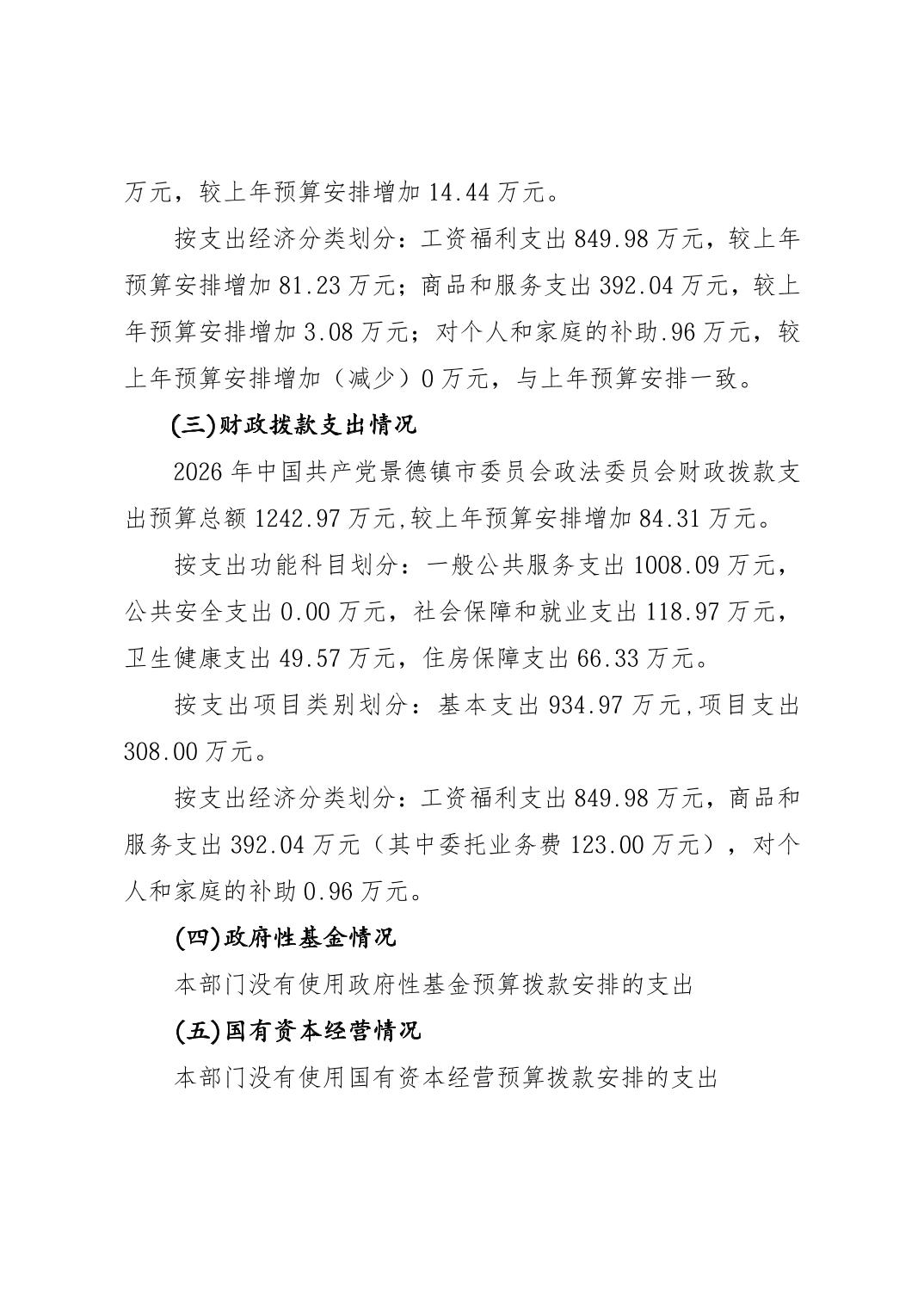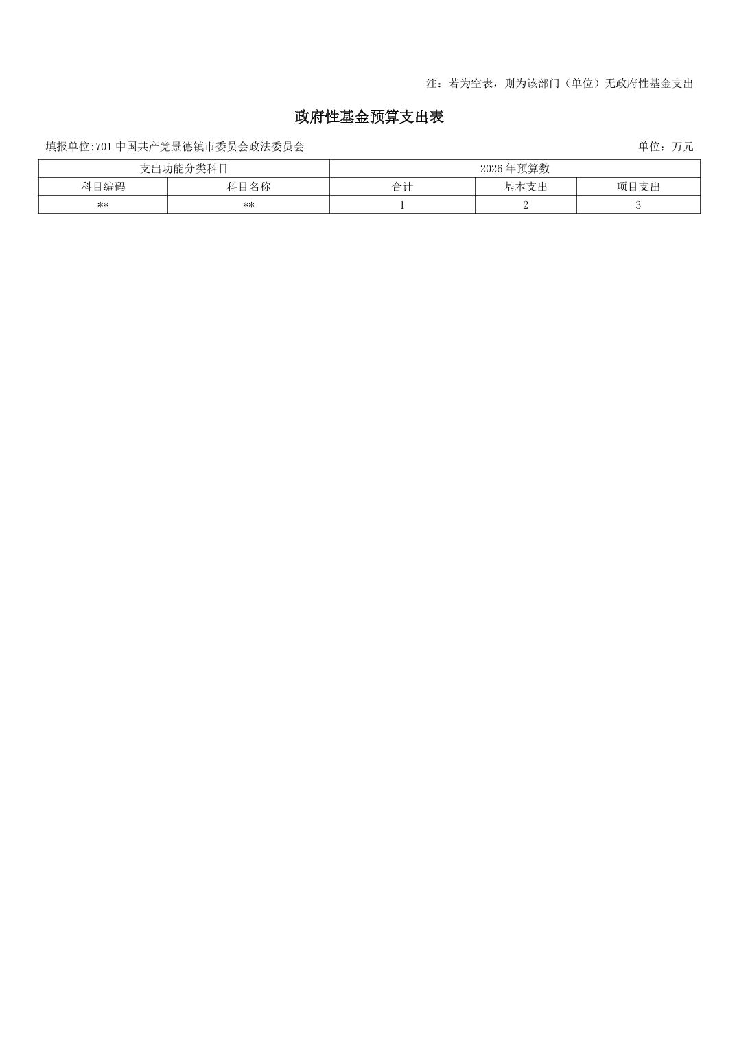 中国共产党景德镇市委员会政法委员会2026年部门预算